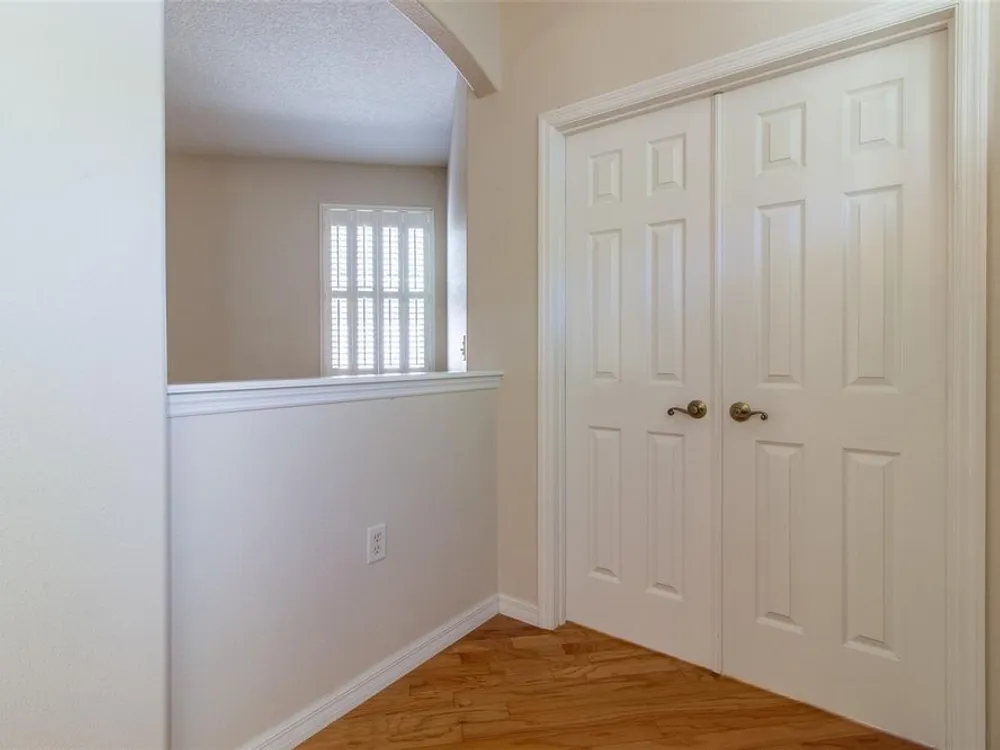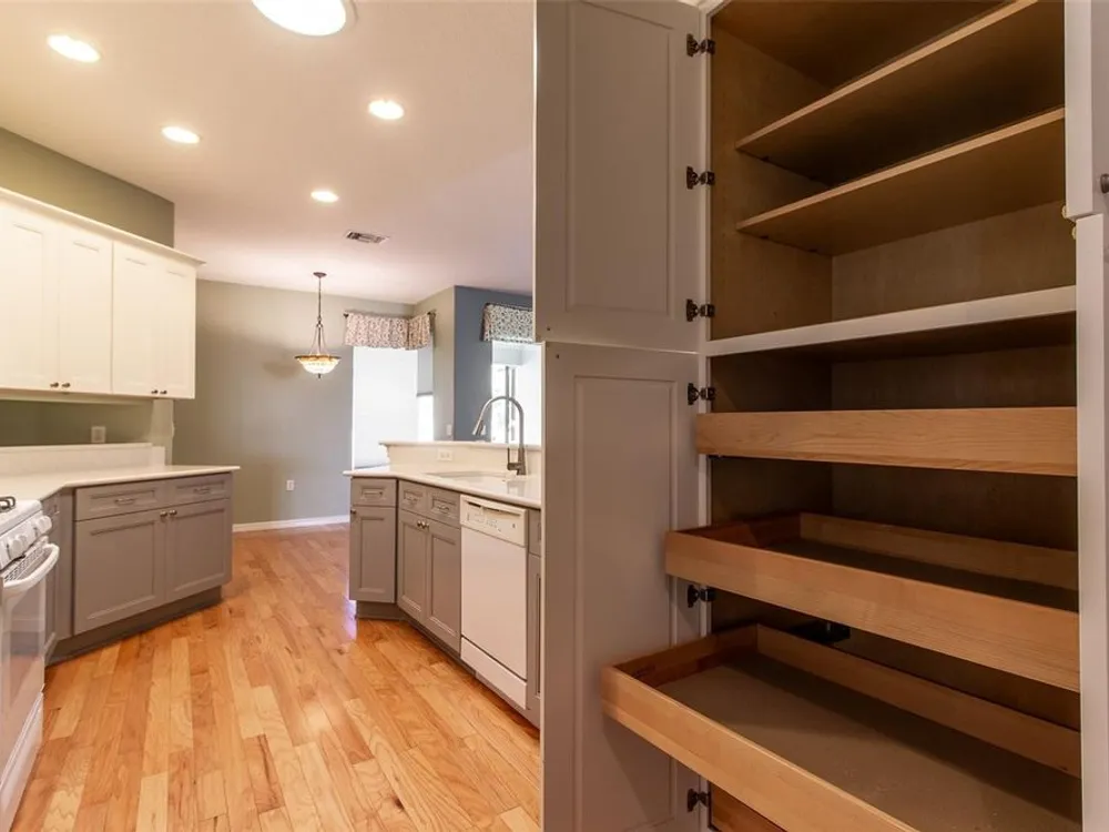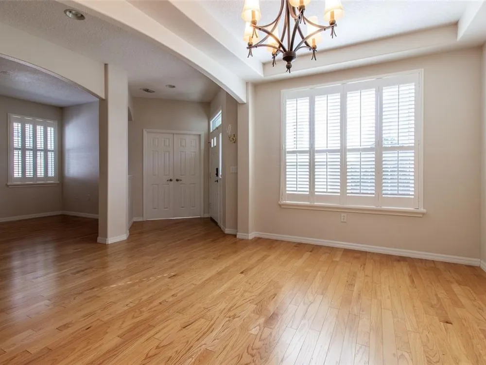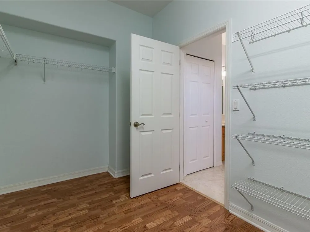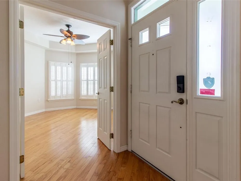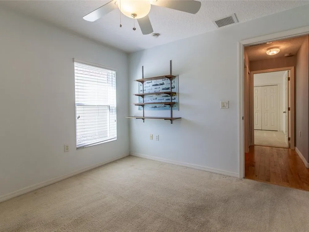 - Ceiling Fan(s), High Ceilings, L-Shaped Dining Room, Open Floorplan, Main Level Primary, Solid-Wood Cabinets, Split Bedrooms, Stone Counters, Walk-In Closet(s), Window Treatments