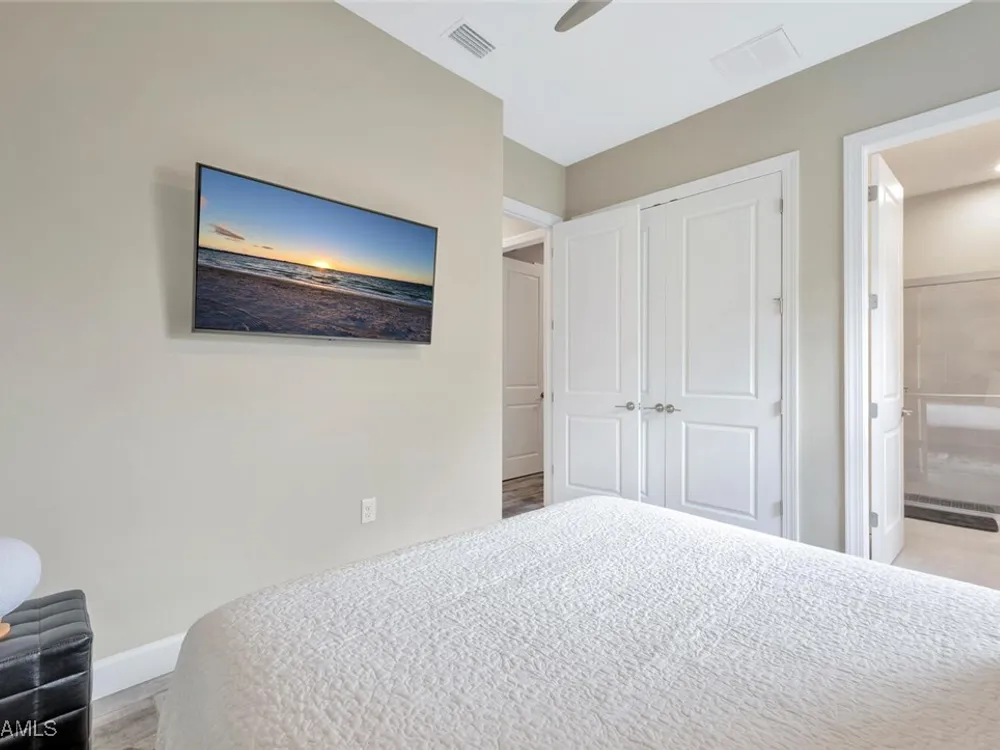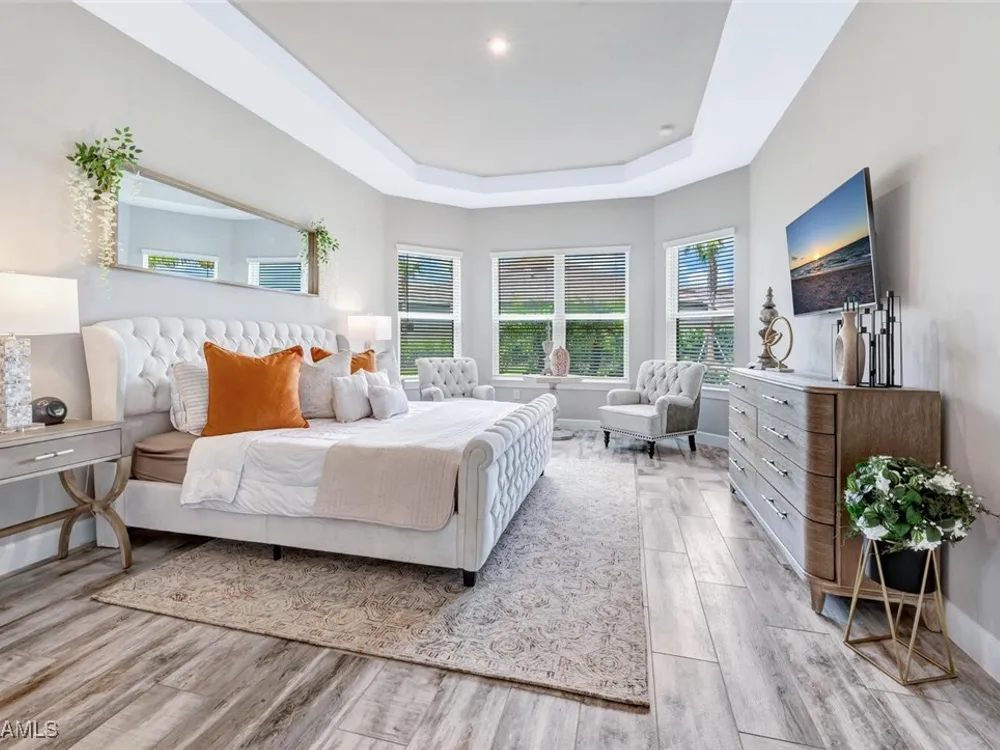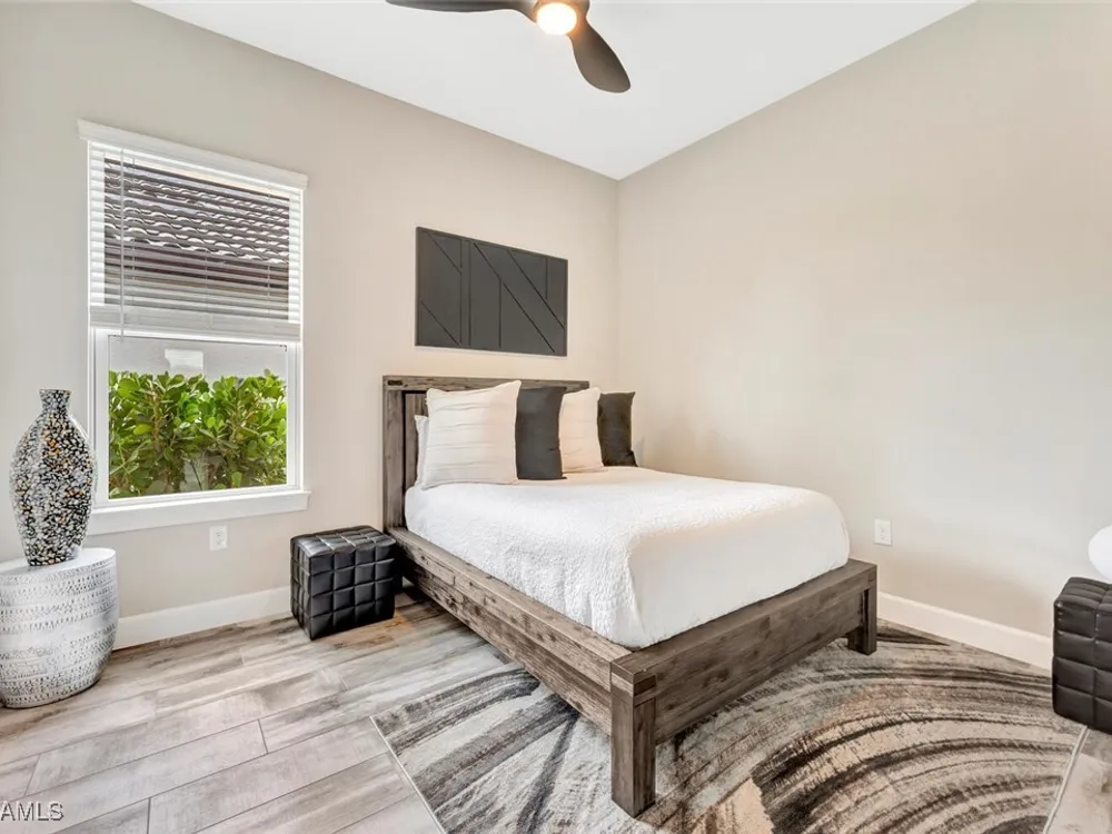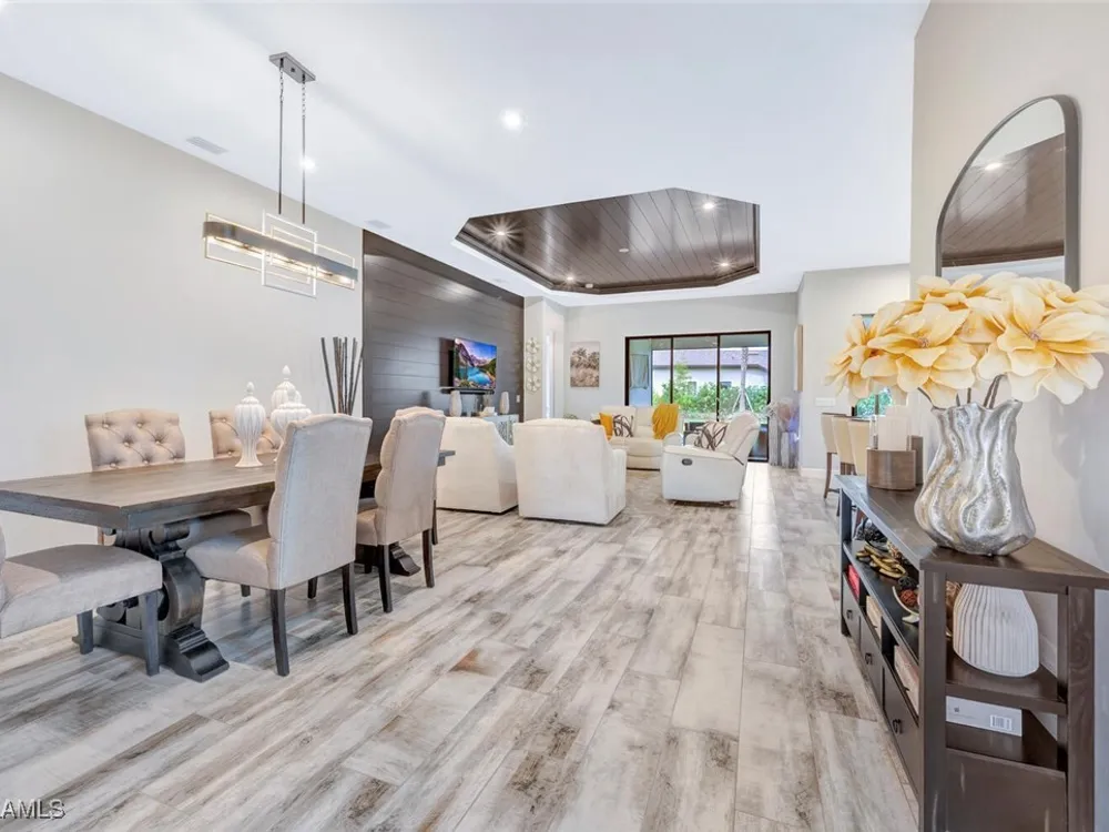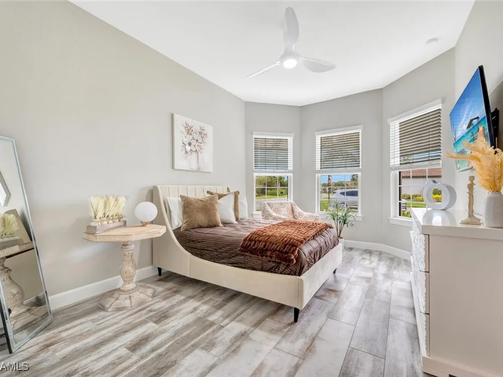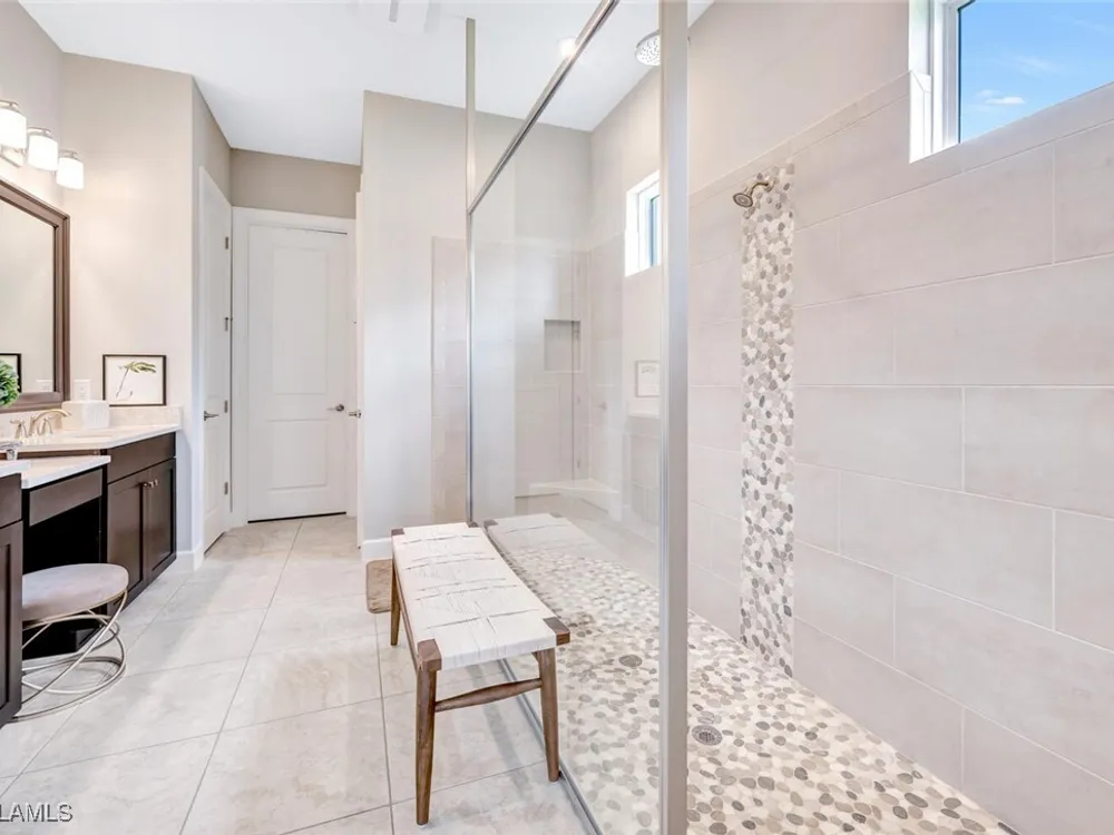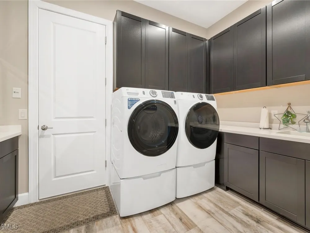 Experience unparalleled luxury in this immaculate, newly constructed residence, completed in 2022. Nestled in the prestigious Esplanade by the Islands community, this Lazio model home is replete with opulent upgrades designed to elevate your lifestyle. This exquisite property features three bedrooms, three bathrooms, and a versatile den, embodying the epitome of Florida's ultra-luxurious living. At the heart of this splendid home are a chef’s dream kitchen equipped with top-of-the-line stainless steel appliances, including a six-burner gas cooktop and a built-in oven/microwave. The kitchen is adorned with upgraded cabinetry, sleek quartz countertops, sophisticated designer lighting, and a stylish backsplash. Additional cabinetry beneath the expansive island enhances functionality and style. The thoughtful floor plan boasts wood-look tile flooring throughout and is accentuated by designer lighting fixtures. The great room, enhanced with newly installed shiplap, leads to an expansive lanai surrounded by lush landscaping, pre-wired for a future pool and outdoor kitchen—ideal for seamless indoor-outdoor living. Oversized, light-filled bedrooms offer a serene retreat for guests, complete with access to the numerous amenities that Esplanade has to offer. The bathrooms are a masterpiece of design, featuring exquisite vanities, premium quartz and granite countertops, and designer tile work. The luxurious primary suite is a sanctuary in itself, highlighted by a charming bay window and an expansive en-suite bathroom. This spa-like bath includes a vast walk-in shower, a lavish vanity with a makeup area, designer tile, and a spacious walk-in closet. A beautifully appointed and efficient laundry room with upgraded cabinetry and new appliances adds to the home’s conveniences. Residents of Esplanade by the Islands enjoy access to exceptional amenities, including tennis and pickleball courts, a comprehensive fitness center, eight miles of scenic walking trails, upscale dining options, and a magnificent pool and spa area. Drawing inspiration from its sister community, Esplanade Golf on Immokalee Road, it offers an idyllic setting close to Marco Island and Old Naples—putting the best of Southwest Florida right at your doorstep.