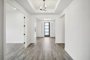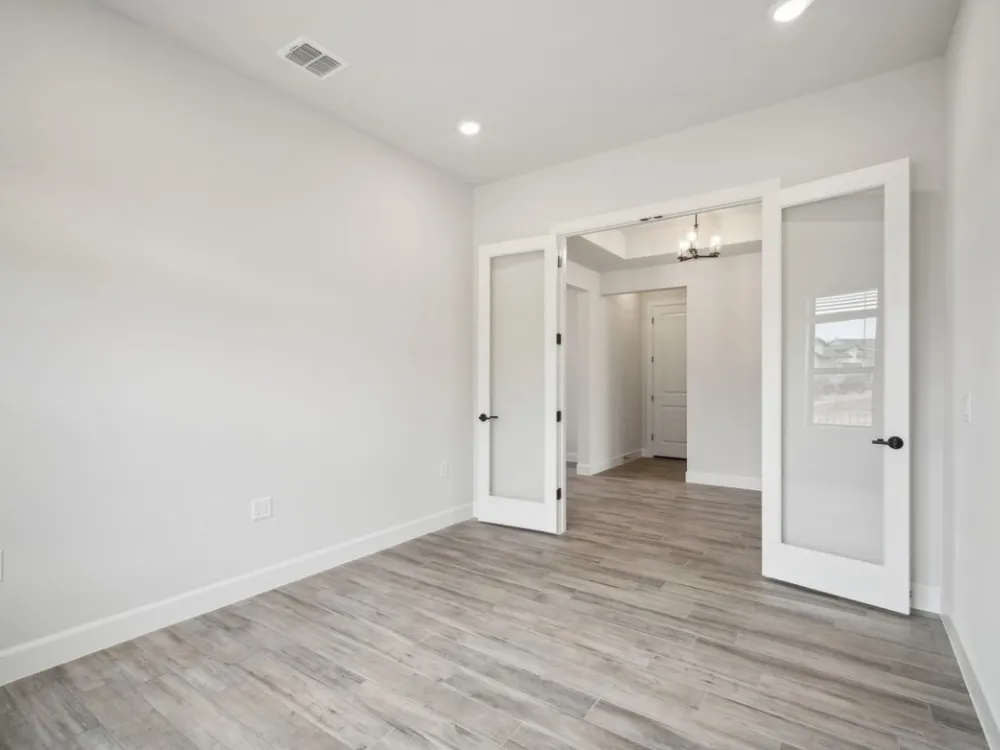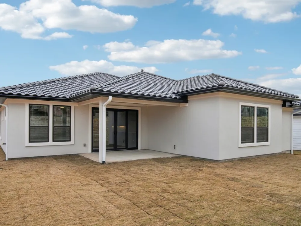 Monroe plan with upgraded kitchen, quartz countertops, upgraded bronze windows, siding glass in living, optional study, tile flooring, tankless water heater in garage, Express cordless blinds