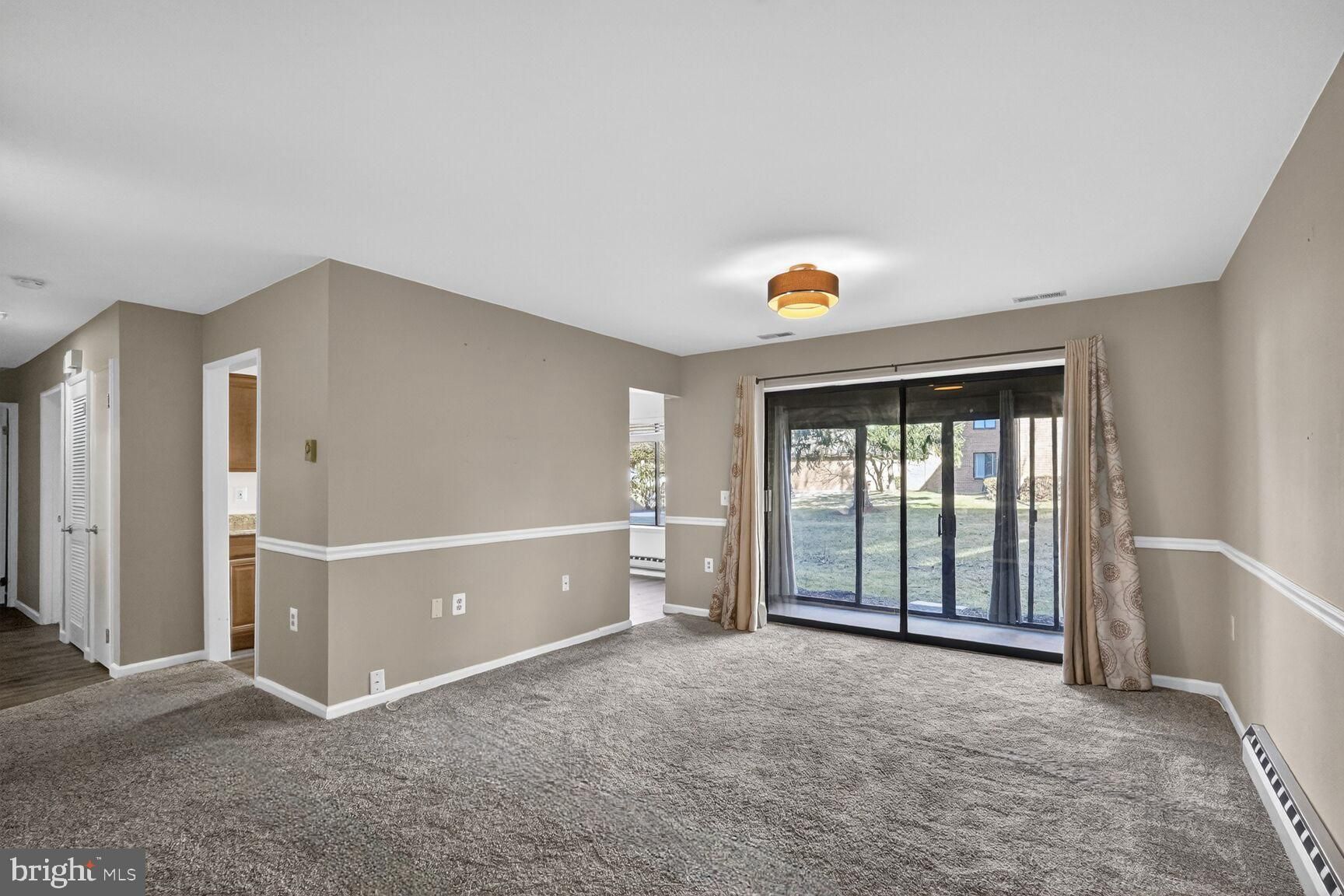 Wonderful 2-bedroom, 2-bathroom unit located on the first floor in a low-rise building. The home features a traditional floor plan with a generous living and dining area that opens to a sunroom and grassy outdoor space— easy access to get outside for a walk or to take a pet out. The eat-in kitchen boasts ample table space, a large window, and a pantry for added storage. The primary suite includes a walk-in closet and en-suite bath with a walk-in shower, while the separate laundry room is equipped with a full-size washer and dryer. This building has one of the easiest walks from the parking lot of all the buildings of this style. Comes with an assigned parking spot and storage space. Condo fee includes all utilities, plus internet and basic cable. Leisure World is a secure, gated community and has many wonderful amenities including a fitness center, outdoor pool, indoor pool, woodworking shop, art studio, auditorium, ceramics studio, shuttle system, etc. Leisure World’s community garden and medical center are located right across the street from this building. Please note there was a leak from the unit above into the hall bathroom ceiling, and it is in the process of being repaired.