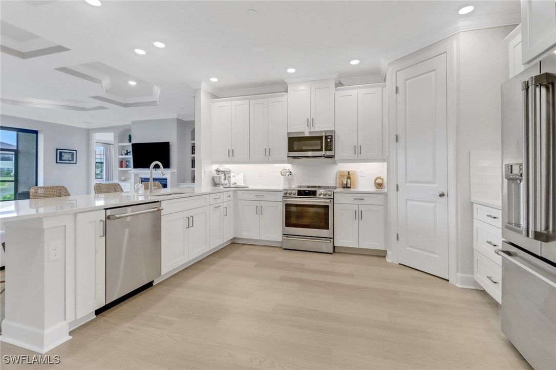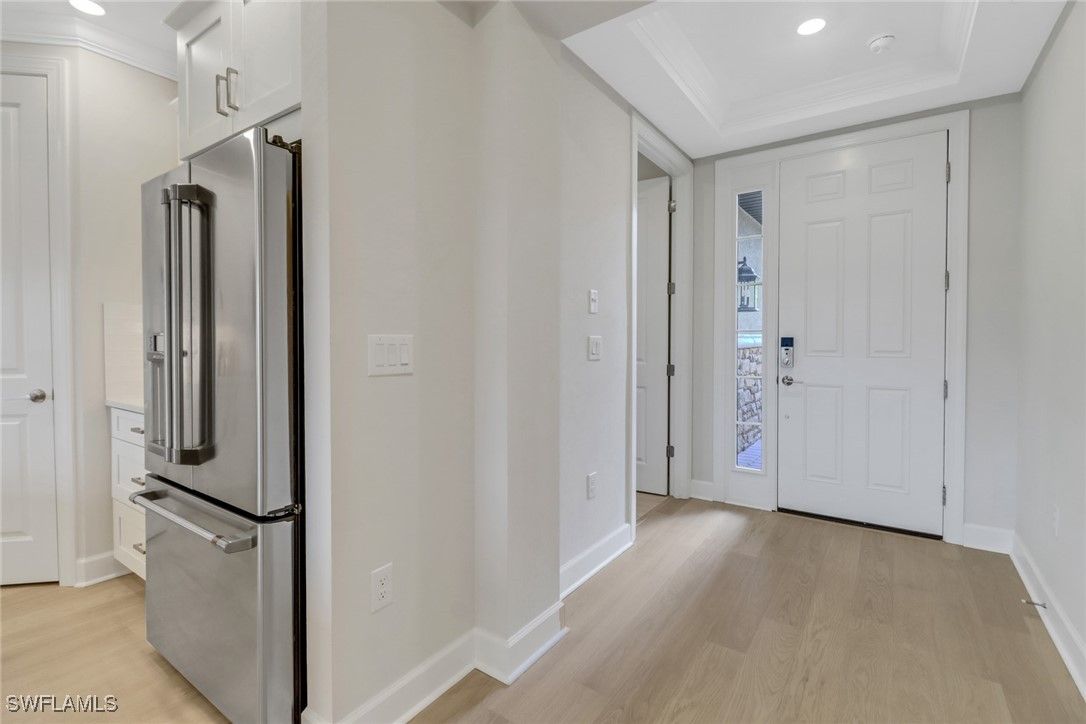 Live every day like you’re on vacation! Welcome to this stunning "furnished" Vitale VII model which is currently the most affordable property in the sought-after community of Esplanade by the Islands, located in scenic Naples, FL! Even below builder new pricing with the latest price drop! This beautifully designed first-floor,2-bedroom, 2-bathroom coach home offers 1,717 sq. ft. of stylish and functional living space, featuring an open-concept layout that’s perfect for both everyday comfort and effortless entertaining. As you enter through the foyer, you're welcomed into a spacious great room seamlessly connected to a designer kitchen and elegant dining area. The kitchen features high-end finishes and a smart layout ideal for home chefs and casual gatherings alike. The Owner’s Suite is tucked away for privacy and boasts dual vanities, a large walk-in shower, and a generous walk-in closet. A separate guest bedroom and full bath provide comfort and convenience for visitors. You’ll also appreciate the well-placed laundry room and an attached garage. Step out onto the oversized screened-in lanai, where tranquil lake views create the perfect backdrop for your morning coffee or evening unwind. Resort-style living at its finest! Esplanade by the Islands offers an unmatched array of luxury amenities, including: Clubhouse with concierge service, resort-style pool with towel service and lap pool, tennis, pickleball, and bocce courts, full-service spa & wellness center, on-site fitness center, massage rooms, hair and nail salon, tiki bar, Bahama Bar restaurant, Toasted Café, outdoor dining areas, coffee shop, BBQ area, fire pit, formal event lawn, dog-friendly bark park, lighted pathways and a satellite pool within walking distance of the unit. Coming Soon: The exclusive Culinary Center with catering kitchen and Sip Wine Club where residents can enjoy tasting events and access unique private-label selections. Conveniently located just minutes from Downtown Naples and Marco Island, you’ll have easy access to white-sand beaches, upscale shopping, fine dining, art galleries, and more. Plus, with Publix right next door, your grocery runs are quick and convenient. This home is move-in ready and available for a quick closing — don’t miss your opportunity to experience luxury resort living every single day! NOTE: All furniture included excluding artwork. NOTE: Sellers are firm on the listing price as this is not only the most competitively priced property, but furnished as well.