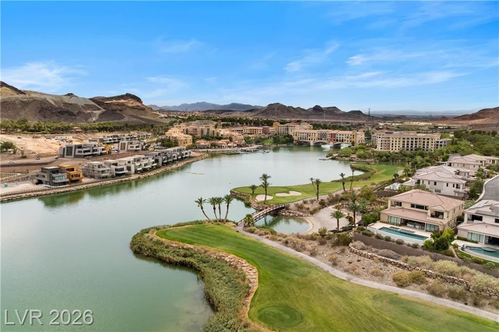 Modern lakefront living in this single-story Blue Heron residence at peninsula on The Island at Lake Las Vegas. This 3,872 SF new-construction home offers a light-filled open floor plan with expansive sliders for seamless indoor-outdoor living. Enjoy direct waterfront views from the great room, primary suite, media room, and backyard. Dock-ready lot with seller credit toward pool. Chef’s kitchen with Thermador appliances and full prep kitchen. Spa-style primary bath with rainfall shower. All bedrooms are en-suite with walk-in closets. Double-gated community with access to golf, dining, fitness, and recreation.