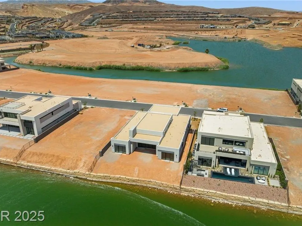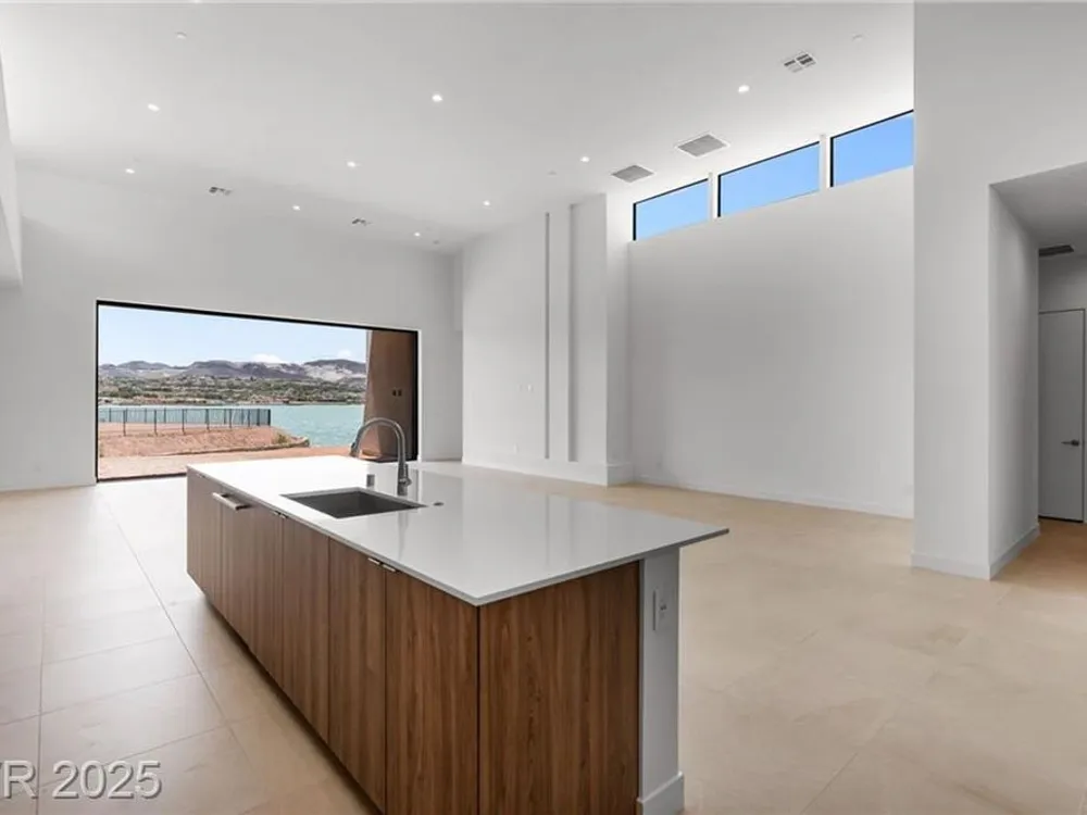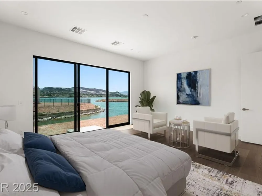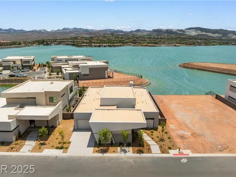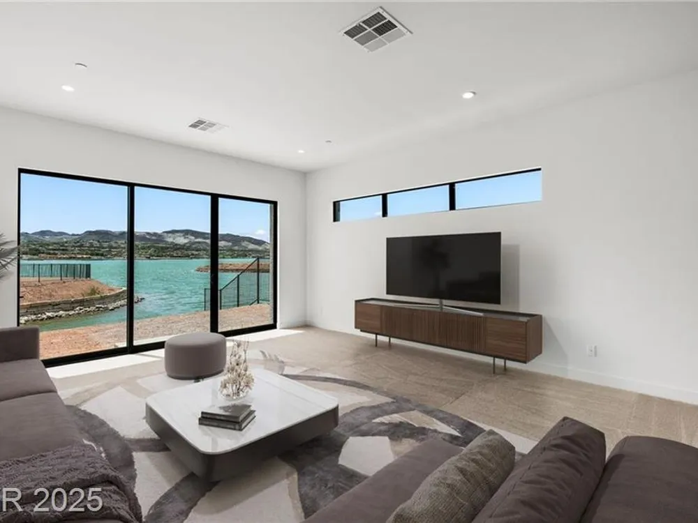 Motivated Seller! Experience modern lakefront living at its finest in this single-story Blue Heron masterpiece at The Island, Lake Las Vegas. Spanning 3,872 SF, this new construction home blends sleek design with resort-style comfort. A dramatic entrance leads into a light-filled open floor plan with a linear fireplace, media room, and large sliders for seamless indoor-outdoor flow. Enjoy stunning waterfront views from the great room, primary suite, media rom and backyard—dock-ready and perfect for future water access. The chef’s kitchen boasts Wolf/SubZero appliances, designer cabinetry, premium hardware, and a full prep kitchen. The spa-inspired primary bath features dual sinks, rainforest shower. All bedrooms are ensuite. Located in a gated community with golf, dining, fitness, and recreation amenities. This is more than a home—it’s a one-of-a-kind waterfront lifestyle.