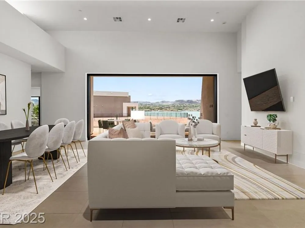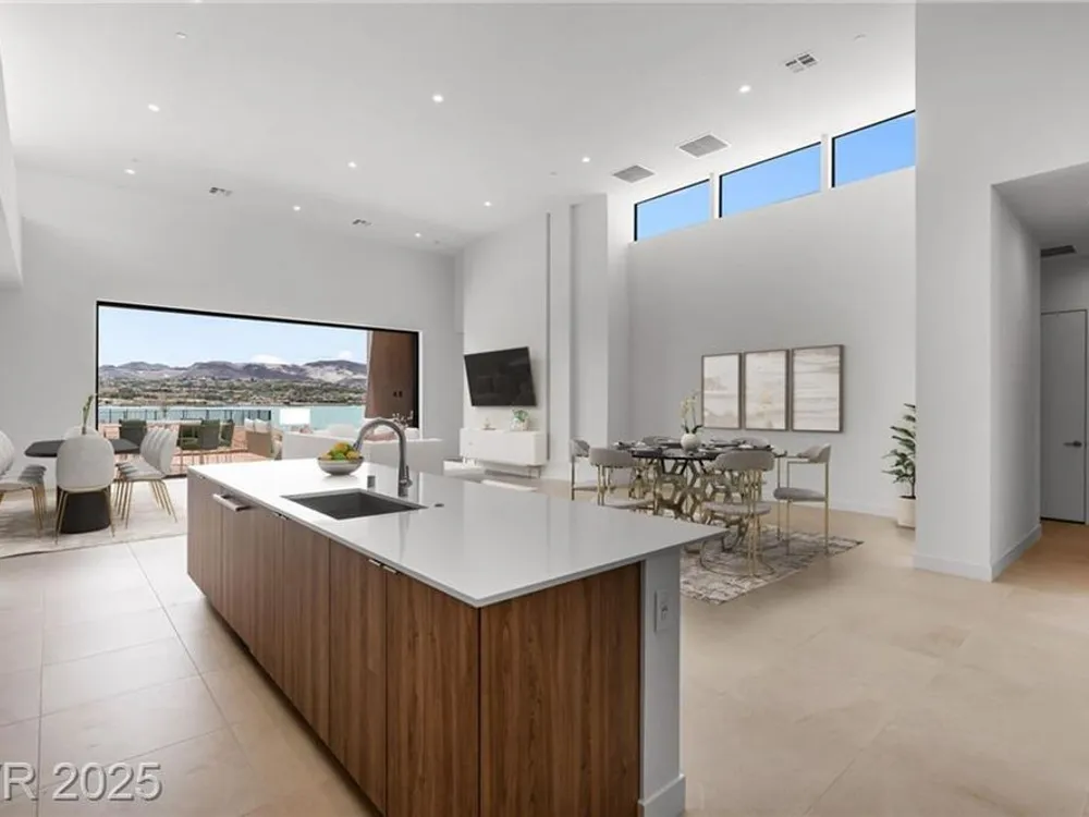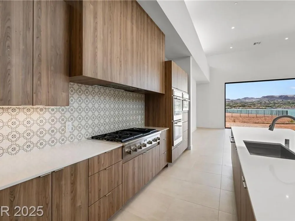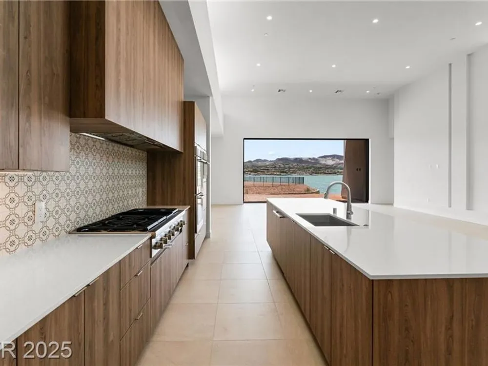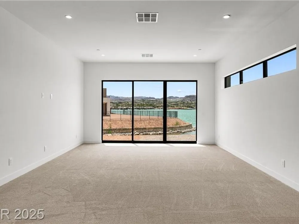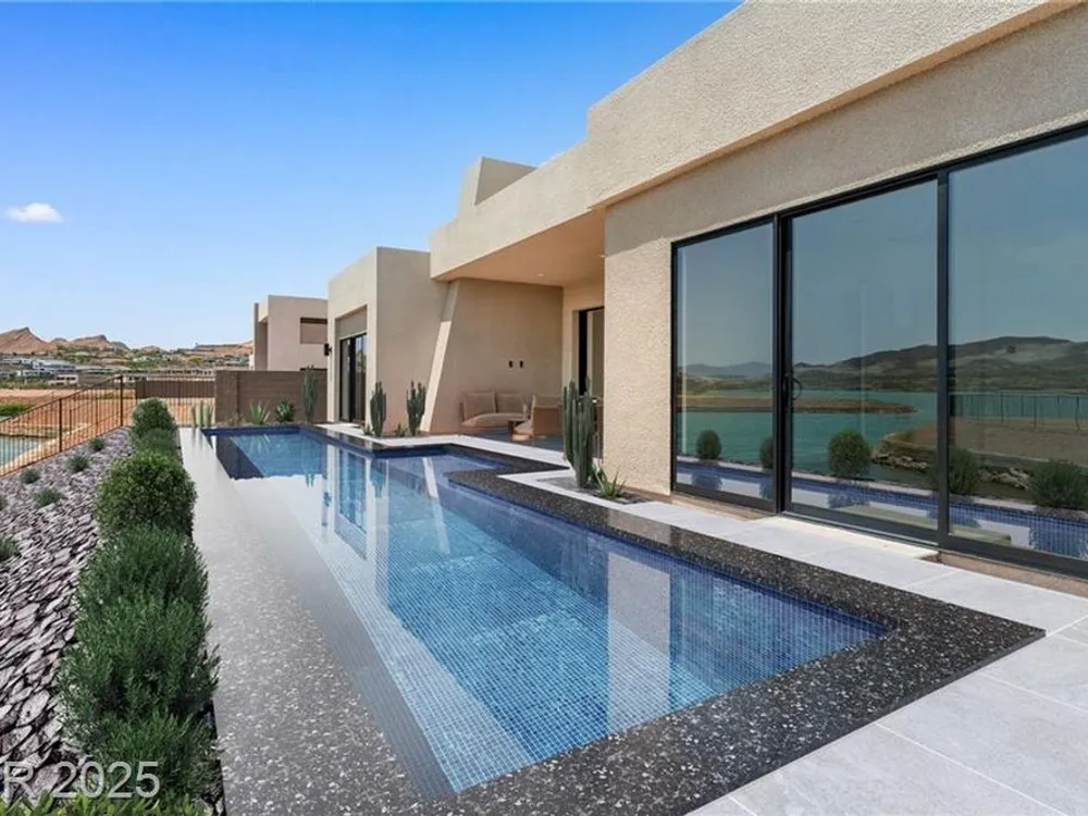 Motivated Seller! Experience modern lakefront living at its finest in this single-story Blue Heron masterpiece at The Island, Lake Las Vegas. Spanning 3,872 SF, this new construction home blends sleek design with resort-style comfort. A dramatic entrance leads into a light-filled open floor plan with a linear fireplace, media room, and large sliders for seamless indoor-outdoor flow. Enjoy stunning waterfront views from the great room, primary suite, media rom and backyard—dock-ready and perfect for future water access. The chef’s kitchen boasts Wolf/SubZero appliances, designer cabinetry, premium hardware, and a full prep kitchen. The spa-inspired primary bath features dual sinks, rainforest shower. All bedrooms are ensuite. Located in a gated community with golf, dining, fitness, and recreation amenities. This is more than a home—it’s a one-of-a-kind waterfront lifestyle.
