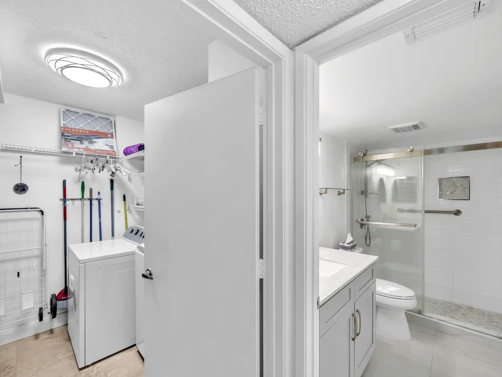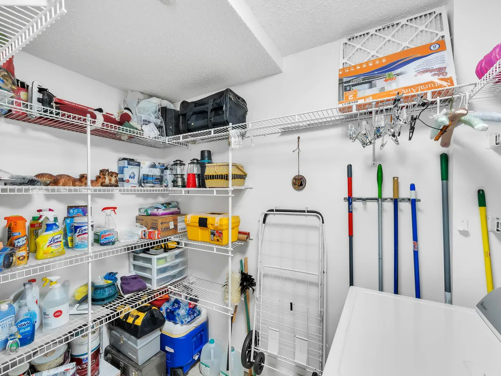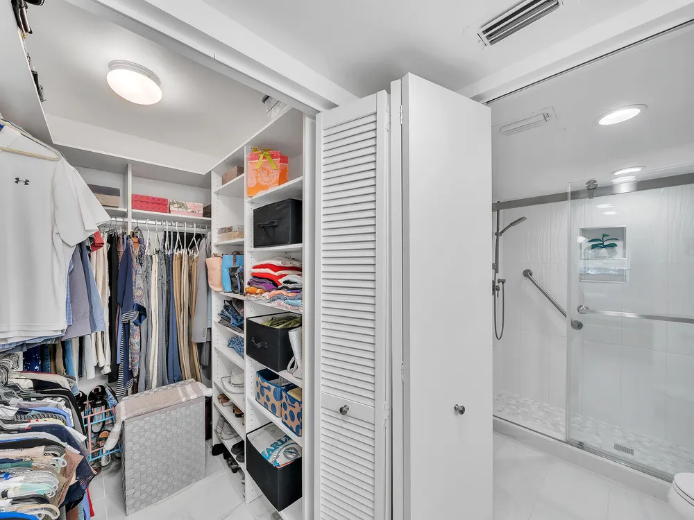 - Built-in Shelving, Fire Sprinkler, Entrance Foyer, Pantry, Split Bedrooms, Walk-In Closet(s), Florida Room, Storage, Living/Dining Room, Eat-in Kitchen, Sliding Window(s), Primary Downstairs, Separate Shower, Storm Shutters