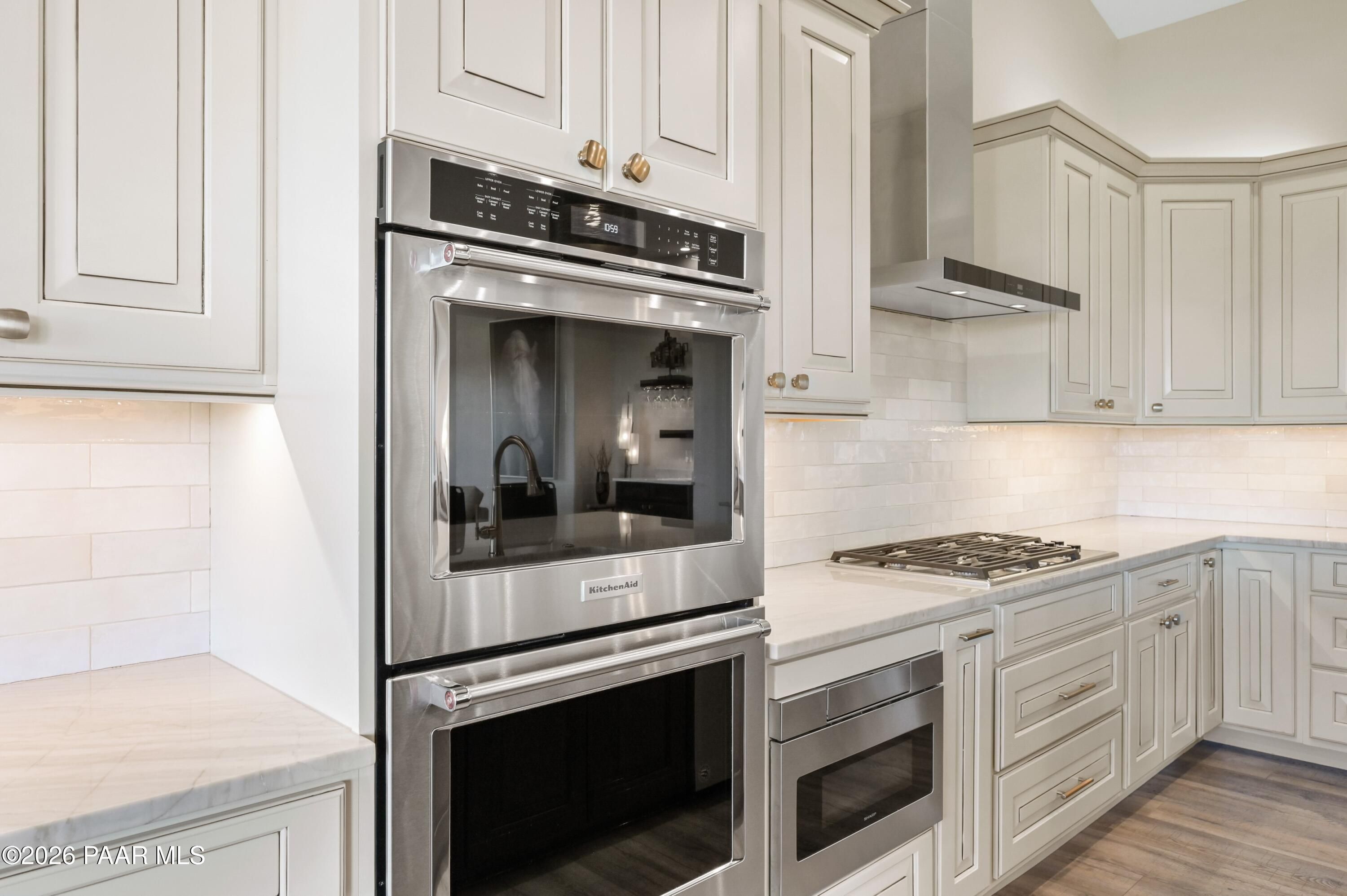 - Pantry, Vaulted Ceiling(s), Convection Oven, Dishwasher, Disposal, Double Oven, Gas Range, Microwave, Oven, Range, Refrigerator