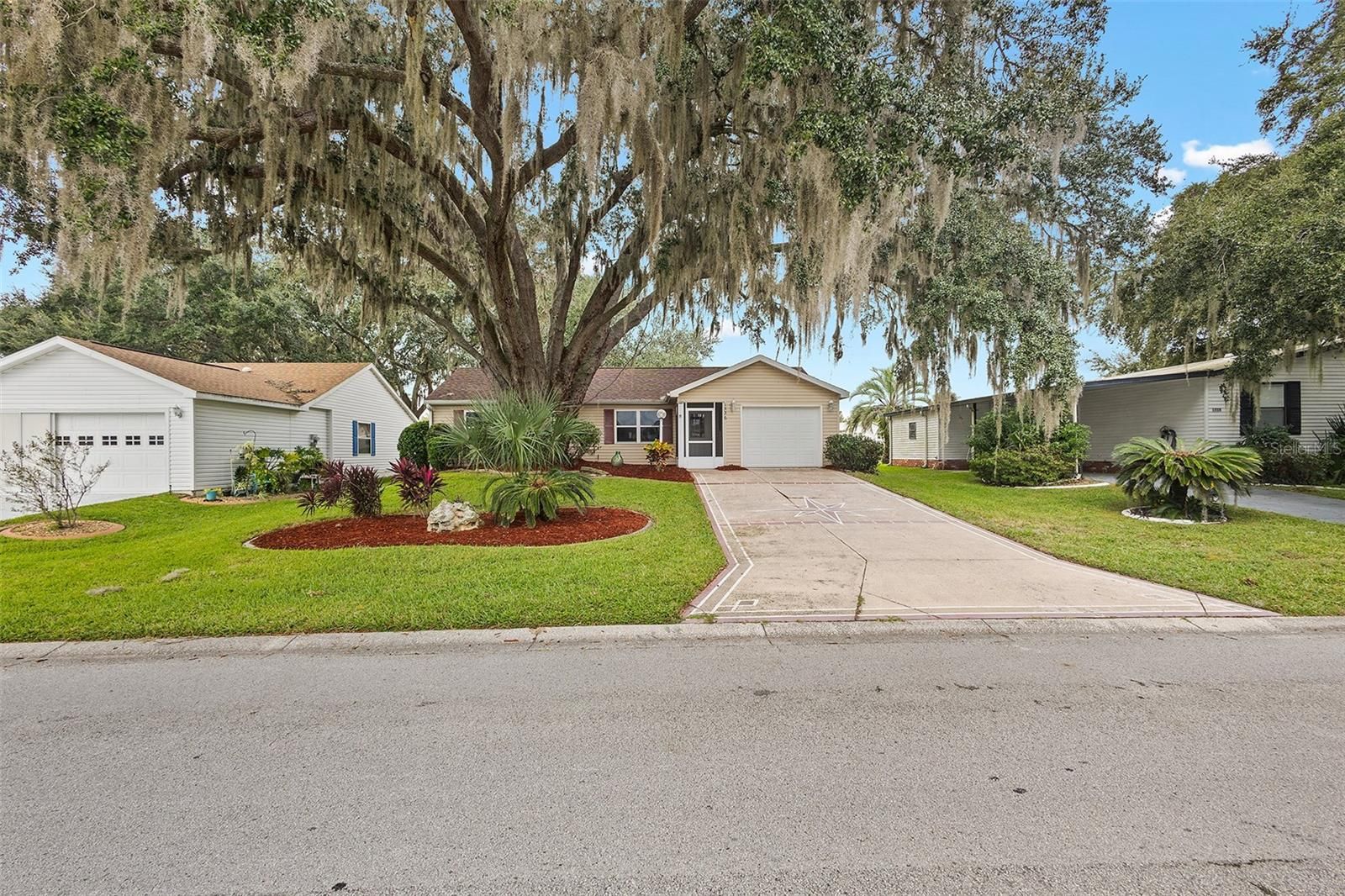 Welcome home to this beautifully maintained El Paso model located directly on the 15th tee of the Orange Blossom Hills Golf Course — offering exceptional privacy, serene golf views, and mature oak trees as your backdrop. From the moment you arrive, you’ll appreciate the screened front entry, decorative driveway, and the charm that sets this home apart. Step inside to an inviting, pristine, open floor plan with vaulted ceilings, laminate flooring, and neutral carpet in the bedrooms. The living and dining areas are bright and airy with decorative fans, skylights for natural light, and updated lighting fixtures throughout. The kitchen was designed with efficiency in mind — offering refreshed cabinetry, plenty of storage, and a layout that keeps you part of the conversation while entertaining. The primary suite is a true retreat, featuring a decorative fan, walk-in closet, and en-suite bath with updated fixtures and finishes. The guest bedroom and bath are spacious and private — perfect for overnight visitors. Step outside to your expanded enclosed lanai — ideal for relaxing with a morning coffee or watching golfers tee off in the distance. A grilling pad and outdoor sitting area make it easy to enjoy Florida living year-round. Practical updates bring peace of mind, including: * ROOF 2024 * Newer double-pane windows * Water heater (2024) * HVAC (2016) * Garage door & opener * Expanded driveway and added washer/dryer area off the kitchen Constructed with a 4-foot deep concrete crawl space to protect against moisture and foundation concerns, this home has been thoughtfully maintained. **NO BOND** and low maintenance assessment make ownership even more appealing. About The Village of Country Club Hills: Located on one of the most scenic elevations in The Villages, Country Club Hills is home to the Orange Blossom Hills Country Club — a beloved landmark featuring 18 holes of championship golf, a Hilltop executive course, and a restaurant and pool for residents to enjoy. Rolling hills, mature trees, and sweeping views create a peaceful setting just minutes from Spanish Springs Town Square. Whether relaxing at the Hilltop pool or meeting friends for a bite at the country club, you’ll love the welcoming charm and established character of this community.