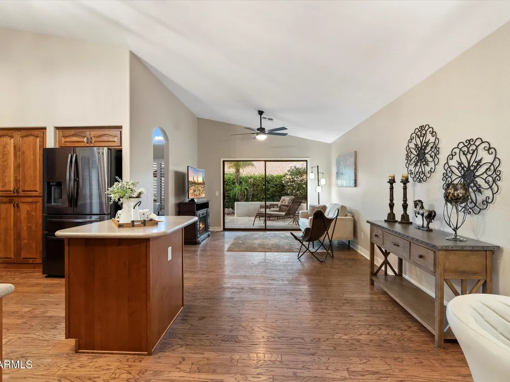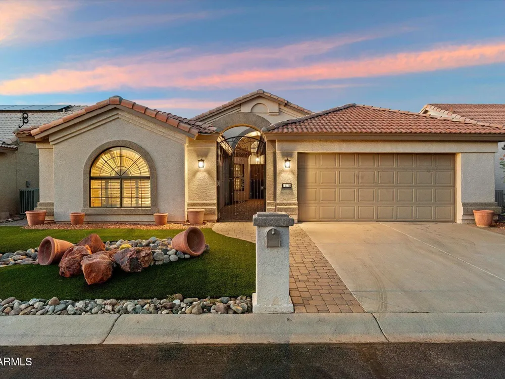 Do you love golf? This is the place for you! Welcome to resort-style living in this highly sought-after extended Heritage model, ideally located in the heart of PebbleCreek. Move-in ready and beautifully maintained, this 1,817 sq. ft. gem blends comfort, space, and sophisticationâ€''perfect for entertaining, relaxing, and enjoying the best of Arizona living. Step outside to your private retreat: a fully enclosed backyard that feels like your own parkâ€''lush, serene, and designed for both unwinding and hosting guests. Inside, the bright eat-in kitchen offers abundant cabinetry and counter space, flowing seamlessly into the living, dining, and family rooms for easy gatherings. A dedicated office/den provides versatility for work, hobbies, or a cozy reading nook. A dedicated office/den provides versatility for work, hobbies, or a cozy reading nook. Both generously sized bedrooms feature large walk-in closets, with the primary suite serving as a true sanctuary and the secondary bedroom offering a welcoming retreat for guests. An additional reading nook with yet another oversized closet enhances the thoughtful floor plan. The oversized garage with a 2' extension includes built-in cabinets, providing excellent storage and space for larger vehicles. Additional highlights include a soft water loop, all appliances included, and meticulous upkeep. Living in PebbleCreek means more than just owning a homeit's embracing a lifestyle. This prestigious 55+ gated community offers championship golf, state-of-the-art fitness, resort-style pools, pickleball, tennis, creative arts studios, and an endless calendar of social activities. Don't miss the opportunity for this exceptional property to be home, and experience the vibrant, active PebbleCreek lifestyle at its finest.