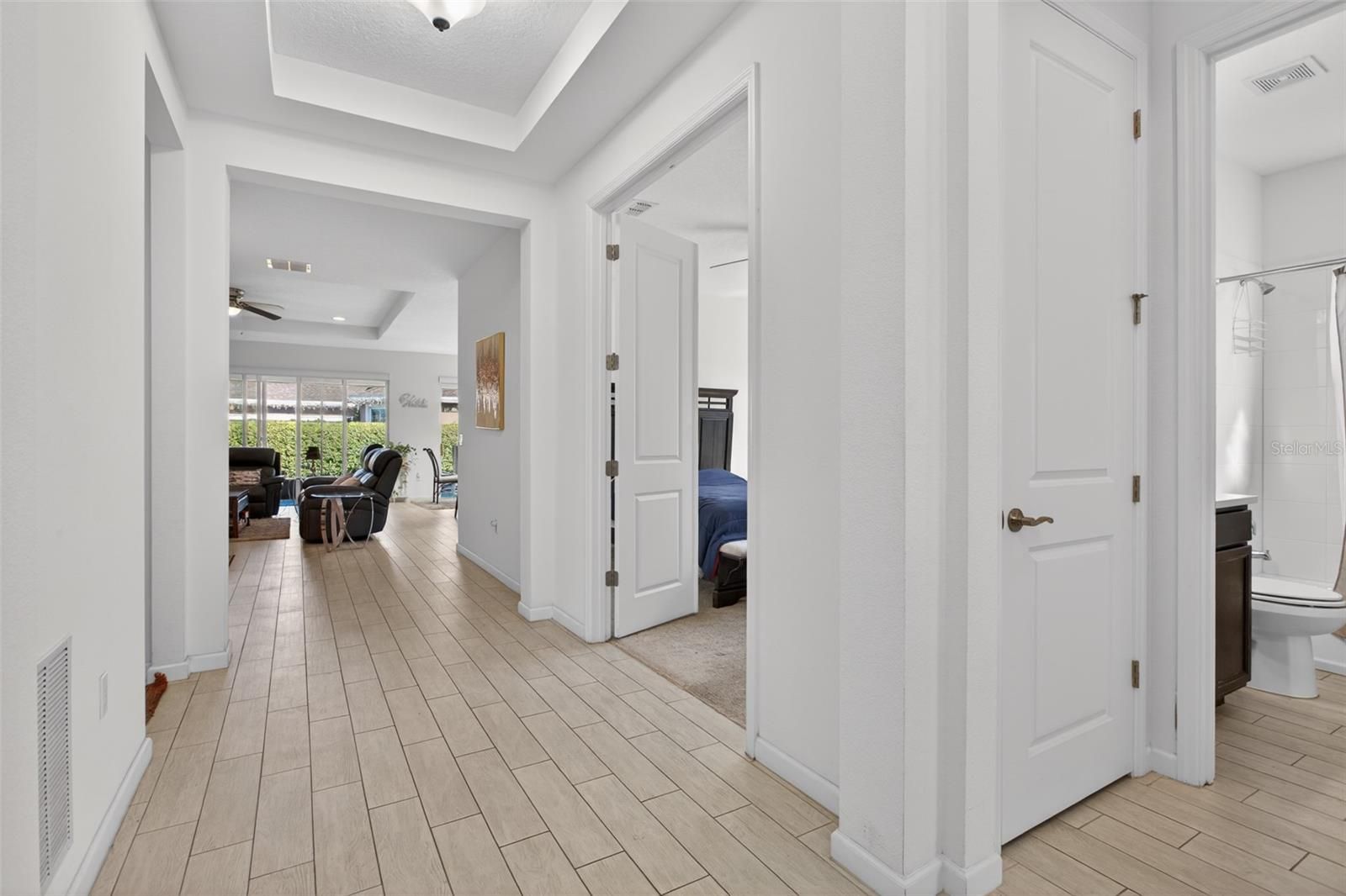 Welcome home to this beautiful Siena Floor plan model 3 bedroom, 3 bathroom plus office/den home located in the desirable 55+ gated community in Victoria Gardens/Cresswind community which offers an active, resort-style lifestyle. Home features an open floor plan ideal for comfortable living and entertaining, highlighted by a large gourmet kitchen complete with soft close cabinets, pendant lighting, large breakfast island, stainless steel appliances and a walk-in pantry. All bedrooms have a bathroom plus an additional room that can be used for an office or den. Flooring is a beautiful wood tile, along with DOUBLE PANE windows. Ceiling fans, a tall Leaded-glass front door, Paver patio and driveway. Inside laundry room. Large primary suite, with a large walk-in closet and a spacious en suite bathroom featuring a walk-in shower. Enjoy gatherings on your screened lanai, surrounded by a high privacy hedge. As a resident of this Active 55+gated community, you will enjoy the finest in amenities, including your very own Private clubhouse, on-site restaurant, bar, game rooms, fitness center, a resort-style pool, lighted tennis and pickle ball courts, bocce ball, library, crafts, and travel clubs and live entertainment. Just minutes to the historical downtown DeLand voted 'Best Small Town' with its exquisite restaurants, night life, boutiques, and cultural attractions. HOA includes: lawn & shrub care, Cable TV, High-speed internet, reclaimed water irrigation and access to all community amenities. This great location is nestled in the heart of Deland which provides easy access to I-4, area beaches, shopping, restaurants and quality healthcare. With everyday essentials close by experience the perfect blend of small-town charm, active adult amenities, and nearby coastal living. Schedule a showing of this beautiful home today!