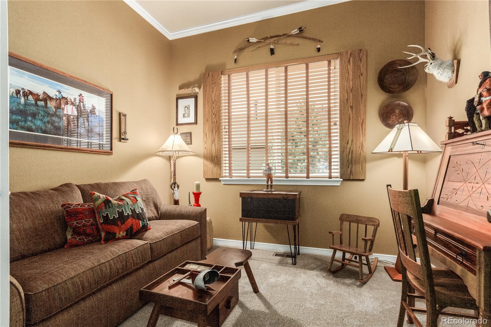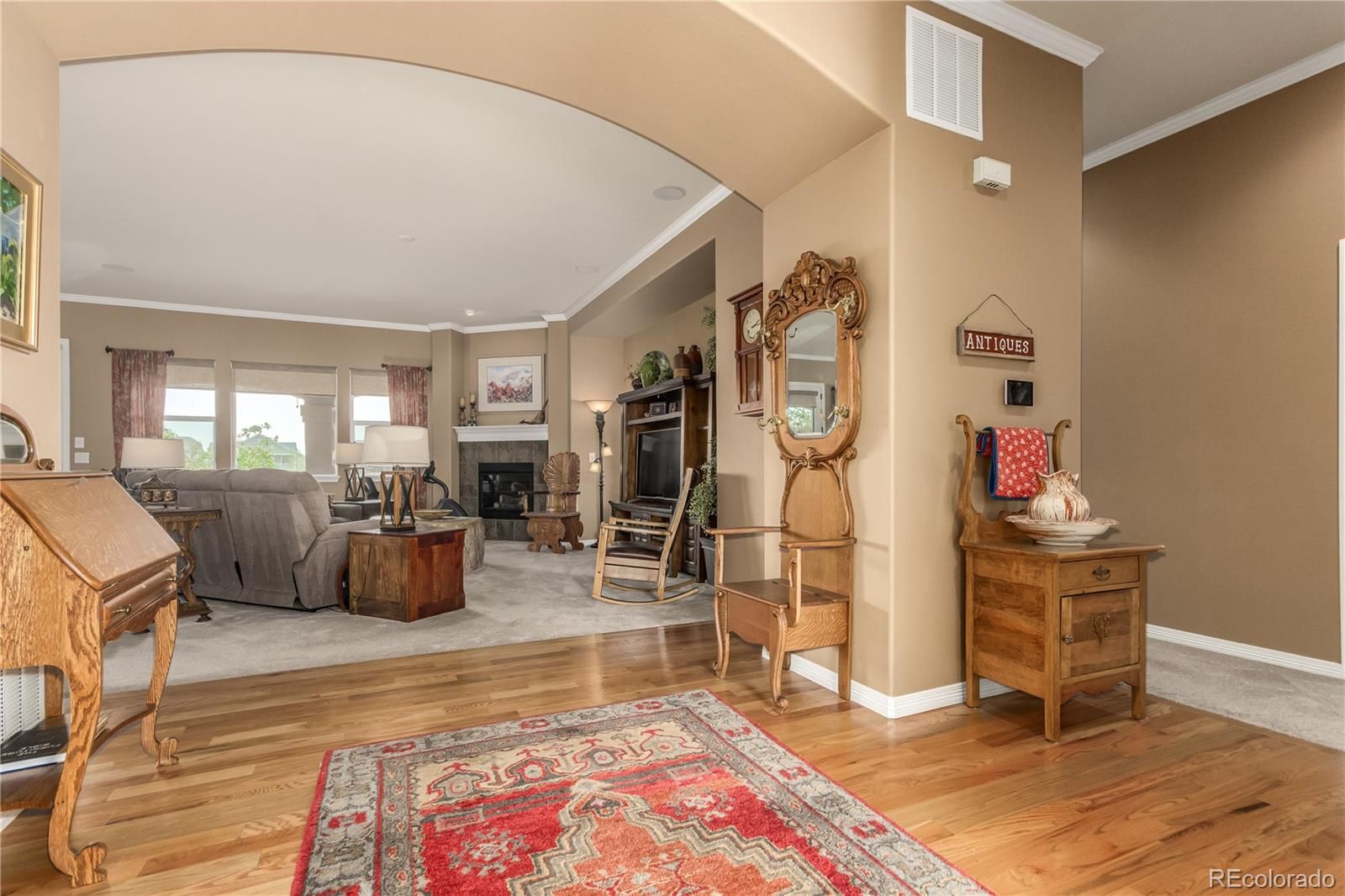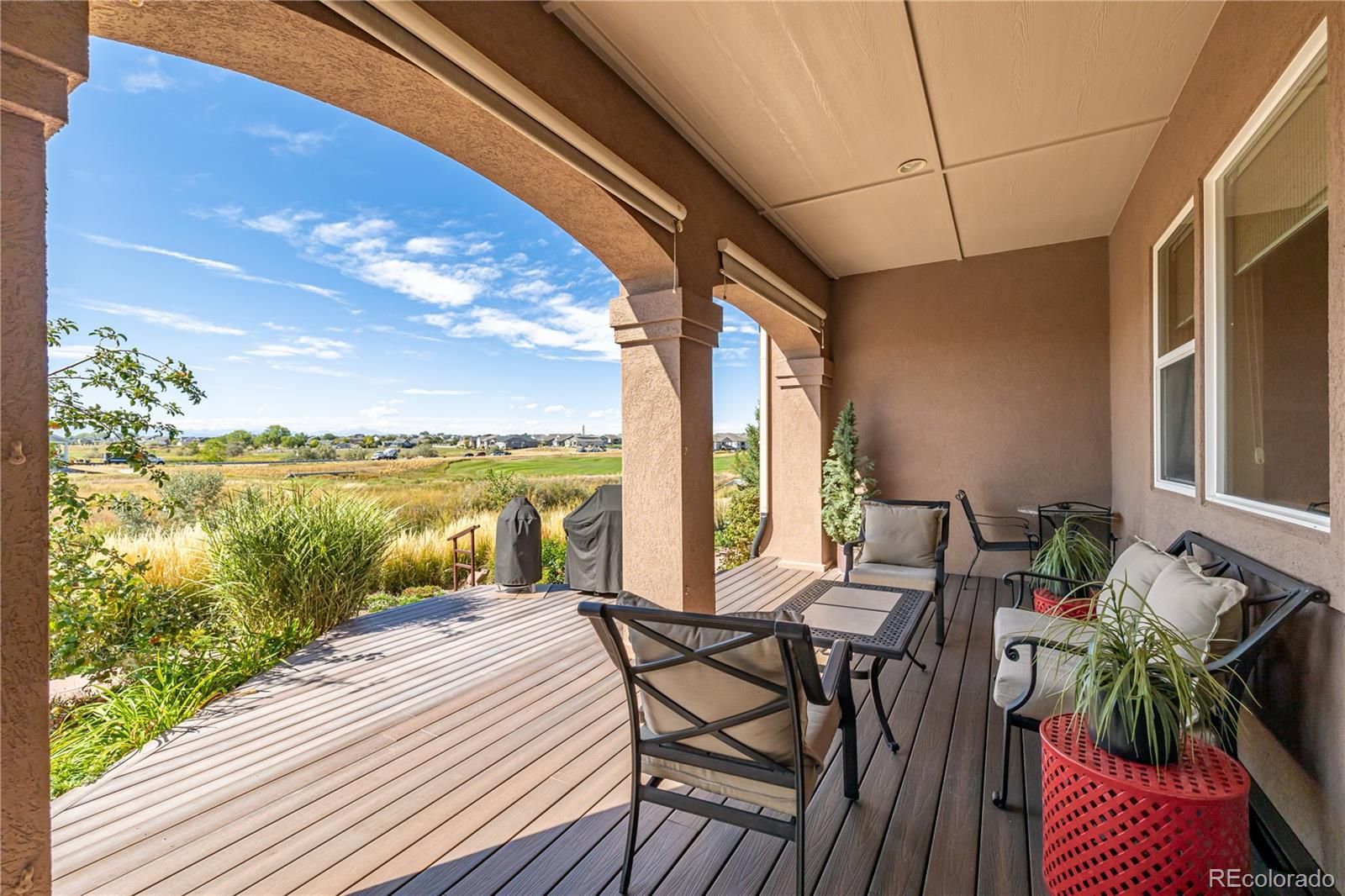 Prime West-facing location with stunning mountain and golf course views. Experience effortless living in this meticulously maintained residence within the gated Heritage Todd Creek masterplan. Designed for modern comfort, the home boasts main-level living with an open-concept layout, vaulted ceilings, and a chef’s kitchen featuring granite countertops and stainless steel appliances. Oversized primary suite with mountain and course views from the bedroom, a renovated 5-piece primary bath and oversized walk-in closet create a luxurious respite. The secondary bedroom provides privacy for guests. Office/den area along with a large laundry mud room complete the main floor. Residents enjoy exclusive access to resort-style amenities including, indoor pool, outdoor pool, full fitness center, pickleball and tennis courts, a full-service restaurant, and over 50 social clubs to keep you engaged. Ideally located near shopping and dining with easy access to freeways, this home offers the perfect blend of luxury and convenience. Heritage Todd Creek 55+ community. The following amenities are available to Heritage Todd Creek - Thornton, CO residents: Clubhouse/Amenity Center Golf Course Restaurant Fitness Center Indoor Pool Outdoor Pool Aerobics & Dance Studio Card Room Arts & Crafts Studio Ballroom Computers Library Billiards Walking & Biking Trails Tennis Courts Horseshoe Pits Outdoor Patio Golf Practice Facilities/Putting Green Golf Shop/Golf Services/Golf Cart Rentals