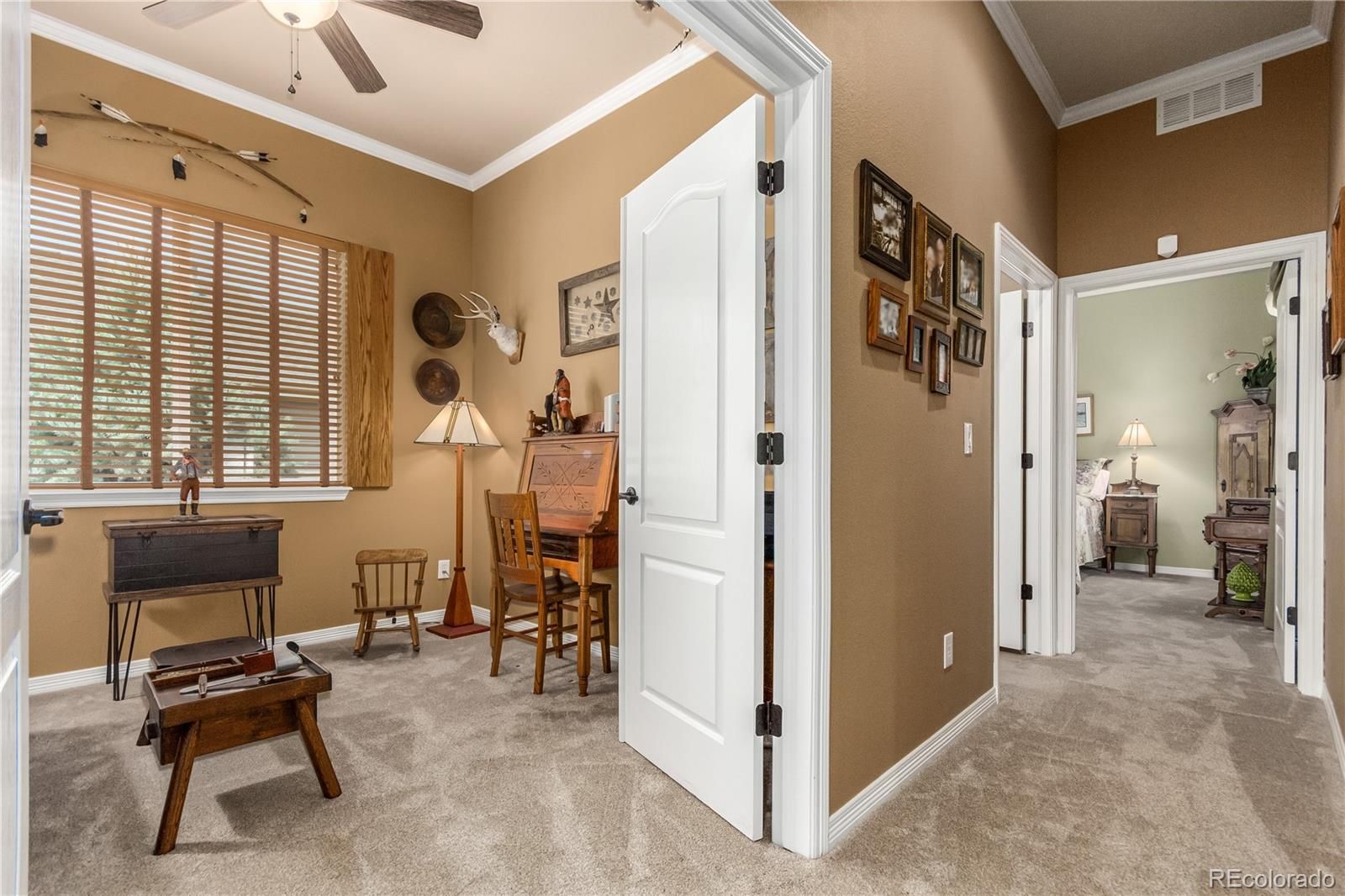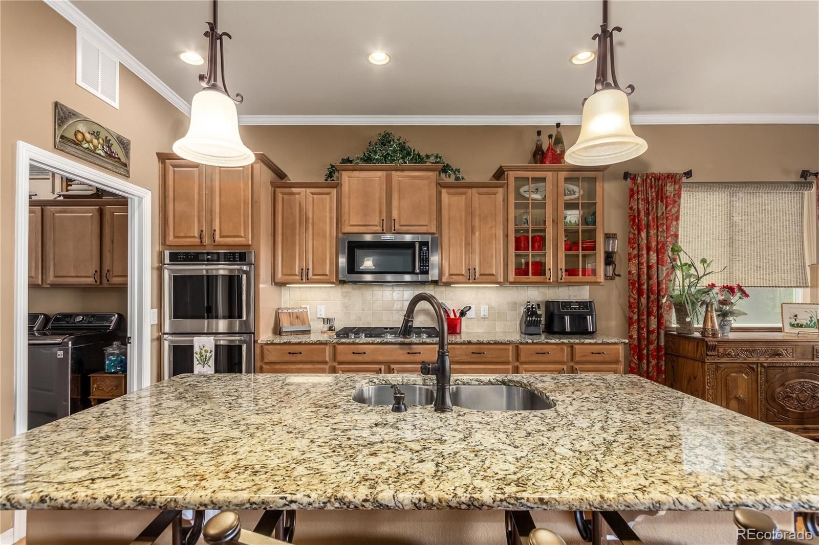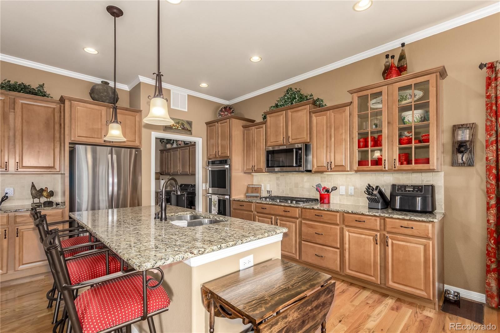 Prime West-facing location with stunning mountain and golf course views. Experience effortless living in this meticulously maintained residence within the gated Heritage Todd Creek masterplan. Designed for modern comfort, the home boasts main-level living with an open-concept layout, vaulted ceilings, and a chef’s kitchen featuring granite countertops and stainless steel appliances. Oversized primary suite with mountain and course views from the bedroom, a renovated 5-piece primary bath and oversized walk-in closet create a luxurious respite. The secondary bedroom provides privacy for guests. Office/den area along with a large laundry mud room complete the main floor. Residents enjoy exclusive access to resort-style amenities including, indoor pool, outdoor pool, full fitness center, pickleball and tennis courts, a full-service restaurant, and over 50 social clubs to keep you engaged. Ideally located near shopping and dining with easy access to freeways, this home offers the perfect blend of luxury and convenience. Heritage Todd Creek 55+ community. The following amenities are available to Heritage Todd Creek - Thornton, CO residents: Clubhouse/Amenity Center Golf Course Restaurant Fitness Center Indoor Pool Outdoor Pool Aerobics & Dance Studio Card Room Arts & Crafts Studio Ballroom Computers Library Billiards Walking & Biking Trails Tennis Courts Horseshoe Pits Outdoor Patio Golf Practice Facilities/Putting Green Golf Shop/Golf Services/Golf Cart Rentals