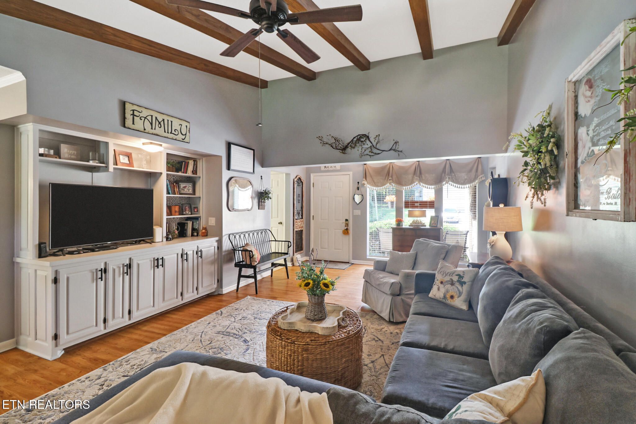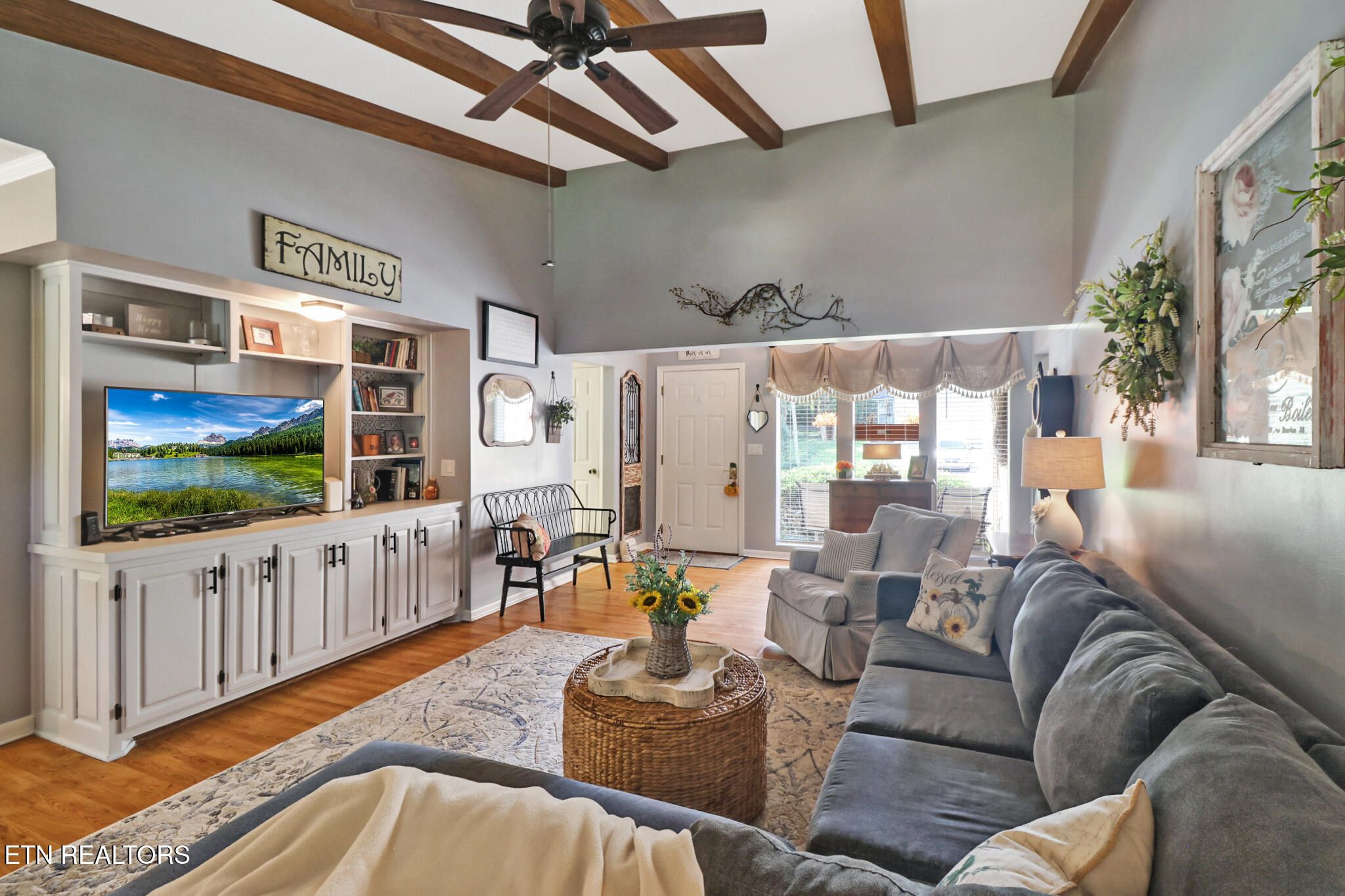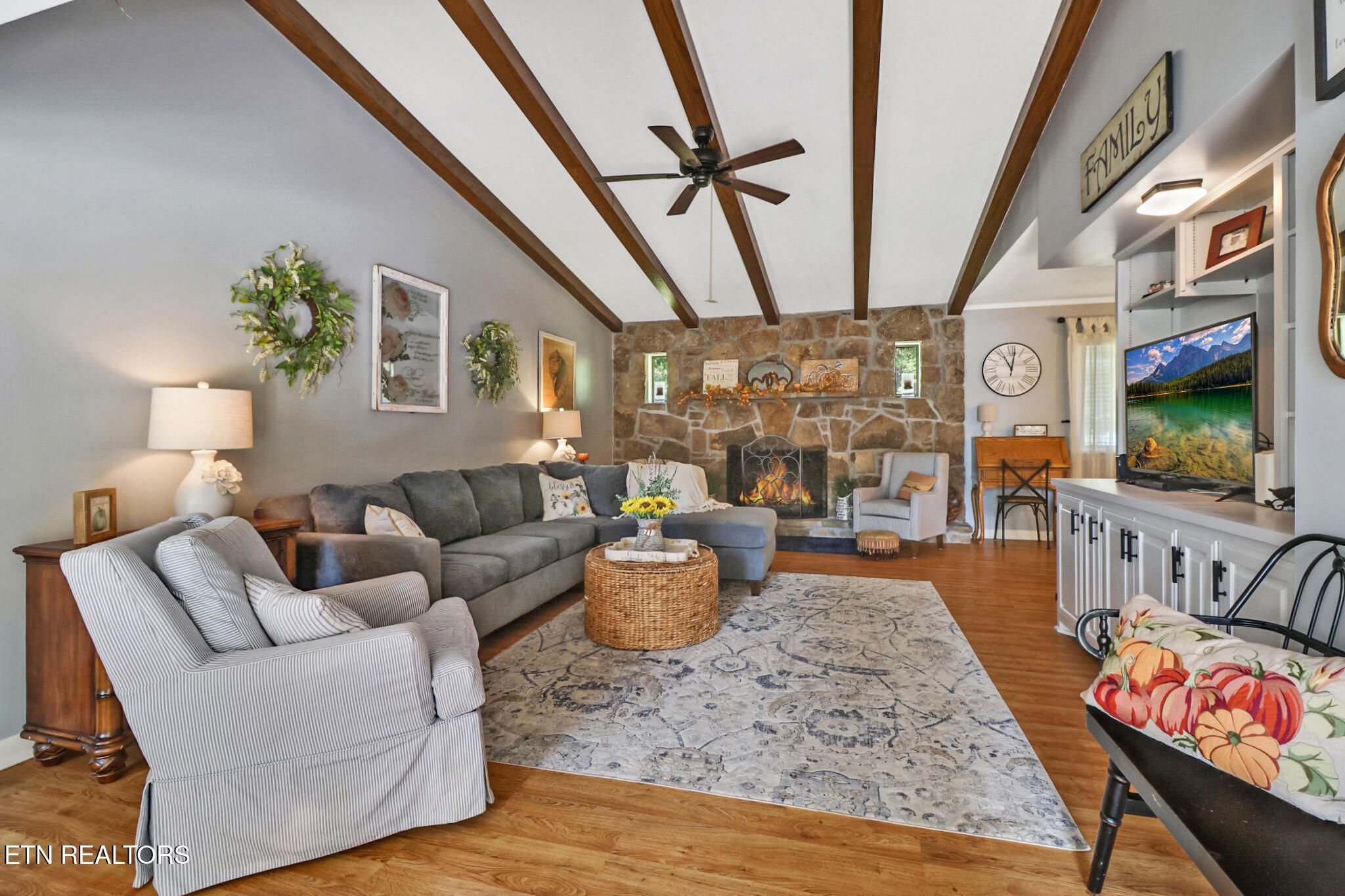 Welcome to this beautifully maintained and move-in-ready 2 bedroom, 2 bathroom home in the heart of Fairfield Glade. Located just minutes from shopping, dining, and community amenities, this home offers both comfort and convenience in a prestigious community. Step inside to a bright, open living room with vaulted ceilings and a stunning stone gas fireplace, perfect for relaxing or entertaining. The home features two spacious living areas: a living room and a cozy family room, providing ample space for gatherings or quiet evenings. Enjoy your mornings or evenings on the newly stained back deck, overlooking a meticulously landscaped yard. The outdoor space is ideal for entertaining, with a fire pit area, two designated gathering spaces, and a separate storage building for tools or seasonal items. Additional highlights include a rare 3-car garage, an included additional lot, and a layout designed for easy, single-level living. This home has been lovingly cared for and is truly move-in ready. Don't miss your opportunity to own this exceptional Fairfield Glade home. Schedule your private showing today!