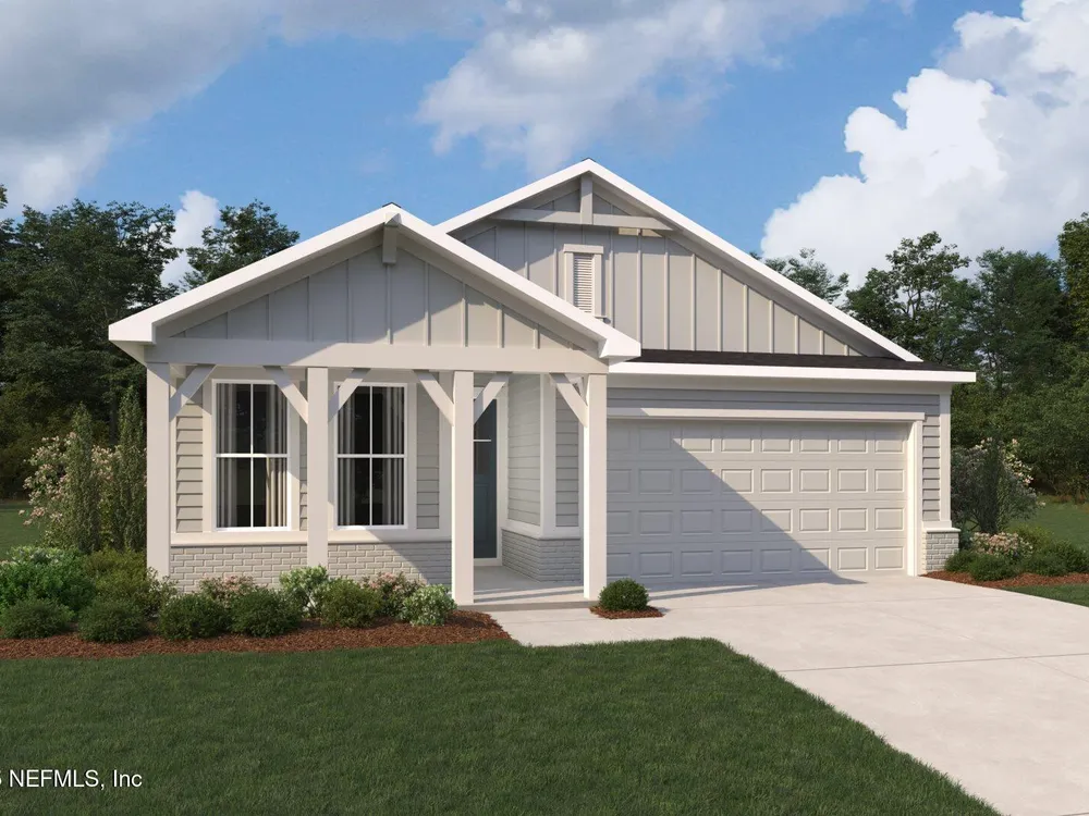 Lot 11 - Welcome to the Martinique, where timeless Farmhouse style meets thoughtfully upgraded design. This spacious, open-concept home centers around a Chef's Kitchen featuring a walk-in pantry and Dry Bar. The kitchen flows into the Dining and Great Room, all highlighted by a 12' multi-sliding glass door that opens to the lanai, creating seamless indoor-outdoor living. A private Study replaces the traditional Flex Room, providing a quiet space for work, hobbies, or relaxation. The Primary Suite is tucked away at the rear of the home for added privacy, while Bath 3 includes a sleek shower in place of a tub—perfect for guests or multigenerational needs. Blending style, comfort, and flexibility, the Martinique is designed to fit your lifestyle. Located in WATERSONG, a gated 55+ neighborhood in RiverTown, residents enjoy access to scenic trails, lakes, parks, and the St. Johns River. Resort-style amenities include fitness classes, wine nights, trivia, bunco, a Paw Park and more.