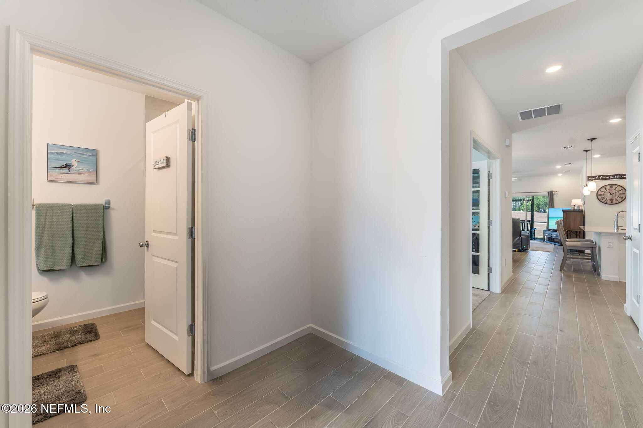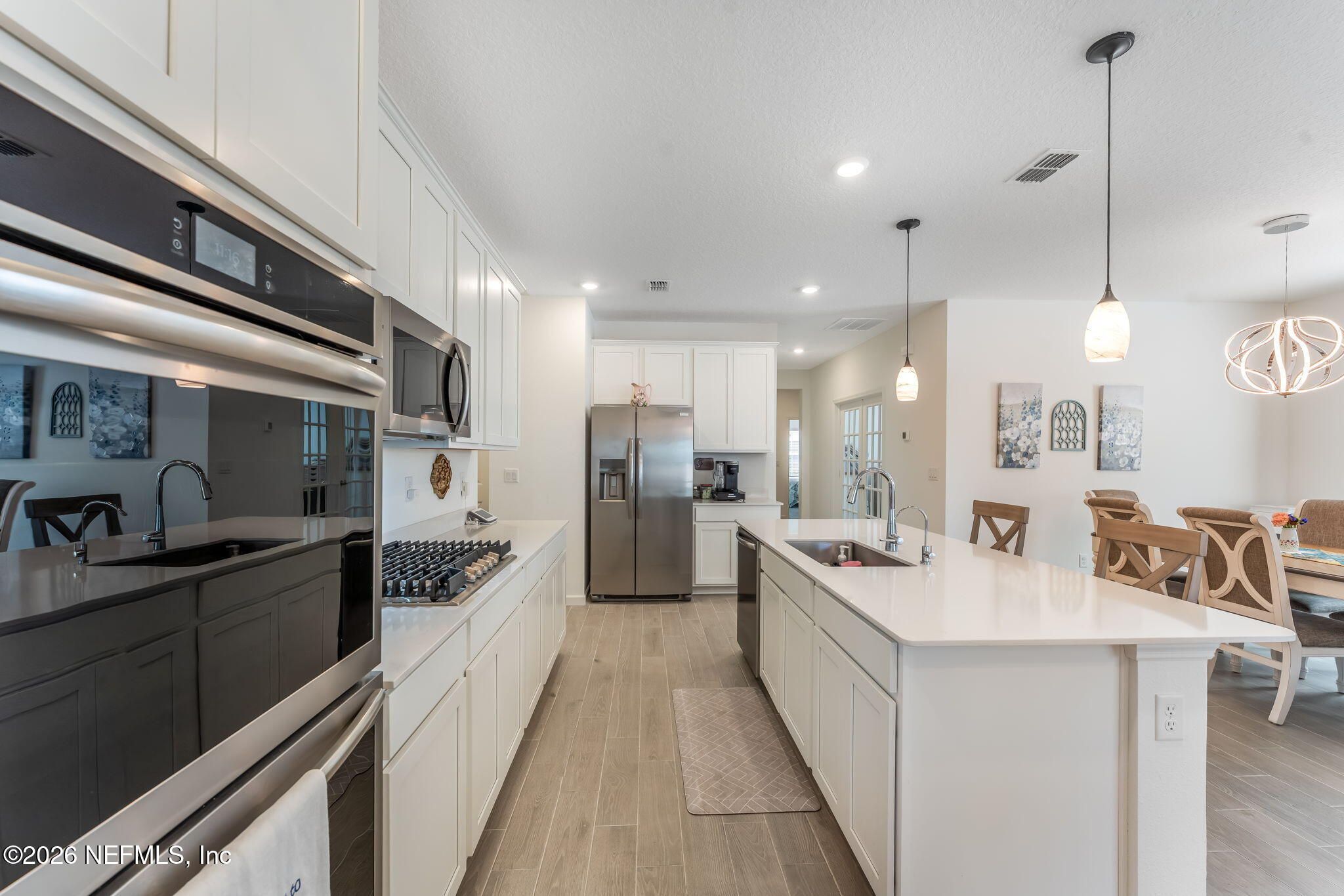 Welcome to resort-style living in Stillwater at St. Johns, a premier Active Adult, Private Golf Community in St. Johns County, FL. Lennar Homes Sienna Villa is perfectly positioned on a premium homesite overlooking the 9th hole with tranquil pond views, offering both scenery & privacy. The thoughtfully designed 2 bed, 2 bath + a Flex/den & 2 car garage, ideal for low-maintenance living with modern comfort. Enjoy features, highlighted by a gourmet kitchen with white 42'' cabinetry, white quartz countertops, and Frigidaire® stainless steel appliances, gas range, double ovens, microwave, dishwasher, & refrigerator. Additional upgrades include quartz vanities, gas water heater, ceramic wood-look tile throughout wet areas and extending into the family room, dining area, and halls. Unwind on the screened lanai with ceiling fan, plus a full sprinkler system. Experience elegant finishes, golf course views, & an active lifestyle in one of St. Johns County's most desirable 55+ communities.