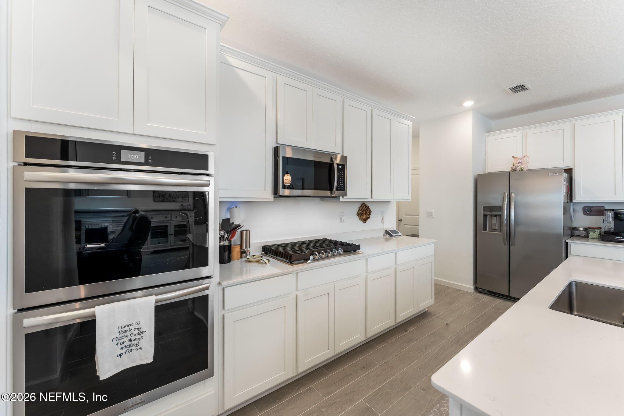 - Dishwasher, Disposal, Double Oven, Dryer, Electric Oven, Gas Cooktop, Microwave, Refrigerator, Tankless Water Heater