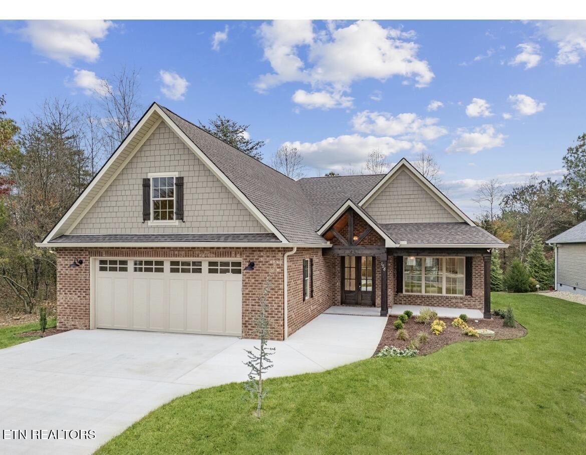 Stunning New Construction in Tellico Village-Experience exceptional craftsmanship in this beautifully designed 2704 square feet home situated on the perfect lot. The inviting exterior showcases a brick front with a covered beam porch with stained TG ceilings that set the tone the moment you arrive.Step inside thru a double front door entry into an elegant open concept layout with a seamless flow between the living room,dining room, kitchen. This entire space is captivated with a wall to wall coffered ceiling with stained TG ceiling panels, a white brick fireplace with custom wooden mantle and extensive trim. The island kitchen is filled with crisp white cabinetry, premium granite tops ,stainless appliances and a designer backsplash that elevates the entire space. This split bedroom floor plan features a large primary suite with trey ceiling, extensive crown molding and a large double vanity bathroom with soaking tub and separate shower. Each guest bedroom provides privacy for family and friends and there are beautifully trimmed finishes throughout.You will enjoy year round relaxation, morning coffee and quite evenings in the spacious enclosed back porch that features double glass sliding doors. Upstairs is a large bonus room , flex space or 4th bedroom. Every detail has been thought of and is on display with the upgraded lighting package,hall tree storage with seating bench and shoe cabinets and large pantry with wooden shelving.This home embodies style, comfort and true Tellico Village living