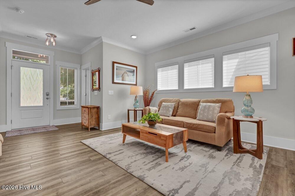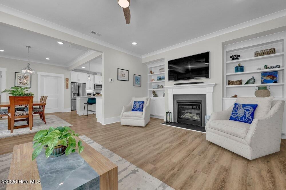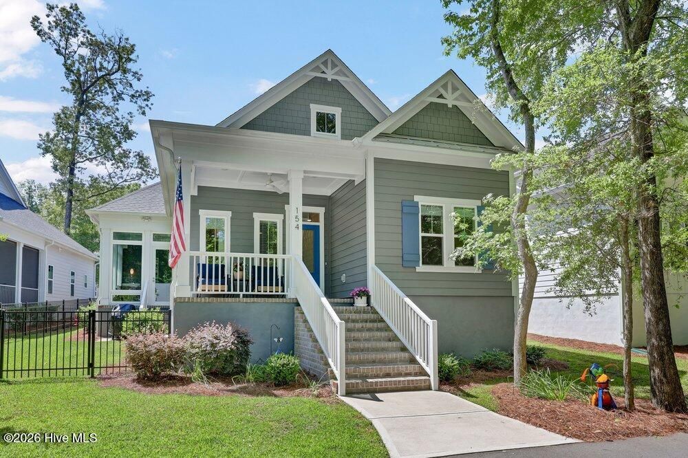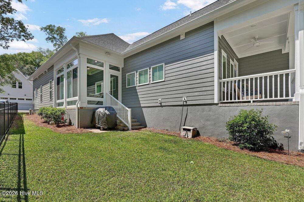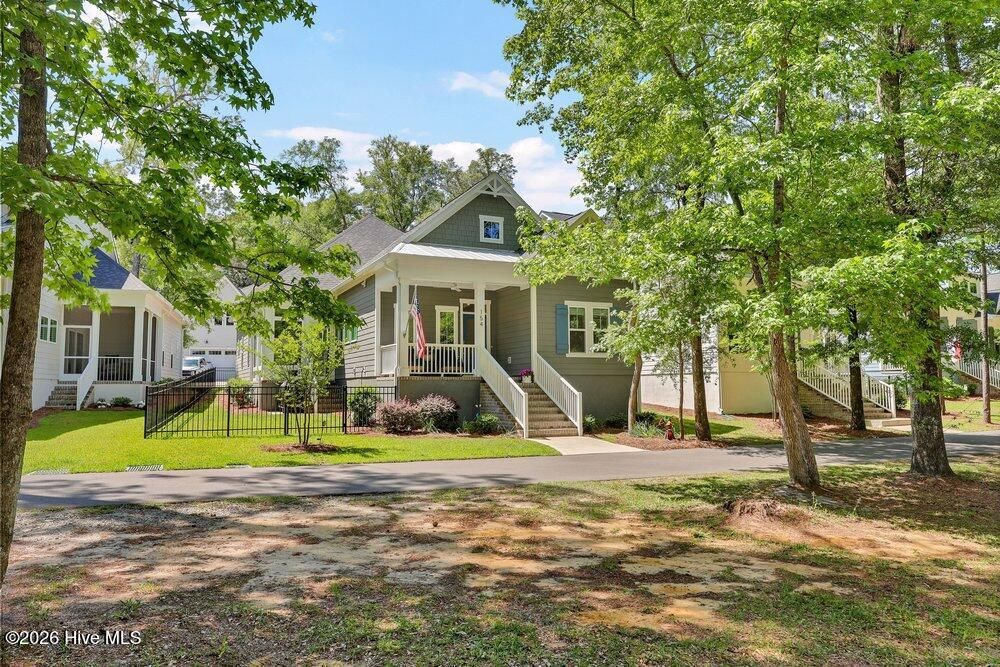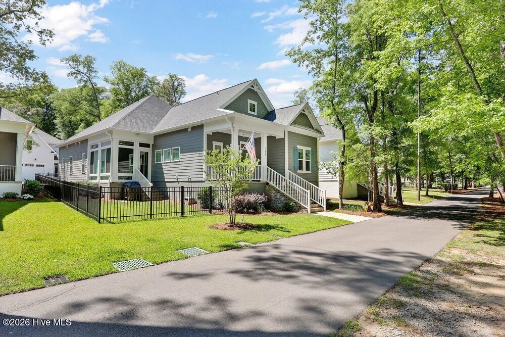 Gated riverfront living in River Bluffs, a beautifully preserved community rich with mature trees and expansive green space. This like-new Herrington Homes Sawgrass plan offers a serene park view and thoughtfully designed interiors. Highlights include a natural gas fireplace and a spacious gourmet kitchen with quartz countertops, gas range, oversized island, walk-in pantry, and beverage refrigerator. Enjoy the tiled sunroom and private fenced side yard for effortless indoor-outdoor living. The first-floor primary suite provides comfort and convenience, while the FROG with full bath offers ideal guest or flex space. Additional features include custom window treatments, walk-in attic storage, a garage with mini-split, Rinnai tankless water heater, in ground sprinklers, and whole-home generator. All appliances convey, and HOA maintained lawn & landscaping, and valet garbage service for easy living. River Bluffs amenities are exceptional--resort-style pools, fitness centers, parks, tennis and pickleball courts, a scenic riverwalk, boat ramp, kayak launch, community farm, boat & RV storage, dog park, Riverside restaurant, with marina slips available separately. Ideally located just 10 minutes to downtown Wilmington by car or boat.