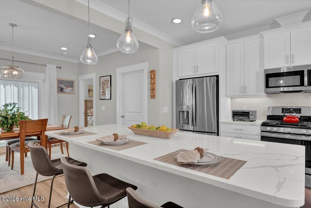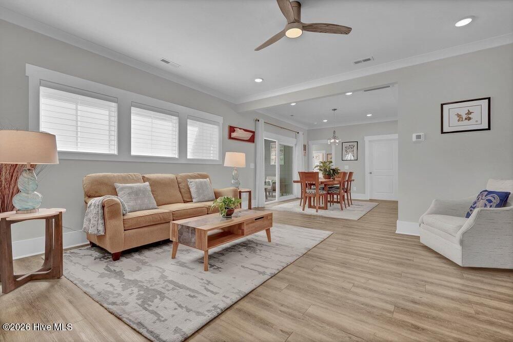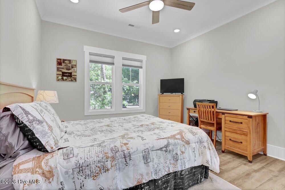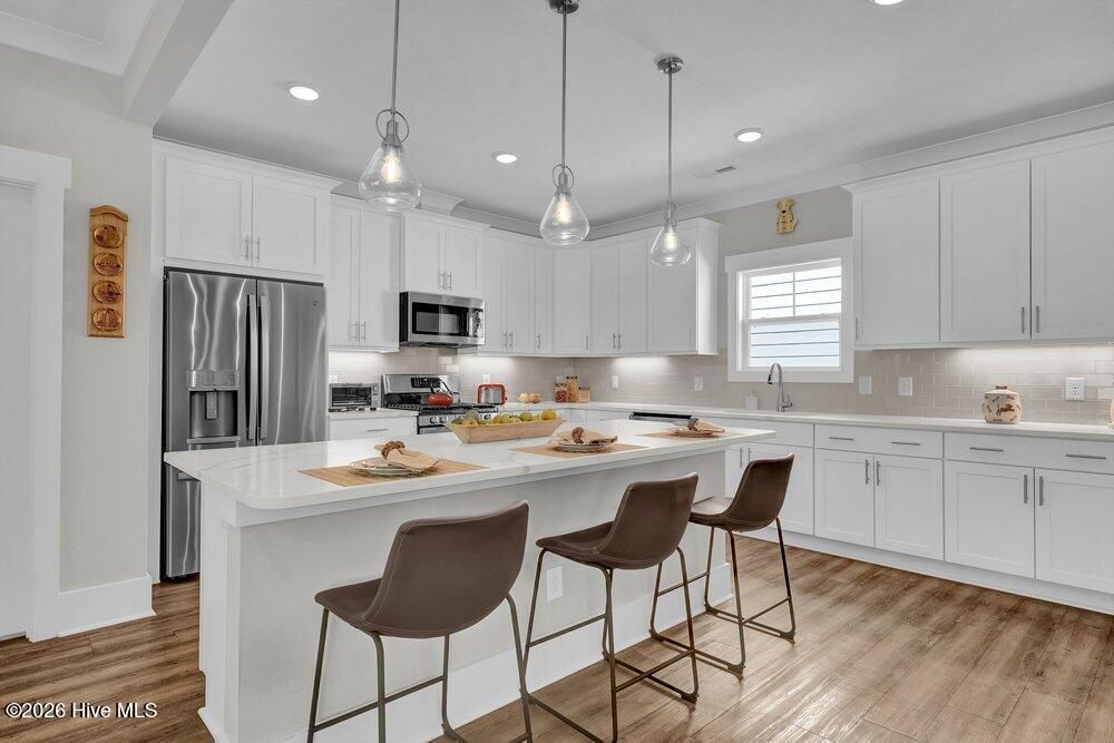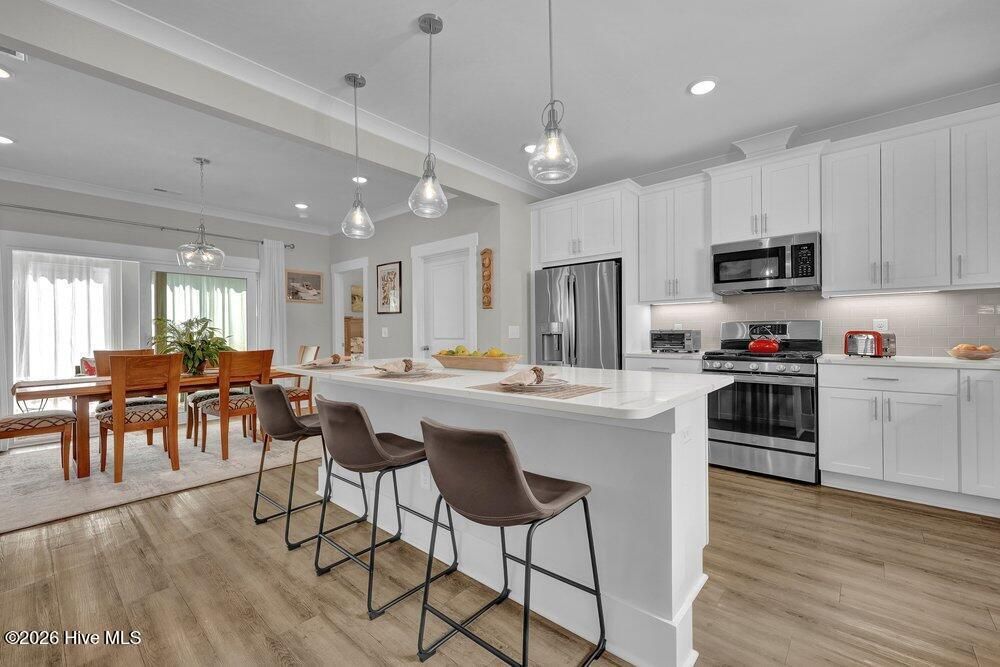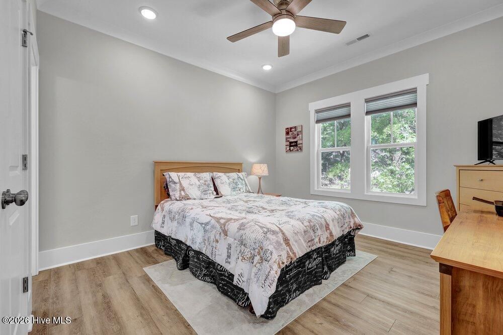 Gated riverfront living in River Bluffs, a beautifully preserved community rich with mature trees and expansive green space. This like-new Herrington Homes Sawgrass plan offers a serene park view and thoughtfully designed interiors. Highlights include a natural gas fireplace and a spacious gourmet kitchen with quartz countertops, gas range, oversized island, walk-in pantry, and beverage refrigerator. Enjoy the tiled sunroom and private fenced side yard for effortless indoor-outdoor living. The first-floor primary suite provides comfort and convenience, while the FROG with full bath offers ideal guest or flex space. Additional features include custom window treatments, walk-in attic storage, a garage with mini-split, Rinnai tankless water heater, in ground sprinklers, and whole-home generator. All appliances convey, and HOA maintained lawn & landscaping, and valet garbage service for easy living. River Bluffs amenities are exceptional--resort-style pools, fitness centers, parks, tennis and pickleball courts, a scenic riverwalk, boat ramp, kayak launch, community farm, boat & RV storage, dog park, Riverside restaurant, with marina slips available separately. Ideally located just 10 minutes to downtown Wilmington by car or boat.