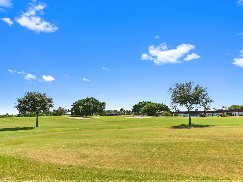 In the vibrant community of Delray Beach, FL, you'll find this exquisite first-floor unit bearing the address 154 Tuscany C. This property holds the promise of Florida living at its finest.Walk through the front entrance and you are greeted by an HD quality display of the golf course panorama outside. The enclosed lanai, an extension of your living space, offers a serene vantage point; an everyday luxury, where you can start your morning with a cup of coffee, soaking in the unobstructed view of lush fairways and verdant landscapes.