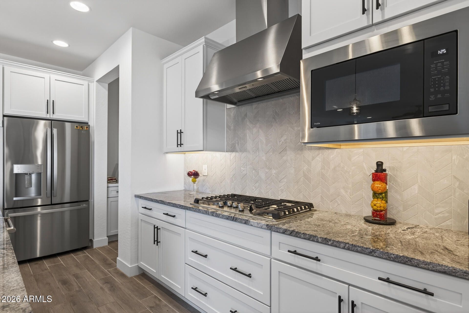 - Water Softener Owned, Gas Stub for Range, Reverse Osmosis, Built-in Microwave, Dishwasher, Disposal, Gas Cooktop
