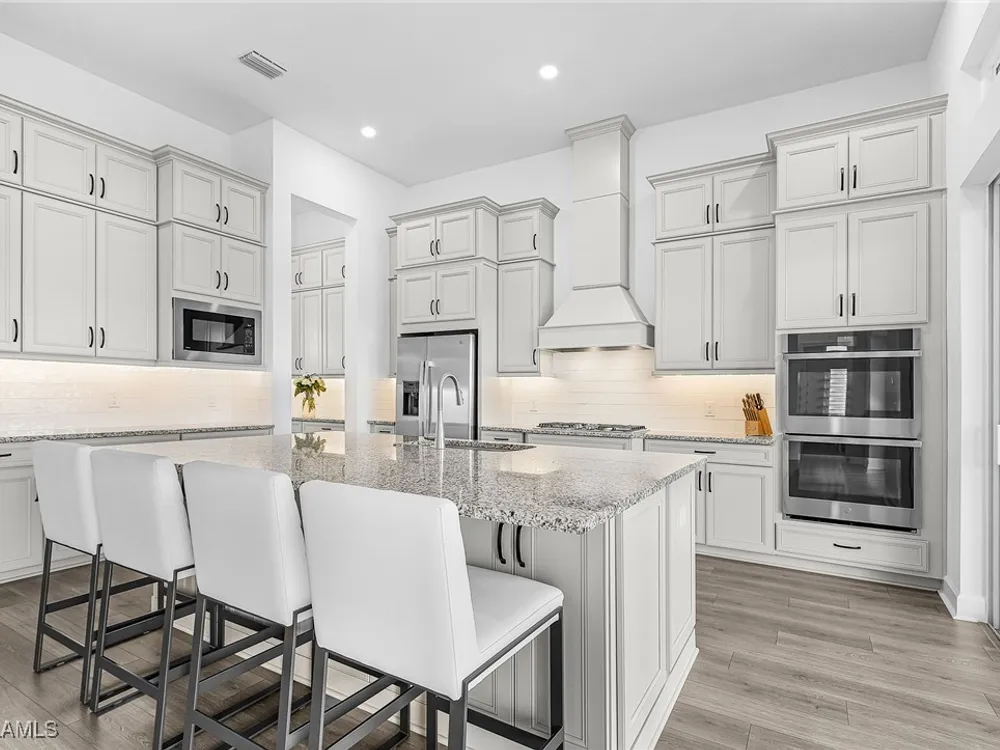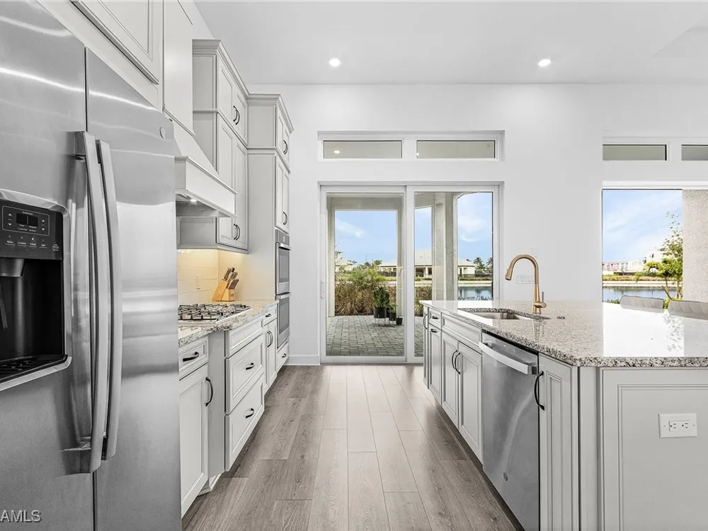 The opportunity to purchase a Lincoln model in the highly sought after community of Esplanade by the Islands on the largest lake in the community is now available! Enjoy your coffee every morning while you enjoy the sunrise over the water on your extended Lanai with plenty of space to add a pool/spa. A pool bath was built and is ready to use.The interior of the home offers 12 foot ceilings to include trays in the great room, master bedroom, dinning room and foyer. High end monogram appliances, level 5 upgraded cabinets and an open concept for the chef in the family. 3 bedrooms, large den, 3.5 bathrooms and 3 car garage. Amenities include a resort style pool, spa, wellness center, eight pickle ball courts, five tennis courts, 4 bocce courts, Bahama bar and restaurant poolside, fine dinning restaurant currently being built. A short drive to downtown Naples and Marco Island.
