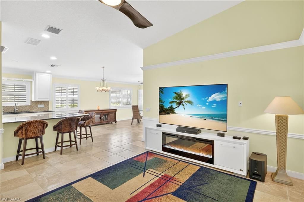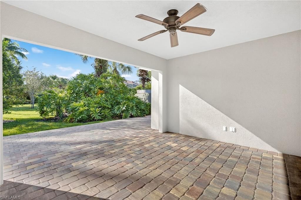 QUINTESSENTIAL QUEEN ANGEL!! With it's beautiful, private and lush backyard; immaculately kept condition, and timeless upgrades, this property is truly fitting of its "royal" Queen Angel address!! Features of this beautiful Capri villa home include wonderfully upgraded kitchen featuring level 2 granite counters, white cabinets, stainless steel appliances, and modern white cabinets; 4 person counter height breakfast bar, upscale plantation style shutters throughout, tile and luxury vinyl floors throughout (no carpet), super high soaring ceilings, popular open floorplan, lots of natural light, upgraded fans and light fixtures throughout, huge master bedroom with en-suite bath highlighted by a convenient walk-in-shower, large guest bedroom, spacious guest bath with combo tub/shower, large laundry room with tons of extra counter and storage space, negotiable furnishings and so much more!! Outdoors enjoy a brand-new extended patio overlooking a lush and private backyard, 2 car garage, large driveway, full hurricane protection with a combination of Accordion and Electric Shutters, SUNNY SE rear exposure and more!! As for the neighborhood, Village Walk is a popular gated and guarded community full of wonderful amenities! Amenities include, a lakefront Town Center with a STRONG fitness center, restaurant, spa, ice cream parlor, mail store, convenience store and more! Stay active with tennis, pickleball, basketball, bocce ball, playgrounds and a resort worthy community pool. Also, NO FLOOD ZONE and close to the area's best restaurants, shopping, dining, a straight shot to white-sand beaches, super close to the upcoming Mid-Town Bonita shopping, dining and entertainment center and so much more!! Call for your private showing today!!