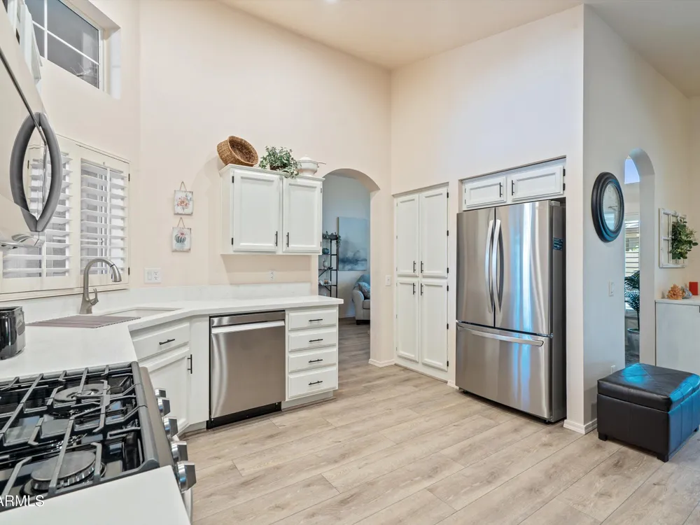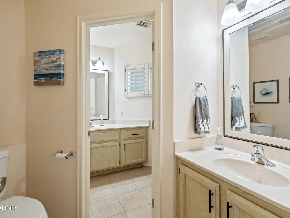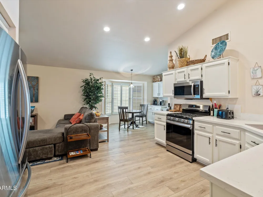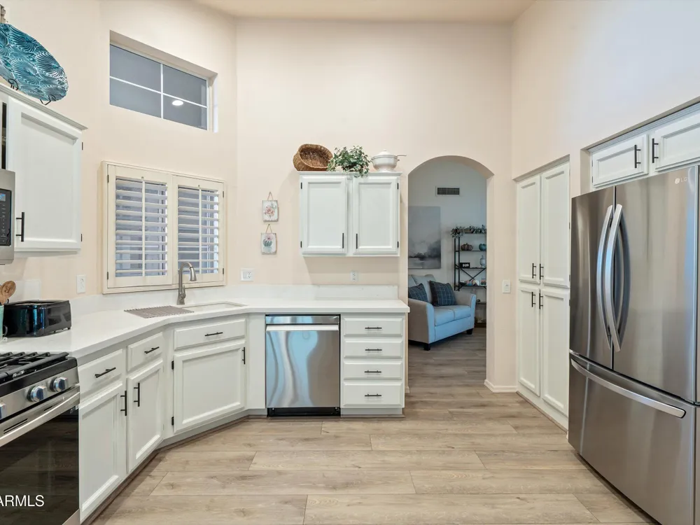 Welcome to this beautifully updated home in the vibrant PebbleCreek community, where every day feels like a getaway. This thoughtfully updated Heritage model in PebbleCreek is designed for both comfort and style, featuring two master suites, soaring vaulted ceilings, plantation shutters, and new vinyl plank flooring that flows seamlessly throughout. The remodeled kitchen shines with quartz countertops, stainless appliances, and a sunny dining nook, while the primary suite offers a spa-like retreat with a luxurious walk-in shower and custom California Closets. A spacious second suite with its own private bath creates the perfect setup for visiting family and friends, offering both comfort and privacy. What sets this home apart is its inviting outdoor living. The private backyard offers block walls for privacy, lush greenery, pet runs on both sides, and a covered patioideal for morning coffee, afternoon relaxation, or evenings spent entertaining friends. The finished garage, complete with built-in cabinetry and epoxy flooring, adds both convenience and function. All of this comes with PebbleCreek's unmatched resort-style amenities. Residents enjoy championship golf courses, indoor and outdoor pools, state-of-the-art fitness centers, pickleball and tennis courts, arts and crafts studios, and even a performing arts theater. With multiple clubhouses, restaurants, and countless clubs and activities, PebbleCreek offers a vibrant, active lifestyle that feels like vacation every day. This move-in ready home, with furniture available, is more than just a place to liveit's an opportunity to embrace the very best of Arizona living in one of the Valley's most sought-after communities.