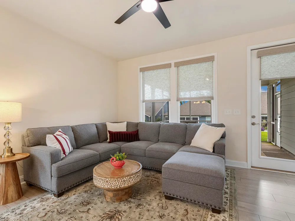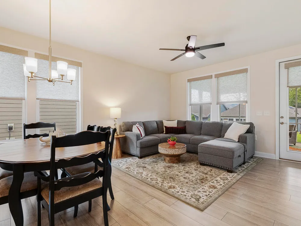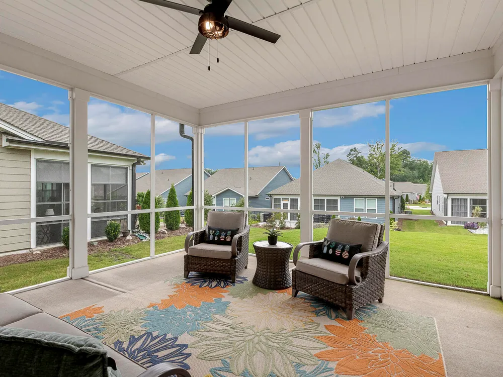 Premier Del Webb Community - Carolina Gardens Tucked away in the lively town of Fuquay-Varina, NC, Charming Gently Lived in single-level home with a modern touch. Sellers have thoughtfully upgraded this delightful residence offering comfortable living space, perfectly suited for those who value simplicity and style. The kitchen, a highlight of the home, features contemporary finishes, ample counter space, and room for all your culinary adventures.- Upgraded White Kitchen with Soft Close Doors and Roll-outs, Hard surface shelving in Pantry, Upgraded Lighting - While you Step inside find an inviting open-plan living area, bathed in natural light and ideal for both relaxation and entertaining. Upgraded 5inch Baseboards, Added EVP in Family Room, 2inch Faux Wood Blinds The exterior is equally impressive, with a spacious lot size of .14 acres, offering plenty of space for outdoor activities, low maintenance ColorPlus Hardieplank, Upgraded Extended Screen Porch - Yard is ready for gardening, or simply soaking up the sun. Enjoy strolls around the neighborhood and take advantage of the state-of-the-art 20,000 Sq Ft of Resort Style Amenities -making it easy to blend leisure with lifestyle. Whether you're looking for a cozy retreat or a place to entertain, Embrace the modern, casual vibe of this Fuquay-Varina gem, and make it your own! less than 10 minutes to Shops - Grocery stores - restaurants