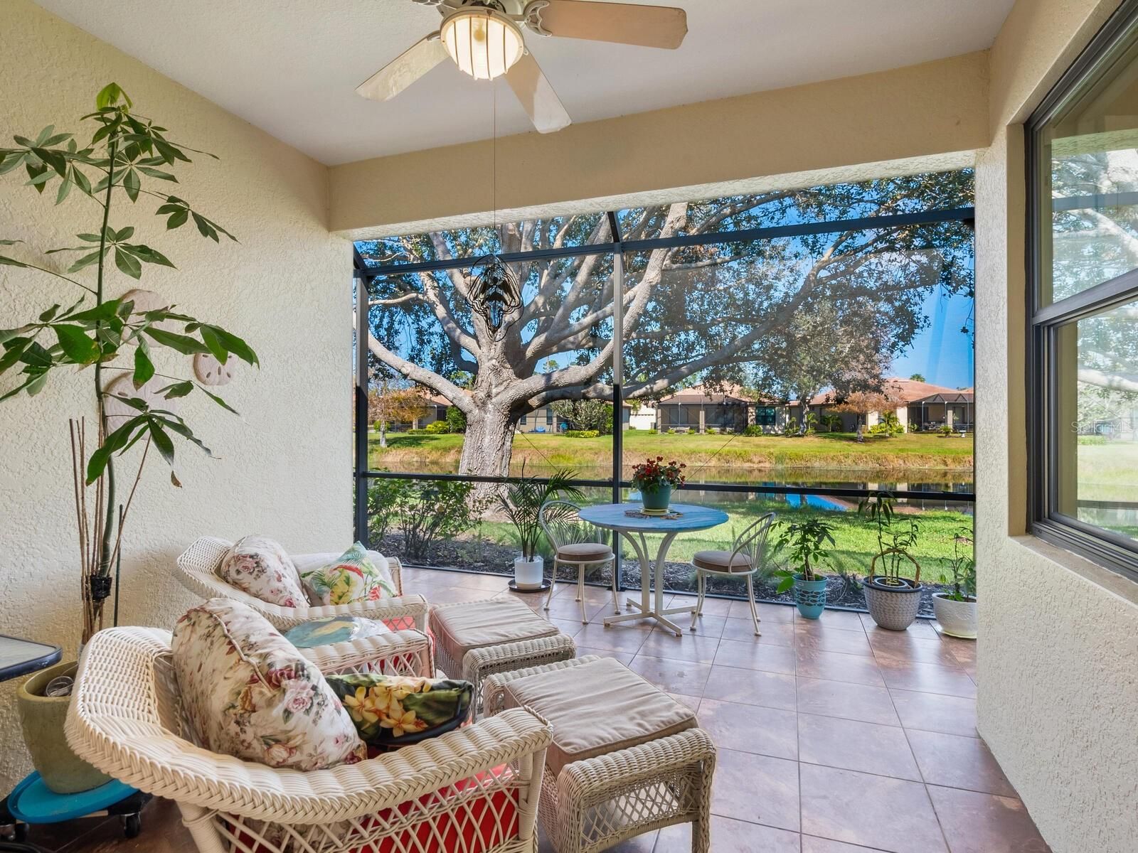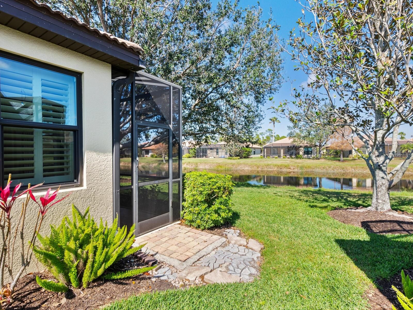SPACIOUS Giovanni floor plan! Enjoy LAKE VIEWS from this beautifully upgraded paired-villa in the premier 55+ community of Venetian Falls! Just minutes from sunny beaches, shopping, dining, and Venice’s historic district, this home offers both comfort and peace of mind with so many high-end features. Hurricane-rated, insulated ENERGY STAR IMPACT WINDOWS, 20” diagonal PORCELAIN TILE and wood laminate floors, a SCREENED AND TILED FRONT ENTRY, and an EXTENDED LANAI create a perfect blend of elegance and functionality. The beveled glass front door welcomes you with abundant natural light. High 9’ ceilings with CROWN MOLDING, PLANTATION SHUTTERS, ENHANCED BASEBOARDS, SOLAR TUBES in the living room and primary bathroom, FRENCH DOORS to the den for added privacy, an elegant TRAY CEILING in the living room, and a CENTRAL VACUUM system elevate the home’s appeal. The kitchen is both stylish and functional, featuring durable QUARTZ countertops, maple-finish cabinetry with trim and under-cabinet lighting, a walk-in pantry, and GE Profile stainless steel appliances, including a CONVECTION oven with an INDUCTION cooktop. A charming dinette, surrounded by windows, provides a bright and inviting space to enjoy your morning coffee with a view. The open, split floor plan provides flexibility in arranging the common areas to suit your preferences. The den can effortlessly be transformed into a third bedroom if desired. Additional highlights include an expanded paver walkway, in-wall pest control, leaf guard gutter system, and lush landscaping. For storm protection, easy-to-install HURRICANE STORM SHIELDS are included for the front entry and lanai, plus a reinforced garage door. Step outside to your private outdoor living area, perfect for grilling, dining, and relaxing while taking in serene lake views and the frequent visits from herons and other birds. Venetian Falls offers outstanding amenities, including a resort-style clubhouse with a heated lap pool and spa, a resistance-walking pool, a state-of-the-art fitness center, a billiard room, bocce courts, a full-time activity director, and on-site management. The reasonable HOA fee covers lawn maintenance, irrigation, roof pressure washing, exterior painting, and basic cable TV and internet. Don’t miss this opportunity to enjoy resort-style living in this beautiful home!
