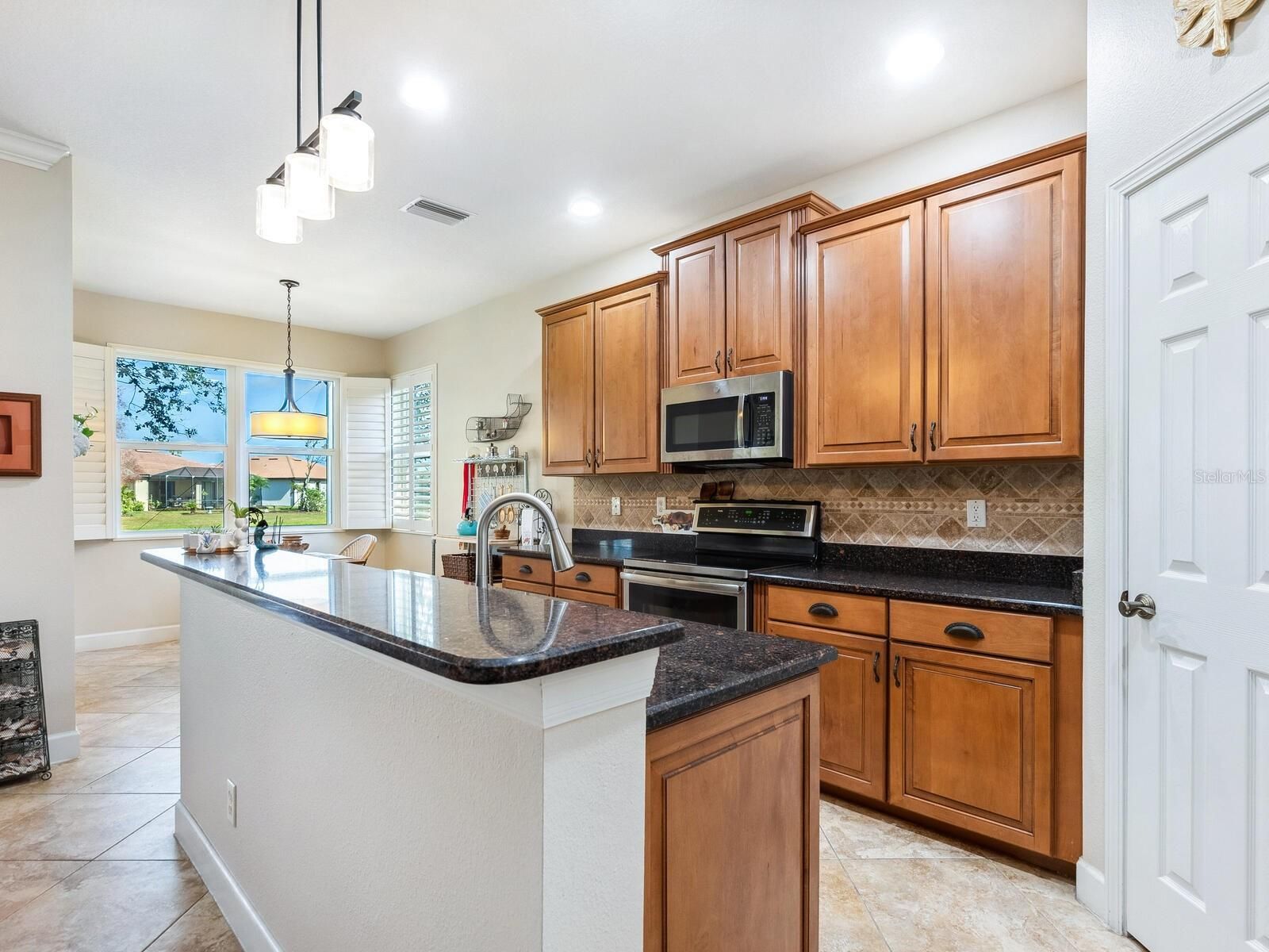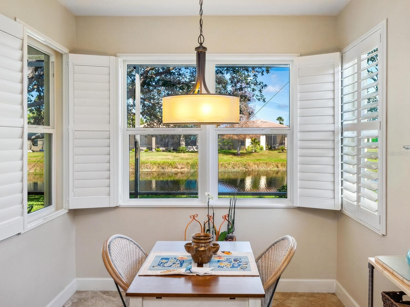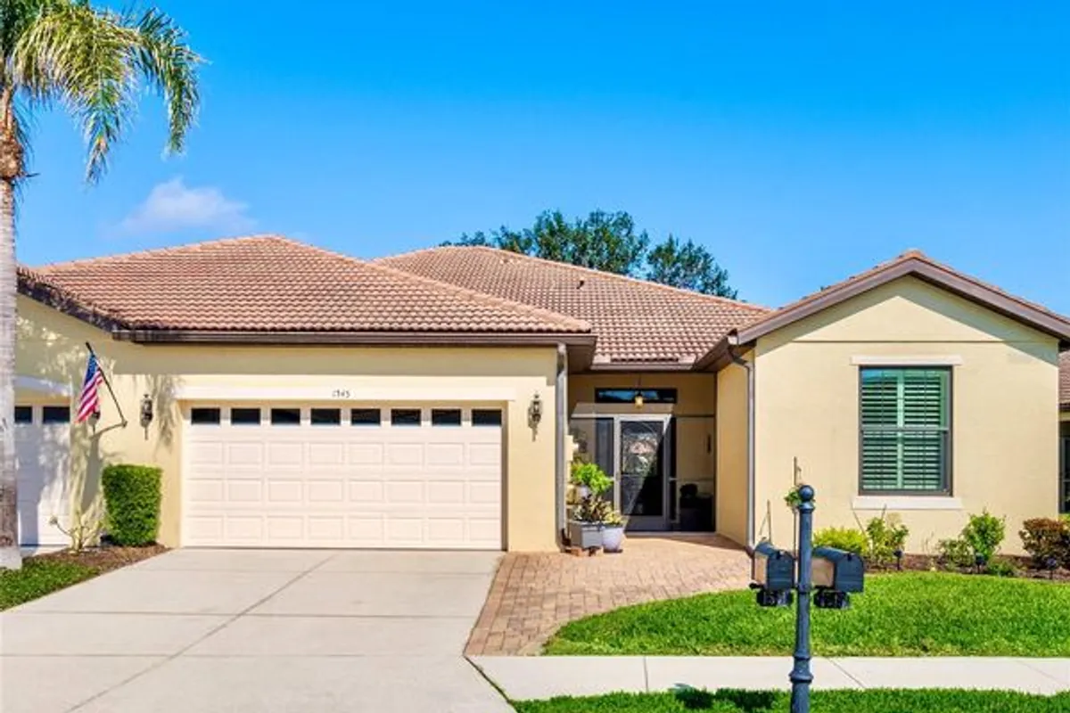 This beautifully upgraded Giovanni paired-villa in the premier 55+ community of Venetian Falls, is just minutes from sunny beaches, shopping, dining, and Venice’s historic district. This home offers both comfort and peace of mind with so many high-end features. HURRICANE-RATED, iNSULATED ENERGY STAR IMPACT WINDOWS, 20” PORCELAIN TILE and WOOD LAMINATE floors, a SCREENED AND TILED FRONT ENTRY, and an EXTENDED LANAI create a perfect blend of elegance and functionality. The BEVELED-GLASS FRONT DOOR welcomes you with abundant natural light. High 9’ ceilings with CROWN MOLDING, PLANTATION SHUTTERS, ENHANCED BASEBOARDS, SOLAR TUBES in the living room and primary bathroom, FRENCH DOORS to the DEN for added privacy, an elegant TRAY CEILING in the living room, and a CENTRAL VACUUM system elevate the home’s appeal. The kitchen is both stylish and functional, featuring durable QUARTZ COUNTERTOPS, MAPLE-FINISH CABINETRY with trim and under-cabinet lighting, a WALK-IN PANTRY, and GE Profile stainless steel appliances, including a CONVECTION oven with an INDUCTION cooktop. A charming DINETTE, surrounded by windows, provides a bright and inviting space to enjoy your morning coffee with a view. The open, split floor plan provides flexibility in arranging the common areas to suit your preferences. Additional highlights include an EXPANDED PAVER WALKWAY, IN-WALL PEST CONTROL, LEAF GUARD GUTTER SYSTEM, and lush landscaping. For storm protection, easy-to-install HURRICANE STORM SHIELDS are included for the front entry and lanai, plus a REINFORCED GARAGE DOOR. Step outside to your private outdoor living area, perfect for grilling, dining, and relaxing while taking in serene lake views and the frequent visits from herons and other birds. Venetian Falls offers outstanding amenities, including a resort-style clubhouse with a heated lap pool and spa, a resistance-walking pool, a state-of-the-art fitness center, a billiard room, bocce courts, a full-time activity director, and on-site management. The reasonable HOA fee covers lawn maintenance, irrigation, roof pressure washing, exterior painting, and basic cable TV and internet. Don’t miss this opportunity to enjoy resort-style living in this beautiful home!