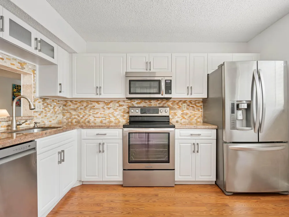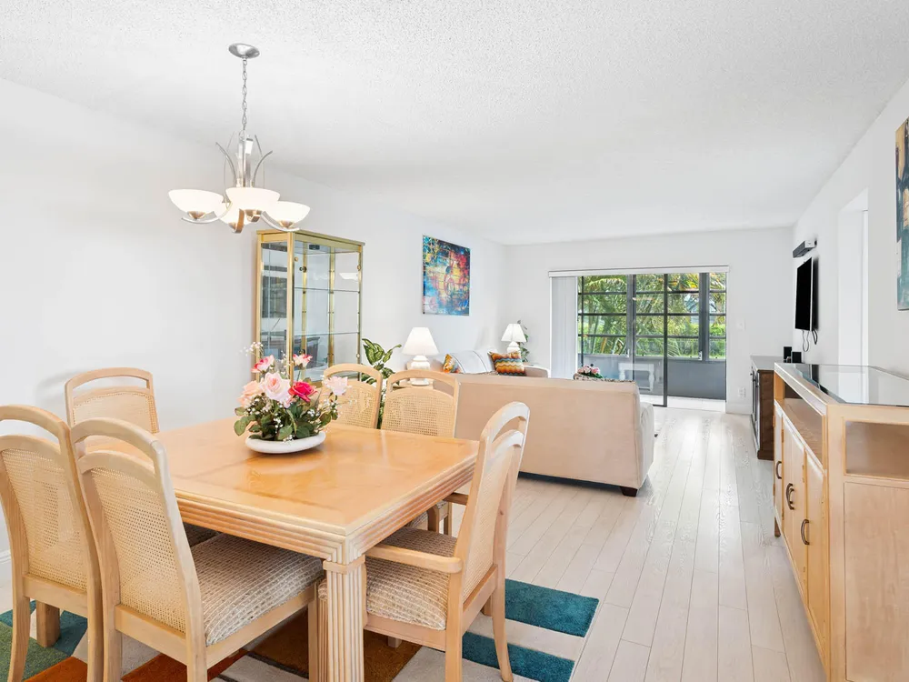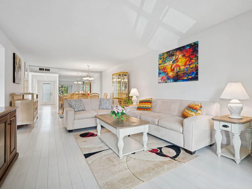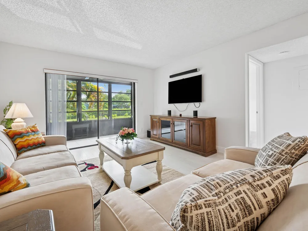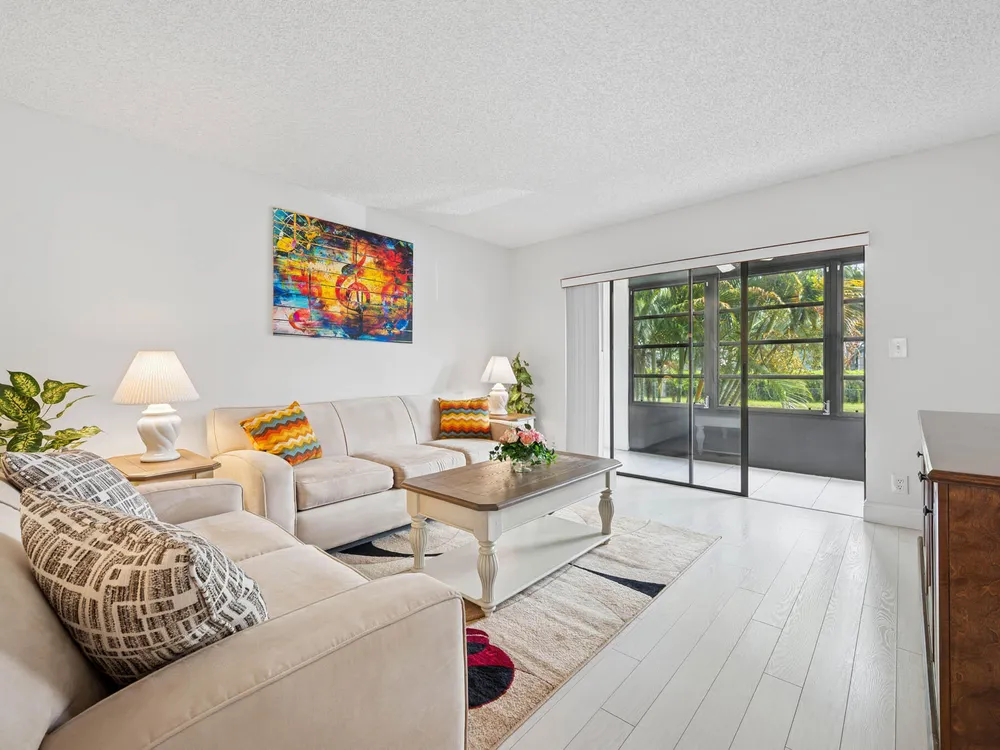 LAKES OF DELRAY! REMODELED 2 bedroom 2 bathroom home with Enclosed Patio. 2nd Floor Condo End Unit, Gardens view, and the ELECTRONIC LIFT next to the unit. Fully Updated. New Kitchen with Granite Countertop & Stainless Steel Appliances. Updated Bathrooms, Hardwood Floor, luxurious Carpet in Master Bedroom. This Open floor concept. home is Semi Furnished with Living ,Dinning Room, & Guest Room furniture, Just bring your Bedroom Set. Building features 4 units, New Roof installed July 2024. No Pending ASSESSMENTS. Community Features RESORT STYLE Living with a Large Clubhouse with State of the Art Theater for scheduled Live Performances, Library , Gym, and Game rooms. Pools, Sauna, Tennis Court, Golf, Pickle Ball, Bar B Que Grill , Biking, Bus Service & MORE Luxury at its best AWAITS.