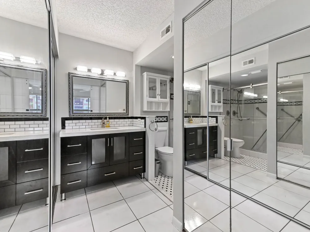 - Cathedral Ceiling(s), Custom Mirrors, Entry Level Living Area, Pantry, Split Bedrooms, High Ceilings, Walk-In Closet(s), Breakfast Area, Living/Dining Room, Eat-in Kitchen, Double Hung Metal Window(s), Sliding Window(s), Window Vertical(s), Separate Shower
