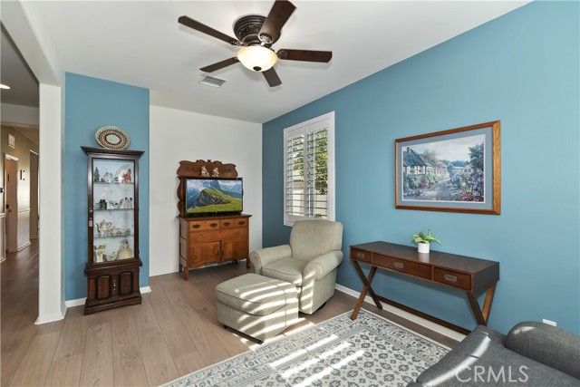 - Ceiling Fan(s), Open Floorplan, Pantry, Den, Living Room, Main Level Primary, Primary Suite, Walk-In Closet(s)
