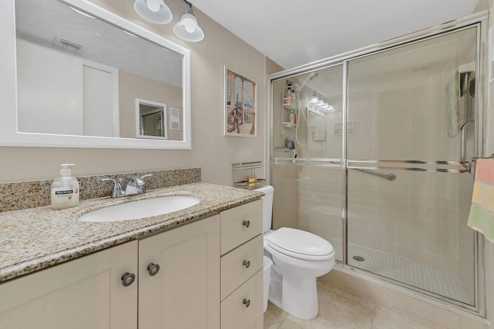 Welcome to this beautifully updated first-floor condo in the desirable Lakes of Delray, a vibrant 55+ community in Delray Beach. This 2-bedroom, 2-bath residence offers comfort, convenience, and a stunning lake view. The primary suite features a spacious walk-in closet and an en-suite bath, while both bathrooms have been tastefully updated. The modern kitchen is complete with granite countertops, stainless steel appliances, and ample storage. A screened Florida room provides the perfect spot to relax and enjoy serene lakefront views. Additional highlights include an in-unit washer and dryer, air conditioning (2011), and hot water heater (2014).