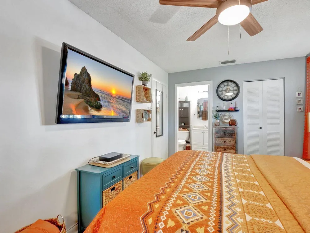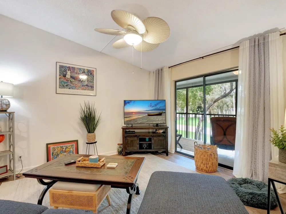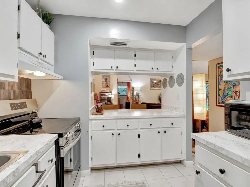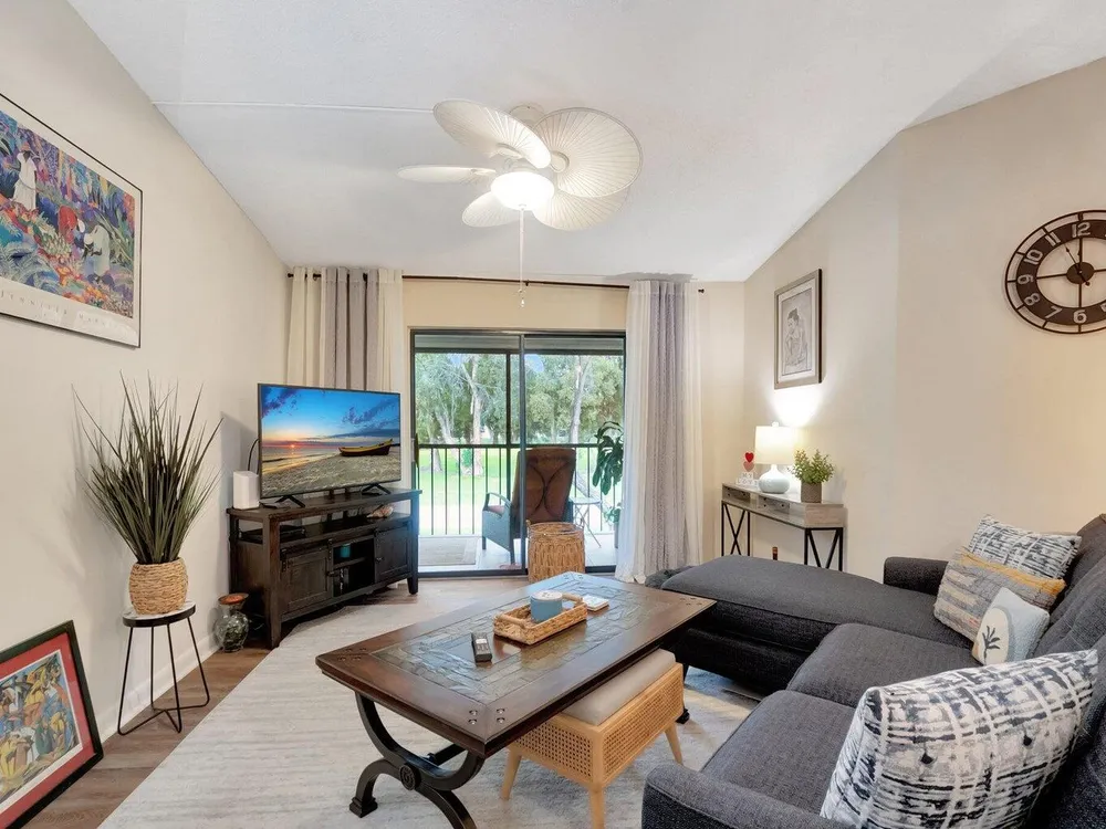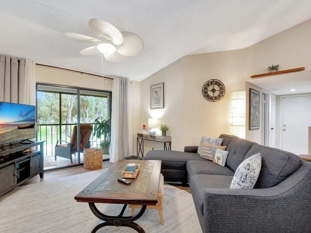 Welcome to this inviting waterfront condo situated in the vibrant, active adult community of Lakes of Delray. Perfectly located adjacent to the clubhouse and main pool, this property is ideal for those seeking an engaging lifestyle in sunny Florida. The condo's impressive architectural features include vaulted ceilings and large patio doors that lend an abundance of natural light, creating a bright and airy atmosphere throughout.This tasteful residence showcases a well-designed split-bedroom floor plan, ensuring privacy and convenience. Ample storage is provided through spacious closets in each bedroom, accommodating all your organizational needs. Both bathrooms have been thoughtfully updated, enhancing functionality and aesthetics.