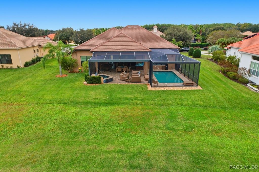 Stunning Custom Home with Golf Course Views in Bellamy Ridge Built in 2019, this beautifully customized residence is nestled within the prestigious gated community of Bellamy Ridge and offers an expansive 180-degree view of the Skyview Golf Course, perfectly framed by 16-foot recessed sliding glass doors. Designed with luxury and energy efficiency in mind, the home features: • Cambria Quartz countertops and upgraded kitchen cabinetry with elegant glass fronts • Plantation shutters throughout • Foam insulation injected into cinder block walls • Reflective radiant barrier beneath the tiled roof • Whole-house water filtration system The chef’s kitchen is a dream come true, boasting: • Oversized quartz island • Black stainless-steel appliances • Gas range • Large walk-in pantry • LED strip lighting for added ambiance Step outside to a screened lanai that’s perfect for entertaining, complete with: • Natural gas fire pit • Heated hot tub • Heated 12' x 24' pool The spacious master suite includes: • Two walk-in closets • Luxurious bath with dual vanities, large walk-in shower, and soaking tub The oversized three-car garage is both functional and stylish, featuring: • Durable polyaspartic floor coating • Insulated garage doors and attic • Mitsubishi mini-split system for climate control Curb appeal is unmatched with mature landscaping and illuminated exterior lighting that Regus virtual welcomes you home. Come experience the Terra Vista lifestyle and enjoy the exceptional amenities this home and community have to offer. Schedule your private showing today!