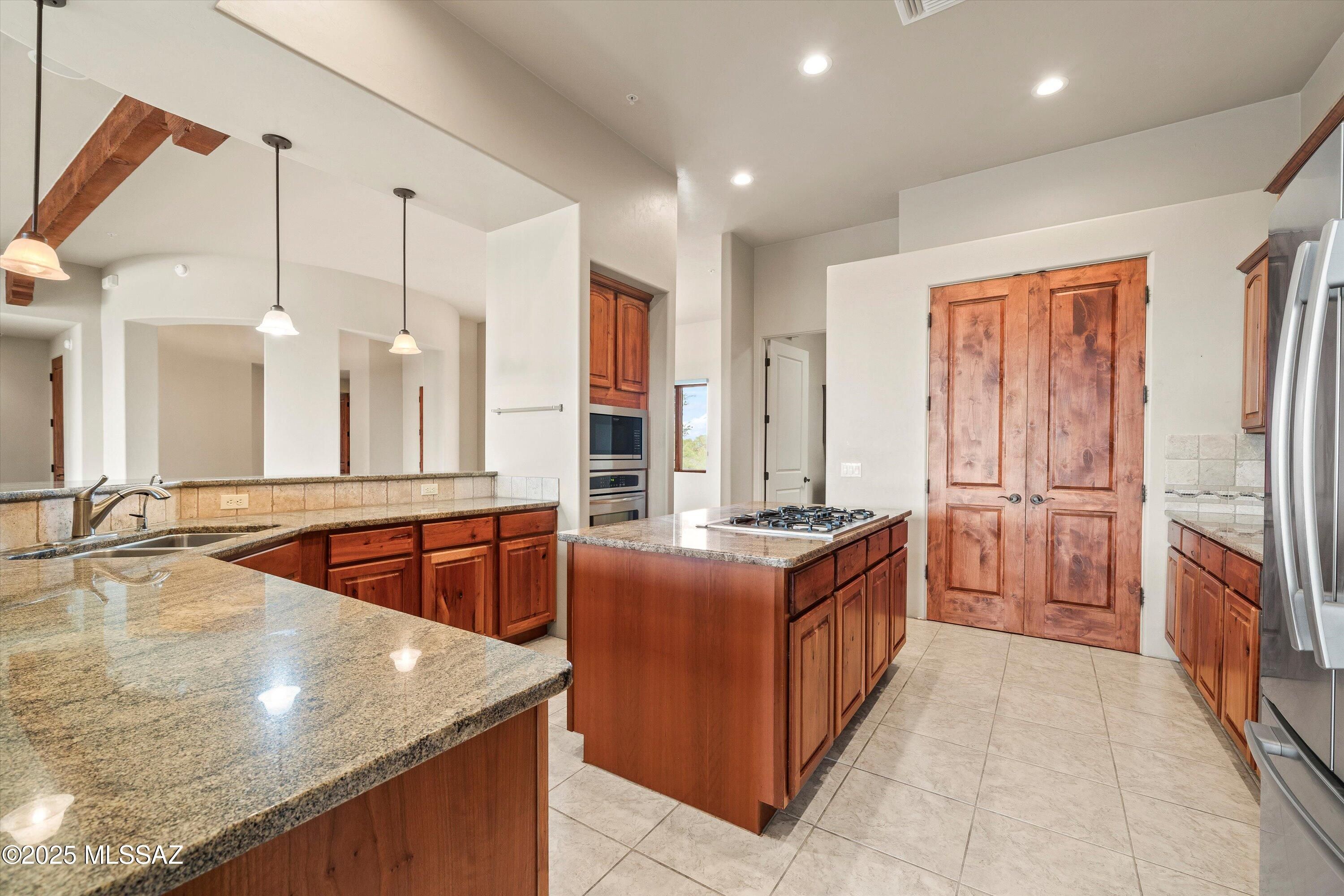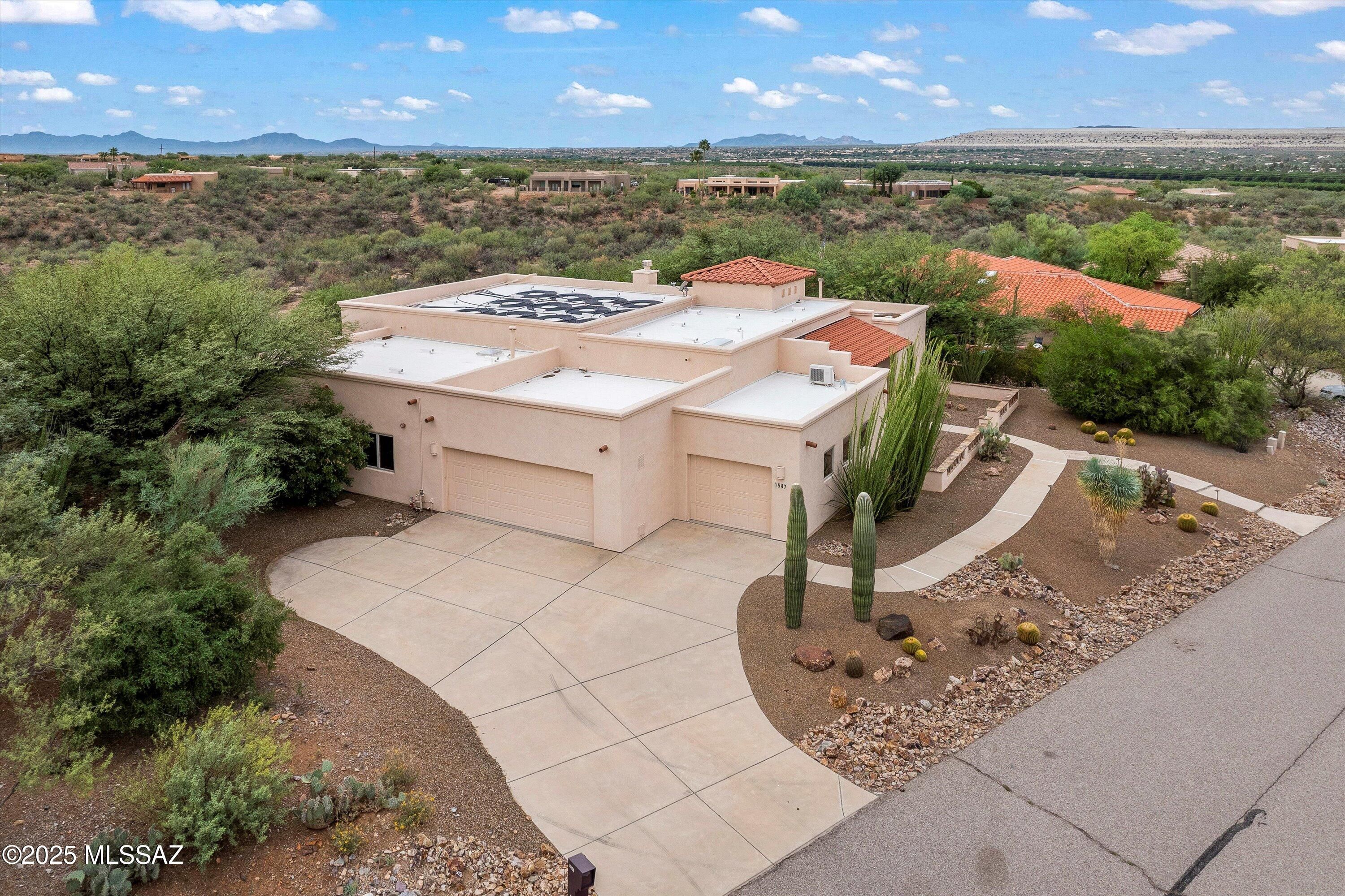 Stunning 3-bedroom + den home w magnificent panoramic mountain views. This home has thoughtful upgrades throughout. The spacious floor plan features a beam-accented ceiling, fireplace, and neutral tile, interior was painted in Jan 2026, alder doors and abundant storage. The chef's kitchen is complete with electric oven, gas cooktop, slide-out cabinetry, and reverse osmosis. All bedrooms offer a walk-in closets. Outdoors, enjoy true resort-style living with a lap pool, built-in BBQ, and large covered patio. The 3rd-car garage can be used as studio or workshop with its own mini-split for year-round comfort. All 3 garage bays are extended in length and width. This home is perfect for those seeking both luxury, versatility with breathtaking views as the backdrop.