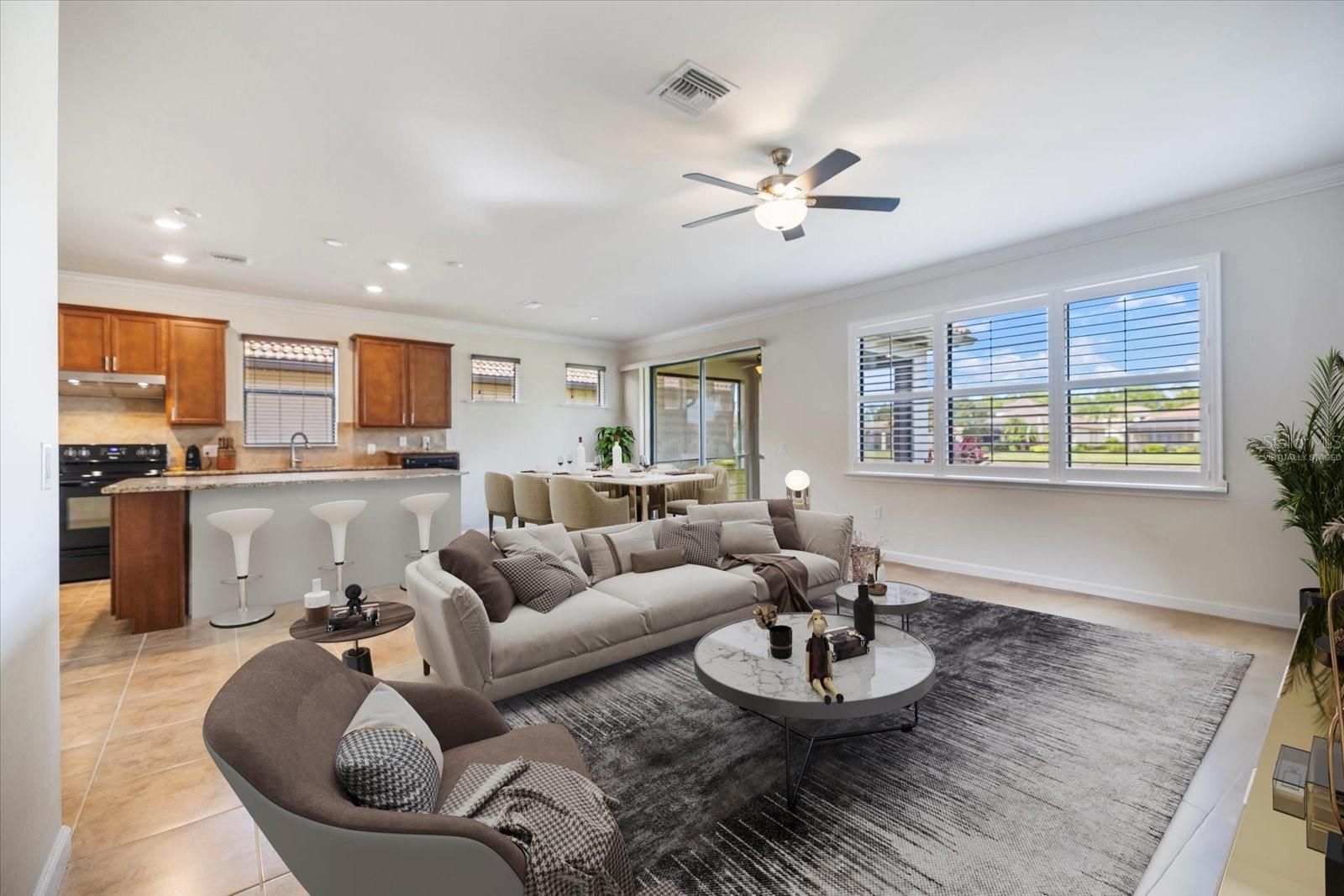 - Eat-in Kitchen, Kitchen/Family Room Combo, Living/Dining Room, Open Floorplan, Split Bedrooms, Stone Counters, Walk-In Closet(s)