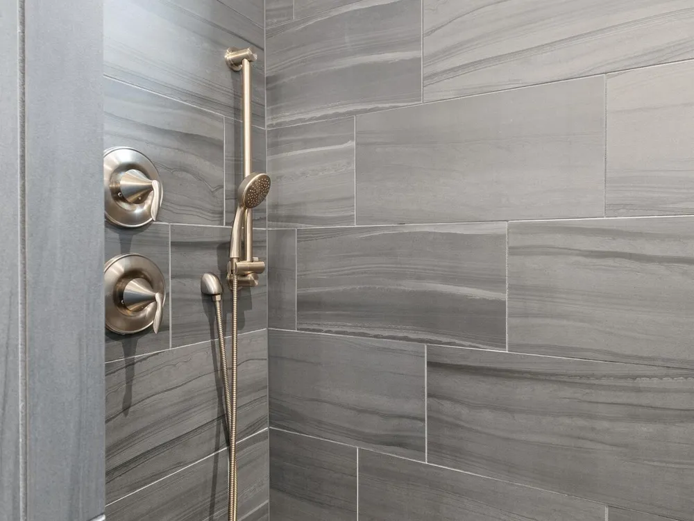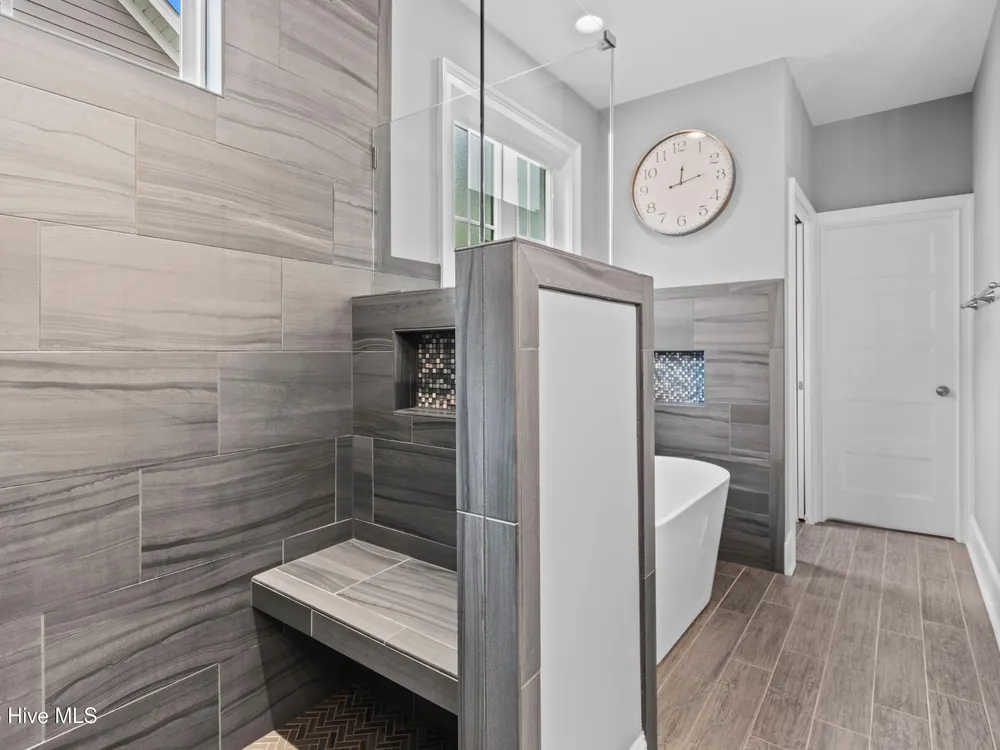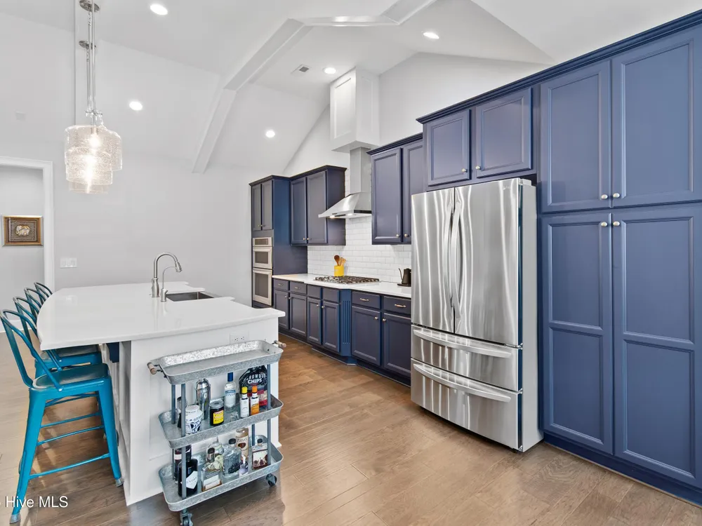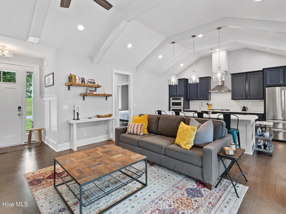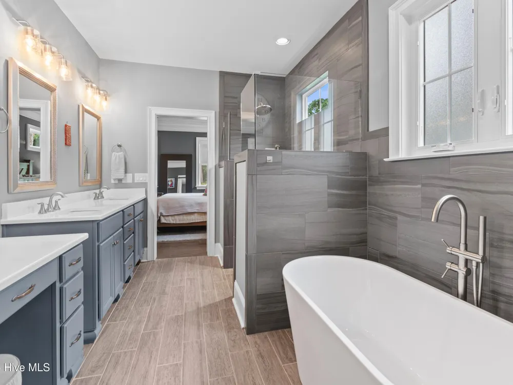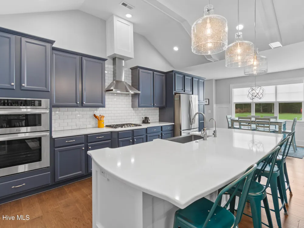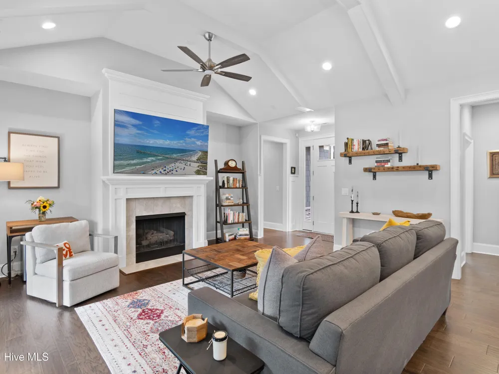 - Blinds/Shades, Solid Surface, Walk-In Closet(s), Walk-in Shower, Vaulted Ceiling(s), Tray Ceiling(s), Sound System, Pantry, Entrance Foyer, Master Downstairs, Kitchen Island, High Ceilings, Gas Log, Ceiling Fan(s)