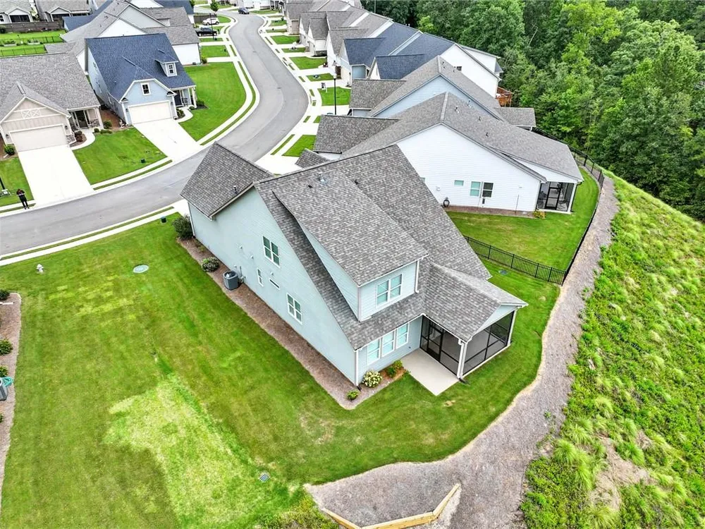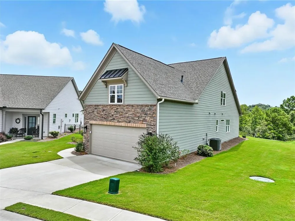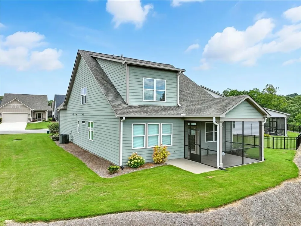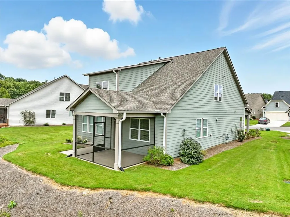 Take a look at this immaculate home in this beautiful 55+ community. This home has extra privacy with the back yard overlooking the lake. Relax on the back screened-in porch and enjoy all the nature behind you. Spacious and bright, this home is better than new, as it has some great upgrades. Featuring 3 bedrooms, plus a finished loft area, this home has ample space for guests. The master bedroom is on the main level, while the upstairs has 2 additional bedrooms and a loft area. This kitchen is a stand-out with a grand island with quartz countertops and ample storage. The laundry room on the main level, features a laundry sink and multiple cabinets for storage. The flooring is beautiful LVP than runs throughout the home. Grandview at Gateway offers so many amenities that include a pool, tennis courts, pickleball, a clubhouse with a fitness center and yoga room, dog park, walking trails, lake for fishing and so many more. Come and make beautiful North Georgia your home with so many activities the area offers! Easy access right off Hwy. 515 makes for an easy trip to Atlanta and surrounding areas. Conveniently located just minutes from Piedmont Mountainside Hospital and many doctor's offices. HOA fee covers lawn, trash, cable and high speed internet. Sellers are leaving television above the fireplace, washer and dryer, and refrigerator.