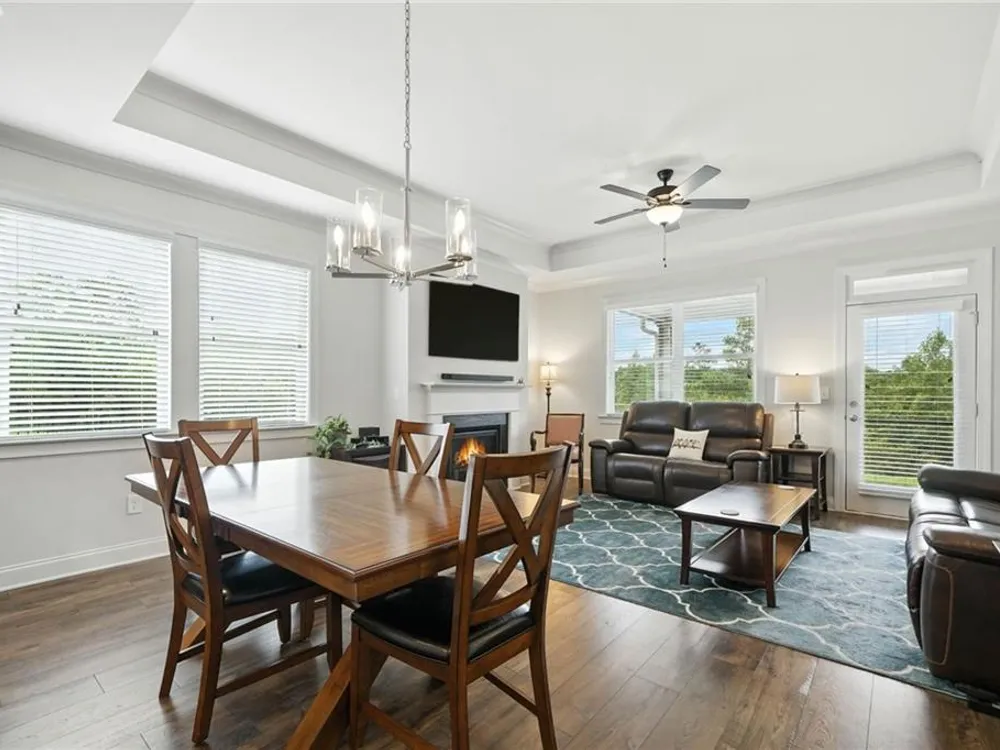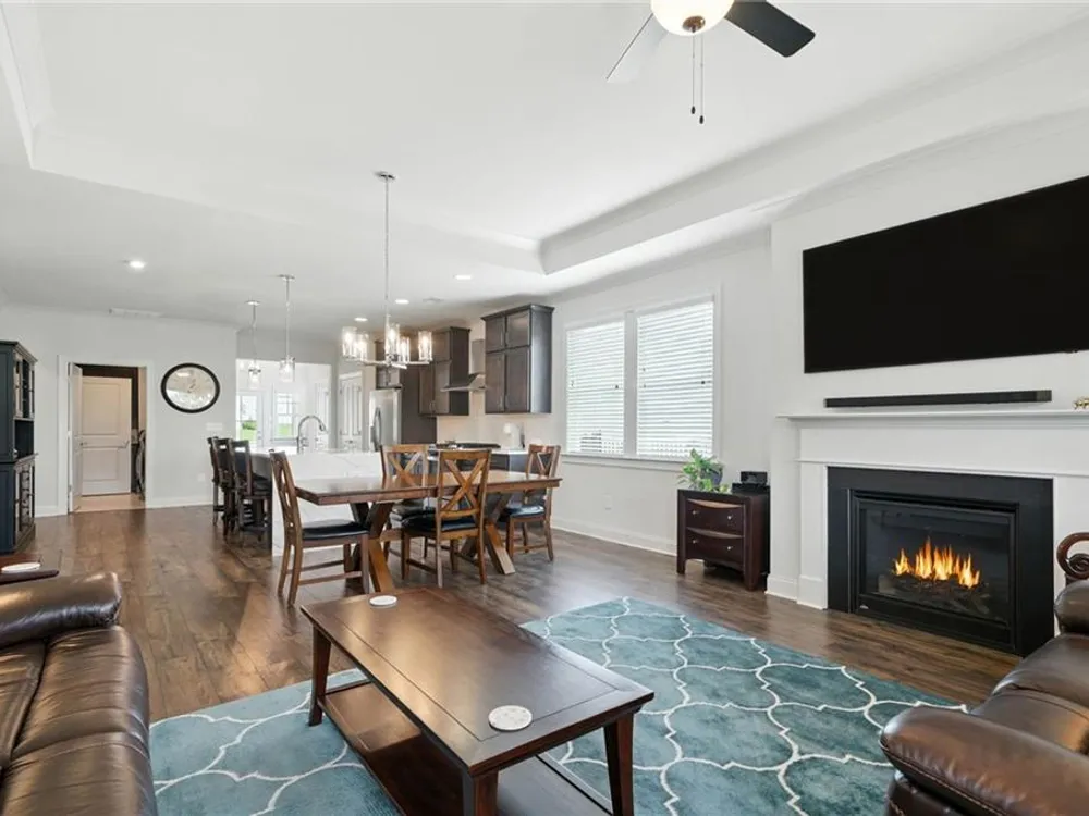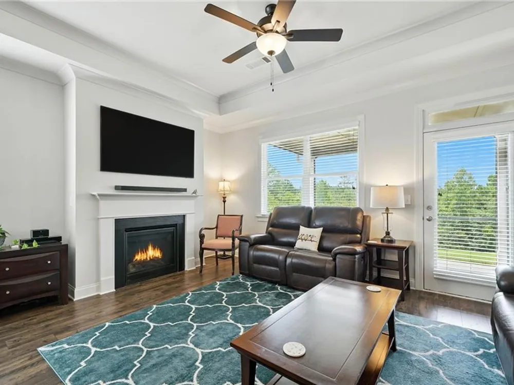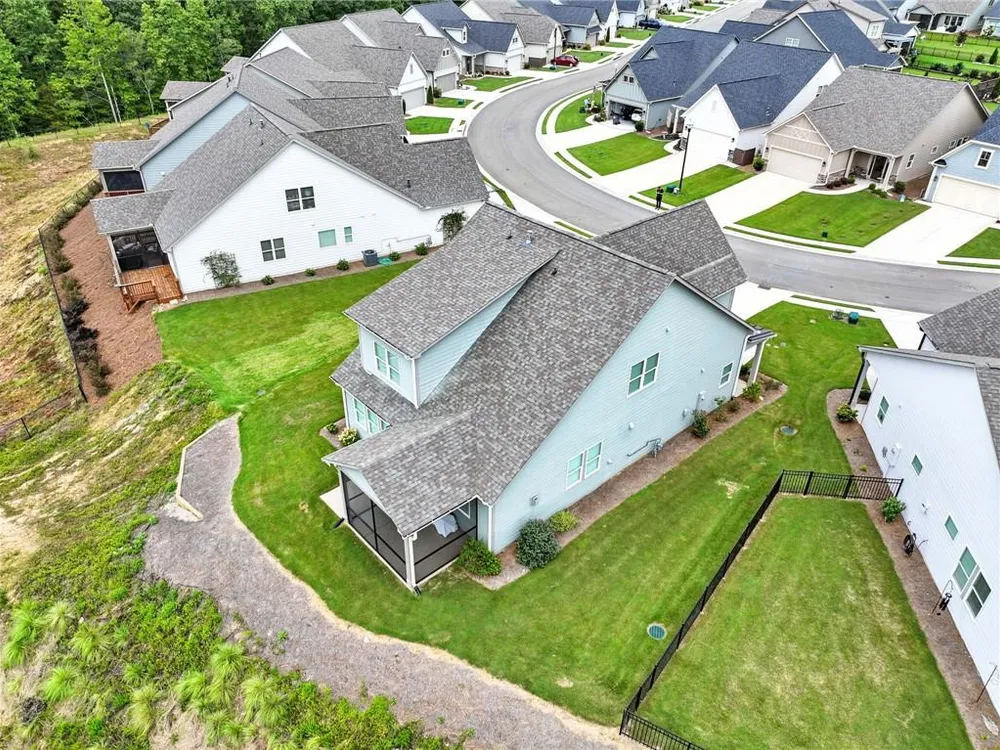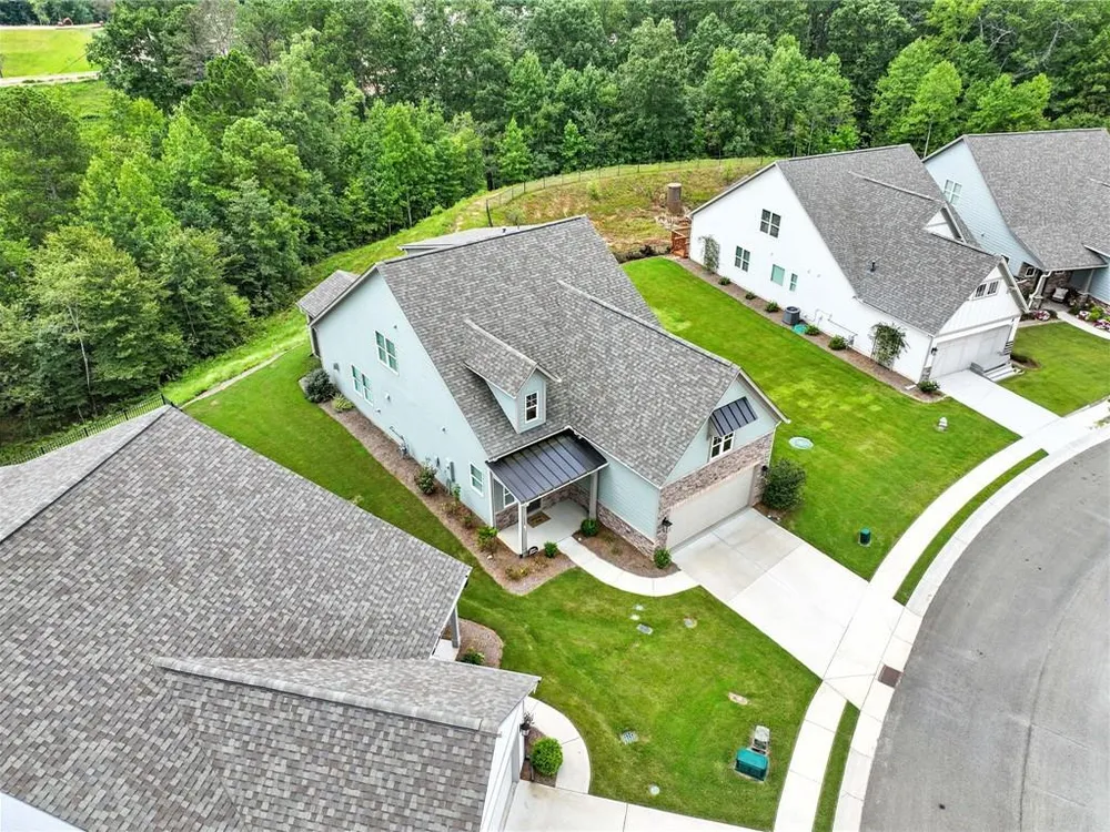Take a look at this immaculate home in this beautiful 55+ community. This home has extra privacy with the back yard overlooking the lake. Relax on the back screened-in porch and enjoy all the nature behind you. Spacious and bright, this home is better than new, as it has some great upgrades. Featuring 3 bedrooms, plus a finished loft area, this home has ample space for guests. The master bedroom is on the main level, while the upstairs has 2 additional bedrooms and a loft area. This kitchen is a stand-out with a grand island with quartz countertops and ample storage. The laundry room on the main level, features a laundry sink and multiple cabinets for storage. The flooring is beautiful LVP than runs throughout the home. Grandview at Gateway offers so many amenities that include a pool, tennis courts, pickleball, a clubhouse with a fitness center and yoga room, dog park, walking trails, lake for fishing and so many more. Come and make beautiful North Georgia your home with so many activities the area offers! Easy access right off Hwy. 515 makes for an easy trip to Atlanta and surrounding areas. Conveniently located just minutes from Piedmont Mountainside Hospital and many doctor's offices. HOA fee covers lawn, trash, cable and high speed internet. Sellers are leaving television above the fireplace, washer and dryer, and refrigerator.