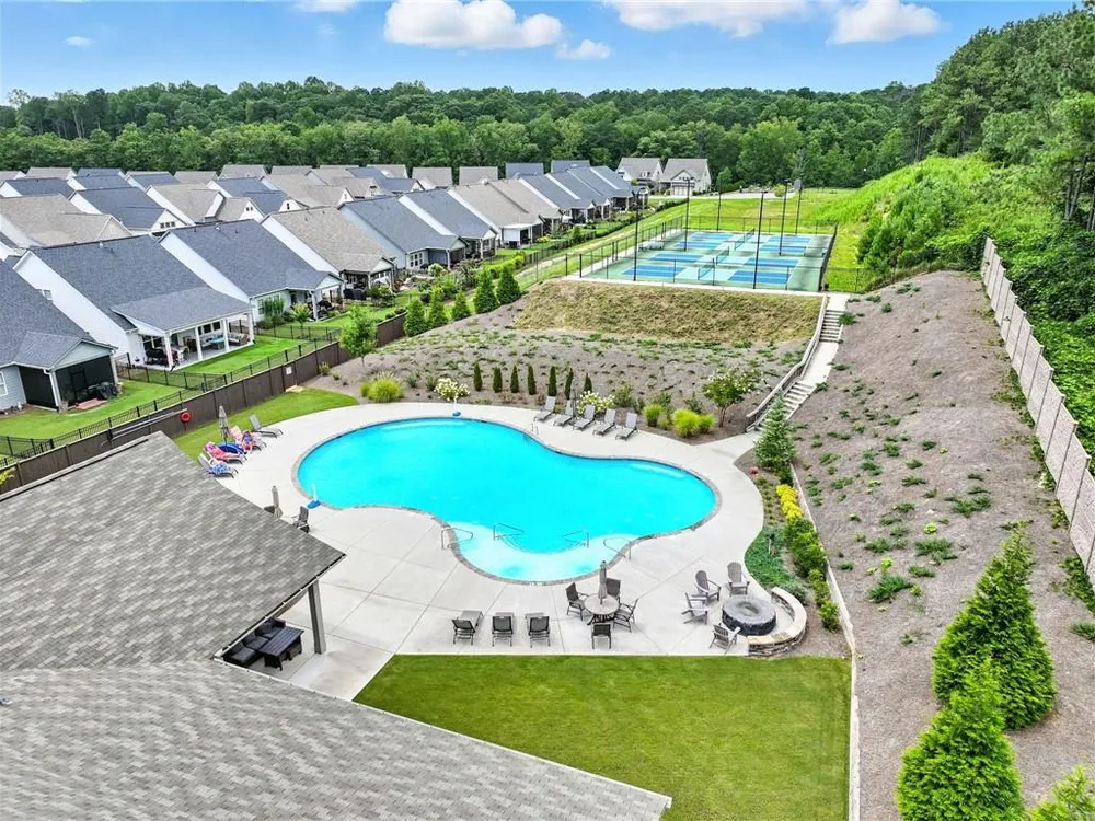 - Clubhouse, Dog Park, Fitness Center, Home Owners Association, Lake, Pickleball, Pool, Sidewalks, Tennis Court(s)