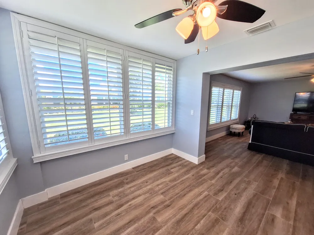 - Walk-In Closet(s), Home Office, Kitchen/Dining Combo, Blinds, Storm Window(s), Impact Glass, Primary Downstairs