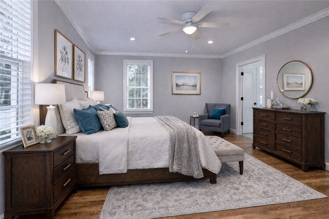 - Attic Access, Beamed Ceilings, Tray Ceiling(s), Ceiling Fan(s), Dining Area, Separate/Formal Dining Room, Double Vanity, Granite Counters, High Ceilings, Kitchen Island, Loft, Pantry, Pull Down Attic Stairs, Recessed Lighting, Walk-In Closet(s)