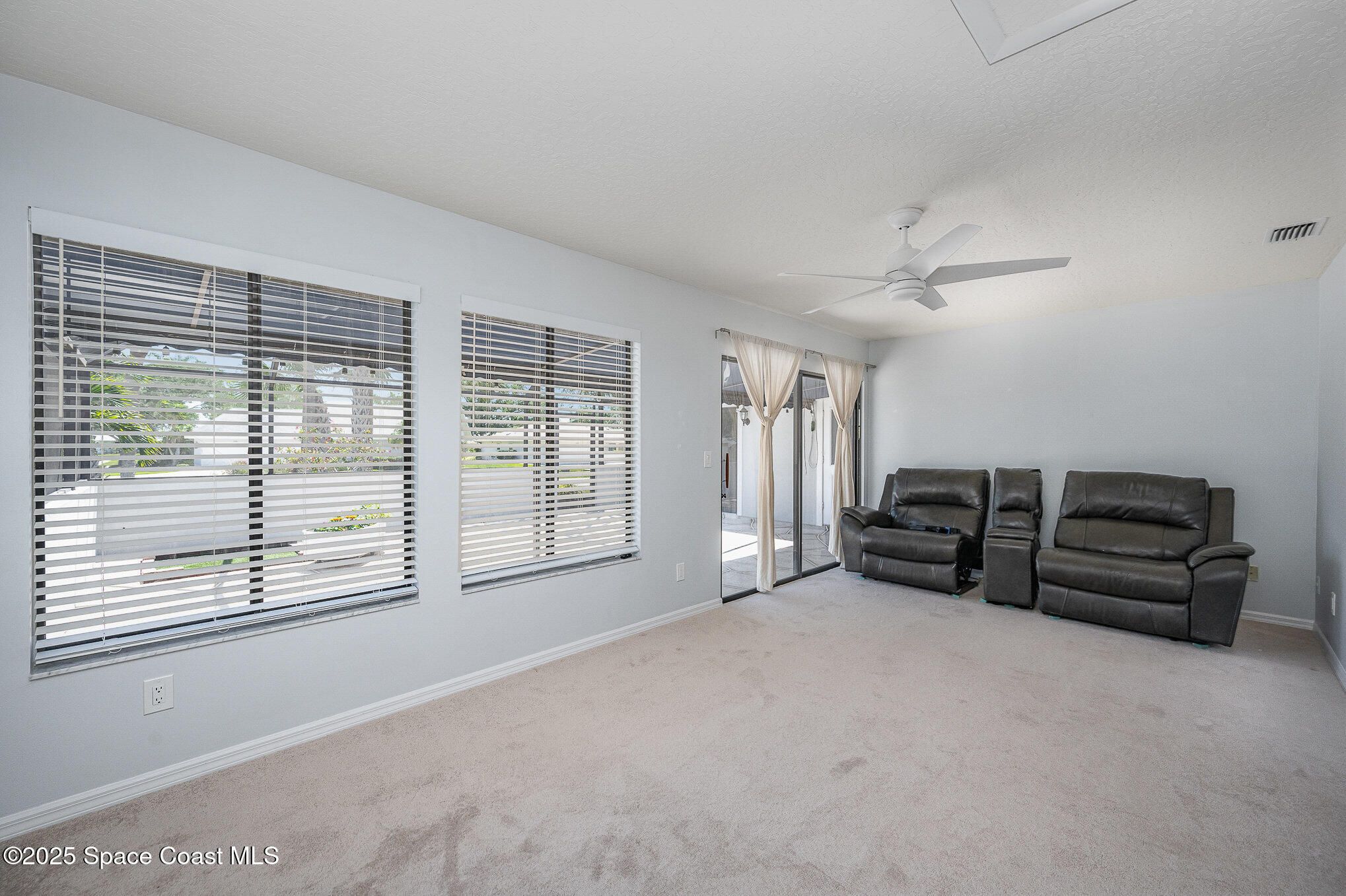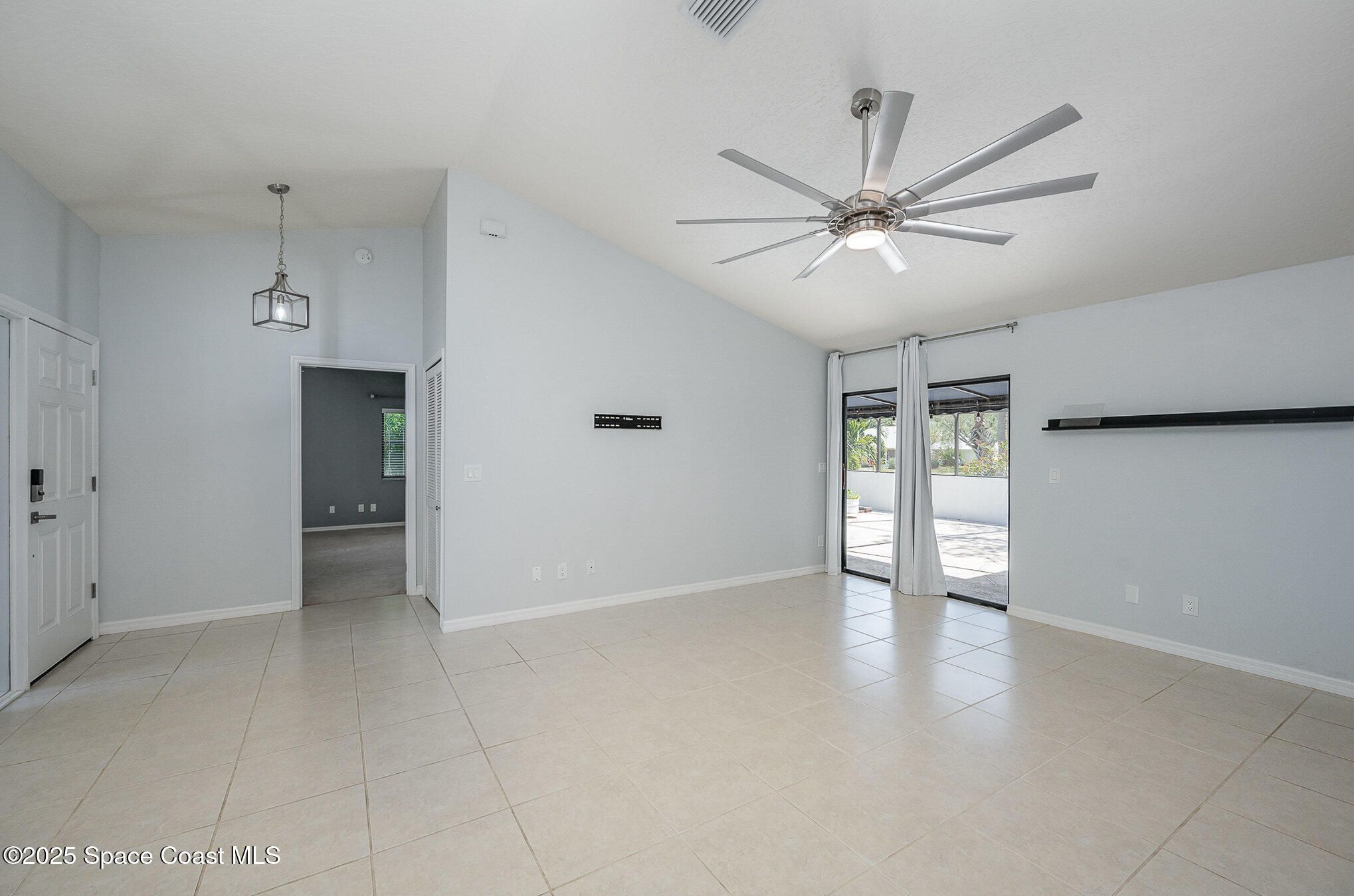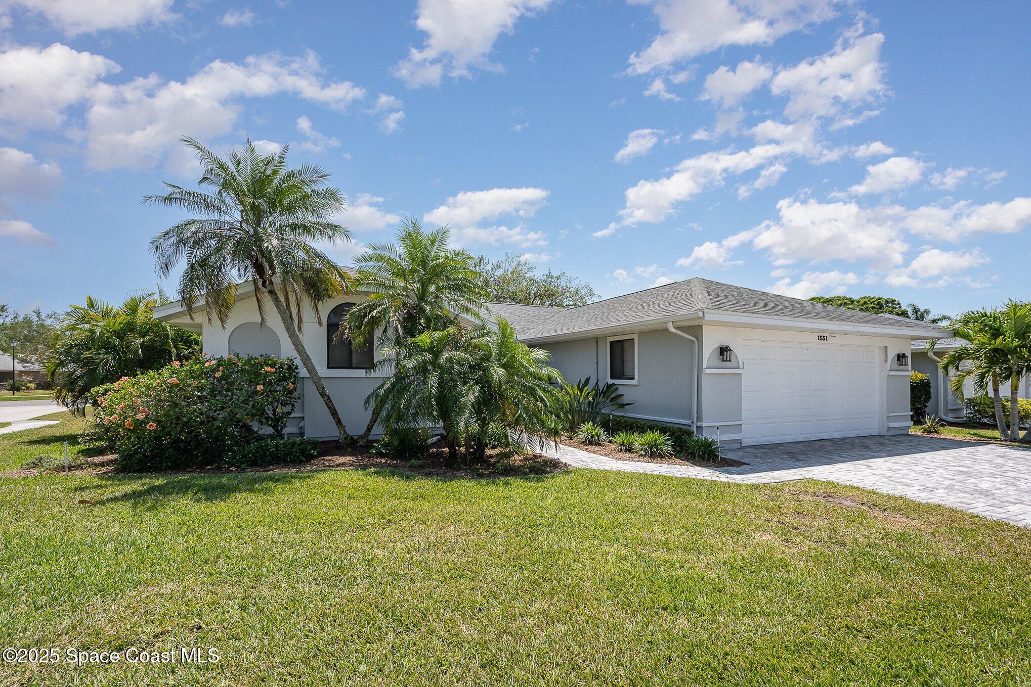 Gorgeous paver driveway and lush landscaping greet you as you arrive at this lovely, expanded Madison Model, located in a resort-style country club community, offering top-notch amenities for an exceptional Florida lifestyle. Vaulted ceilings, bright open floor plan, indoor laundry, updated bathrooms, modern fans and light fixtures, make this home move-in ready. Bonus room attached to the large owner's suite makes an ideal, private office or a place to relax, curl up, read a book, or enjoy your favorite hobby. There are sliding glass doors that lead to the lanai from the bonus room and living room. Guest bathroom also has access to the spacious screened lanai. Home includes an open air atrium, great for combining open space, natural light & the potential for a unique & inviting garden, or space for relaxation, and enjoying your morning coffee. Home to over 600 Military Veterans, Indian River Colony Club is a Private 55+ Country Club community with an extensive maintenance program for each home. It includes an18-hole golf course, fine dining restaurant with an executive chef & the 19th Hole restaurant and bar, fitness center, heated swimming pool, tennis courts, croquet, bocce ball, shuffleboard, and more. Pet-friendly, gated community with over 60 activities groups that have you feeling like you are on vacation.