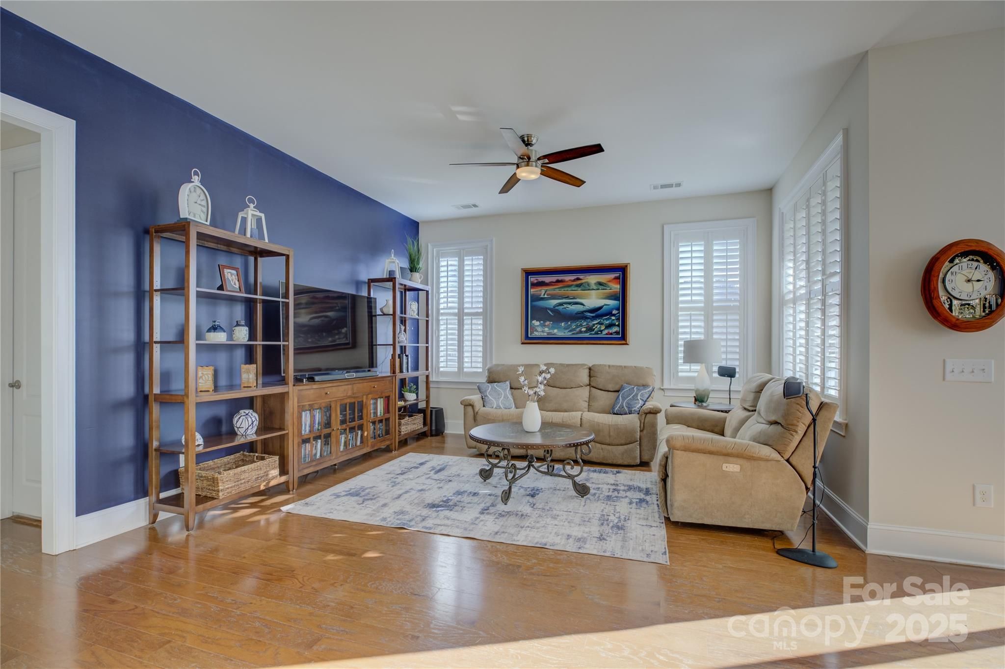 Welcome home, where elegant design meets resort-style living in the sought-after Regency at Palisades. This home has flexible living areas that can be easily customized to suit your lifestyle. Plantation shutters and wainscoting are just a couple of the architectural details this home offers, while gleaming hardwoods flow throughout the open floor plan. The gourmet kitchen impresses with a gas range, granite countertops, pendant lighting, and an oversized island featuring a single-bay stainless sink and dishwasher—ideal for effortless entertaining. The tranquil primary suite features a tray ceiling and a spa-inspired bath with an oversized glass-enclosed tiled shower, a built-in bench, and a dual vanity with rich espresso cabinetry. Two additional bedrooms provide comfortable guest or hobby space, and a covered back porch extends your living outdoors. Residents enjoy the exclusive amenities of Regency at Palisades, including a clubhouse, indoor and outdoor pools, fitness center, tennis and pickleball courts, walking trails, and a vibrant social calendar. HOA includes lawn maintenance and irrigation from the community well.