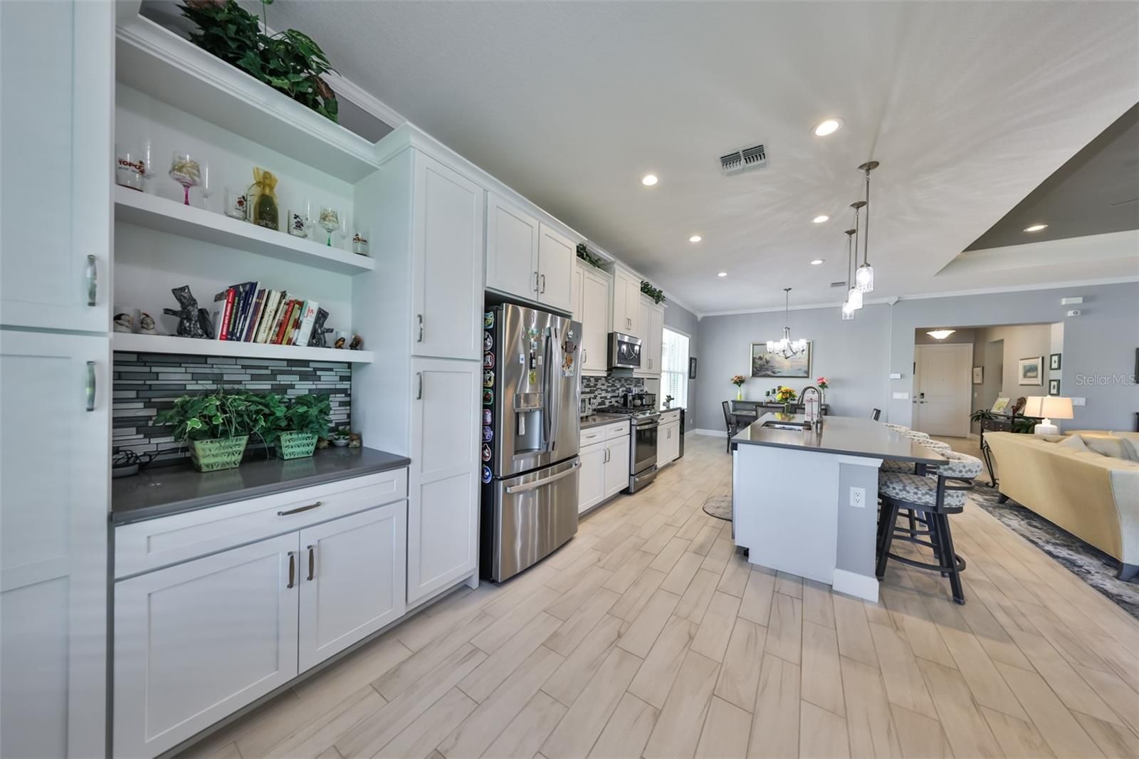 - Ceiling Fan(s), Crown Molding, Eat-in Kitchen, Kitchen/Family Room Combo, Open Floorplan, Solid Surface Counters, Split Bedrooms, Vaulted Ceiling(s), Walk-In Closet(s)