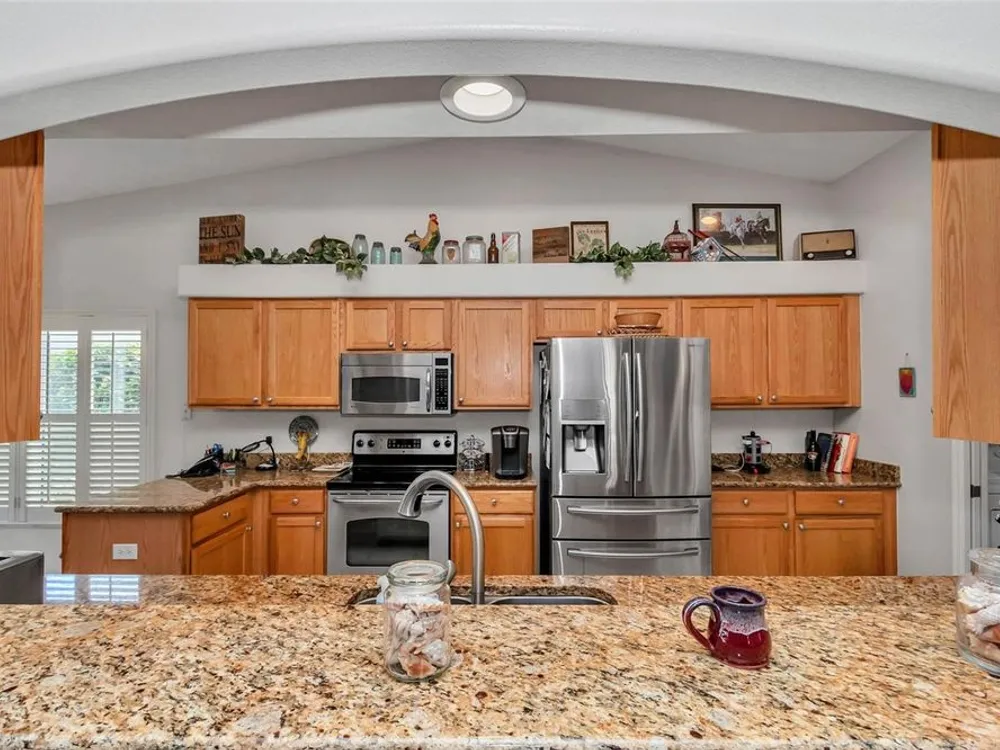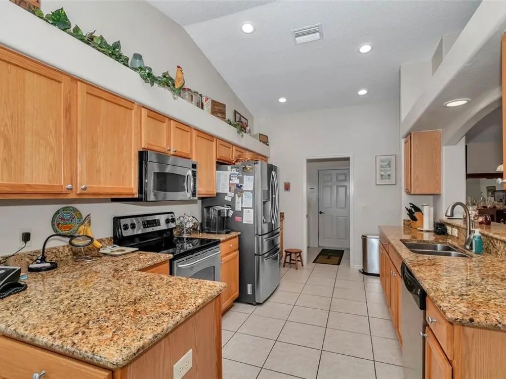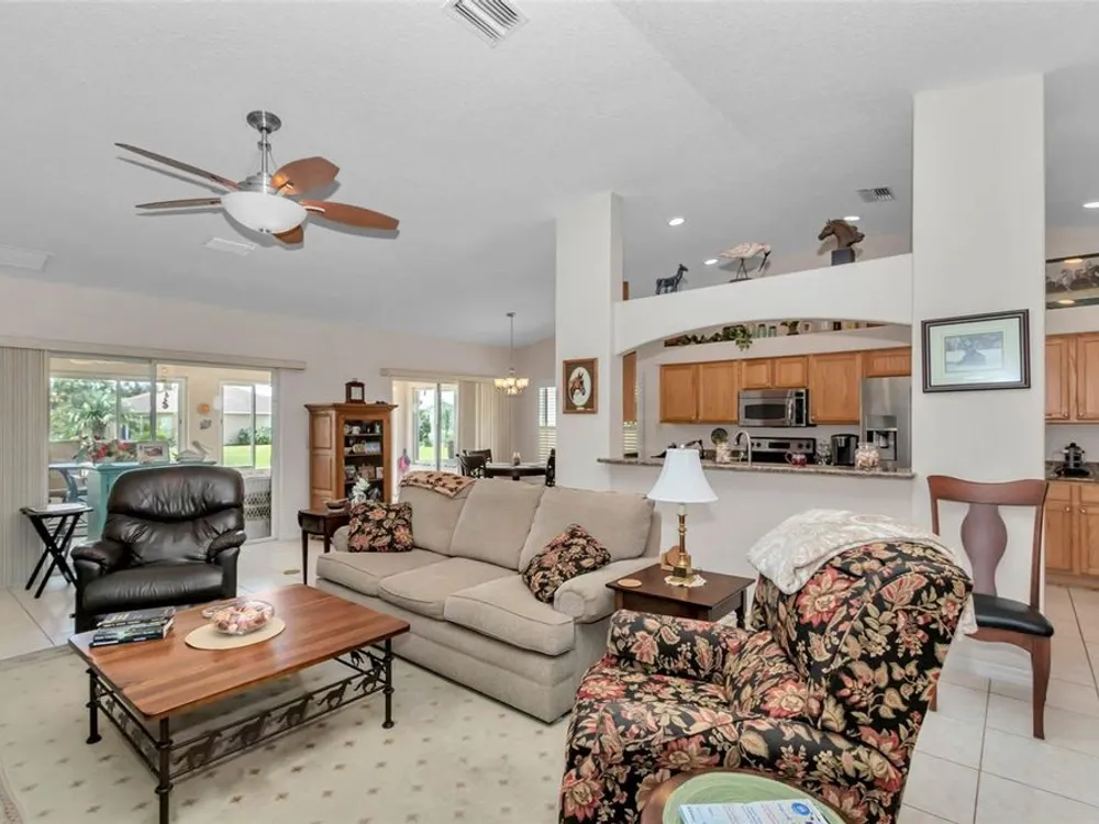 Nestled in the vibrant 55+ community of SummerGlen, this stunning Tarpon II model blends modern elegance with the comfort of a forever home. The spacious kitchen, a chef’s delight, boasts sleek granite countertops, convenient cabinet pullouts, and high-end stainless steel appliances. Plantation shutters grace every window, adding a touch of sophistication and privacy throughout the home. The thoughtfully designed guest wing can be entirely closed off, offering complete privacy for visitors or family. Step outside to a large enclosed lanai that opens to a beautifully crafted paver patio, where you can unwind while savoring breathtaking views of the adjacent golf course. With a roof replaced in 2023, this home offers peace of mind for years to come. The SummerGlen community elevates your lifestyle with resort-style amenities, including a large walk-in pool paired with an expansive hot tub, a fully equipped gym, and an 18-hole golf course. Enjoy friendly competition on the bocce ball, pickleball, horseshoe, or shuffleboard courts, or nurture your green thumb in the community garden. RV parking and a softball field add to the endless recreational opportunities. Embrace the SummerGlen lifestyle in this meticulously maintained home—schedule a tour today to see it for yourself!