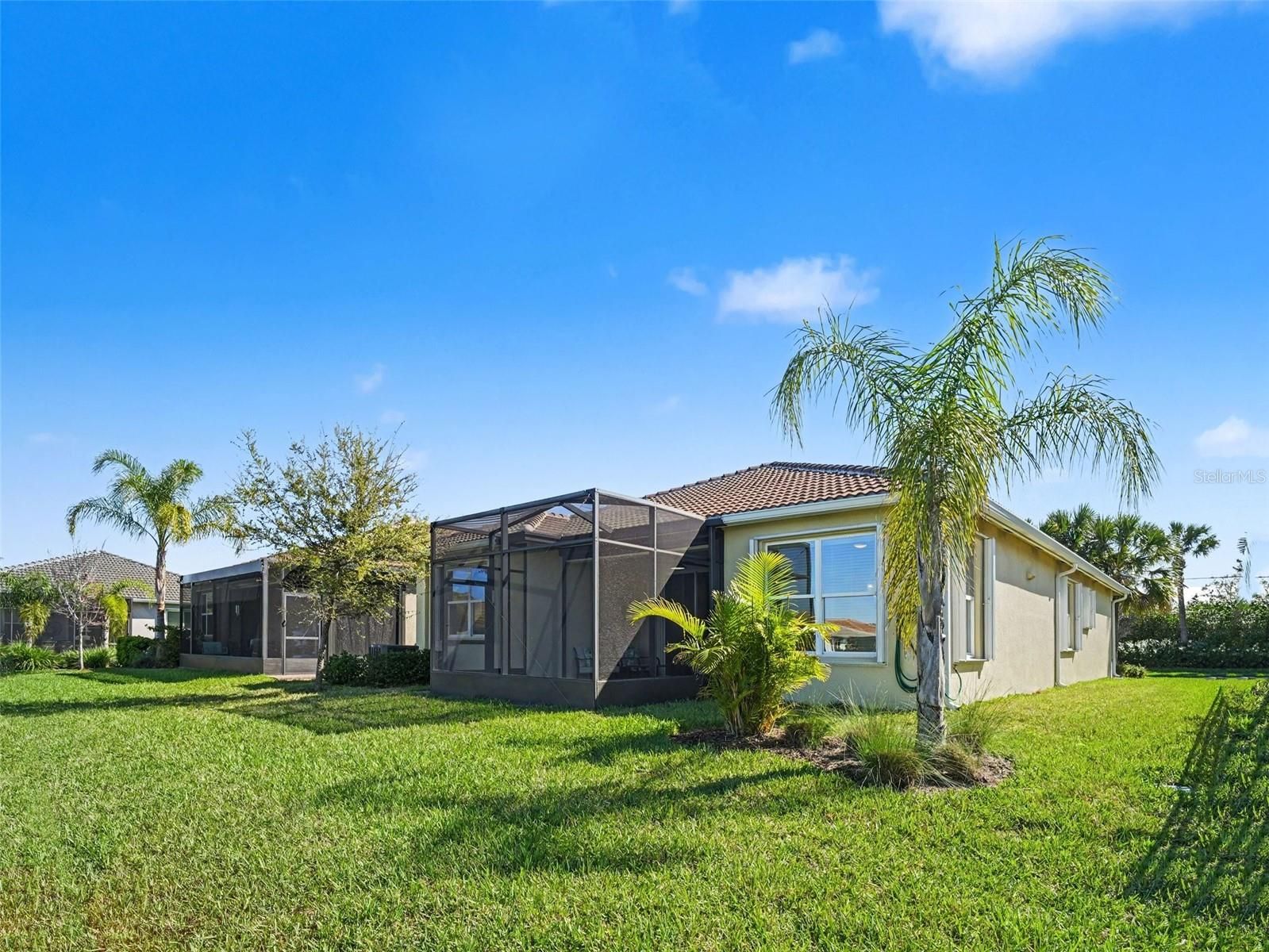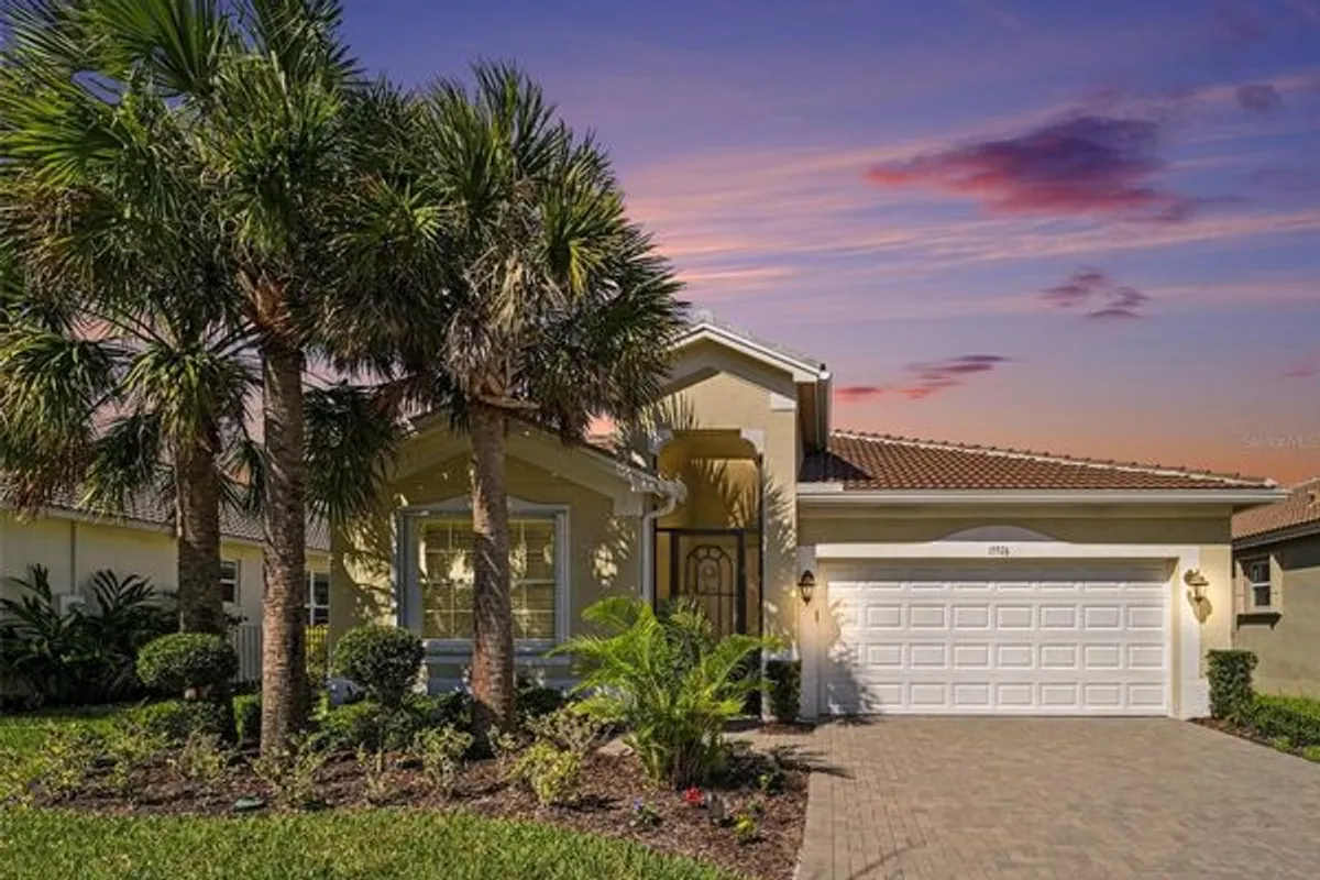 From the moment you step inside, you’re greeted by soaring ceilings, elegant crown molding, and a seamless open-concept floor plan designed for both entertaining and everyday living. Tile flooring flows effortlessly throughout the home, complemented by a warm beige palette, crisp white cabinetry, and modern finishes that create a timeless, sophisticated feel. The gourmet kitchen is a true showstopper, featuring quartz countertops, upgraded cabinetry, a spacious center island, stainless steel appliances, and a gas stove with exterior venting. Thoughtful details like under and above cabinet lighting elevate the space, while sliding glass doors lead directly to the extended screened lanai—complete with an electric hurricane/sun screen—blending indoor and outdoor living effortlessly. Retreat to the private owner’s suite, where a tray ceiling, dual closets with custom California Closet systems, and a spa-inspired bath create a serene escape. Every bedroom is thoughtfully designed with both comfort and organization in mind. This home is loaded with premium upgrades, including hurricane impact windows, permanent accordion shutters, a tankless water heater, whole-home water softener, reverse osmosis system, and a 50A EV charger in the extended epoxy-finished two-car garage. Even the laundry room has been elevated with cabinetry, premium appliances, and a utility sink. Every detail has been carefully curated—this home is truly move-in ready perfection. Located in the highly sought-after 55+ community of Valencia Del Sol, residents enjoy a resort-style lifestyle with world-class amenities, including a grand clubhouse, fitness center, resort and lap pools, pickleball and tennis courts, an upscale bistro, and a vibrant social calendar designed for active living. Perfectly positioned near shopping, dining, medical facilities, major highways, and just a short drive to Tampa, Sarasota, St. Petersburg, and the Gulf’s award-winning beaches, this home offers both convenience and luxury.