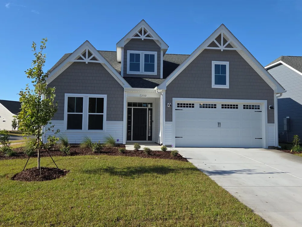 Upon entering from a large covered front porch, discover a foyer leading to a spacious drop zone area. Two bedrooms with large closets and a full bath are located on the left with an open dining area just ahead. A large island in the kitchen offers additional seating and a surplus of counter space for large dinner parties or cooking large meals. Enjoy smaller meals with an extended breakfast area looking out onto the beautiful view of the back yard. From the great room, breeze through sliding glass doors onto a large covered porch. This homes master suite offers an enormous walk-in closet accompanied by a beautiful master bath with a tile shower. Make this Boardwalk floor plan your "home" today!